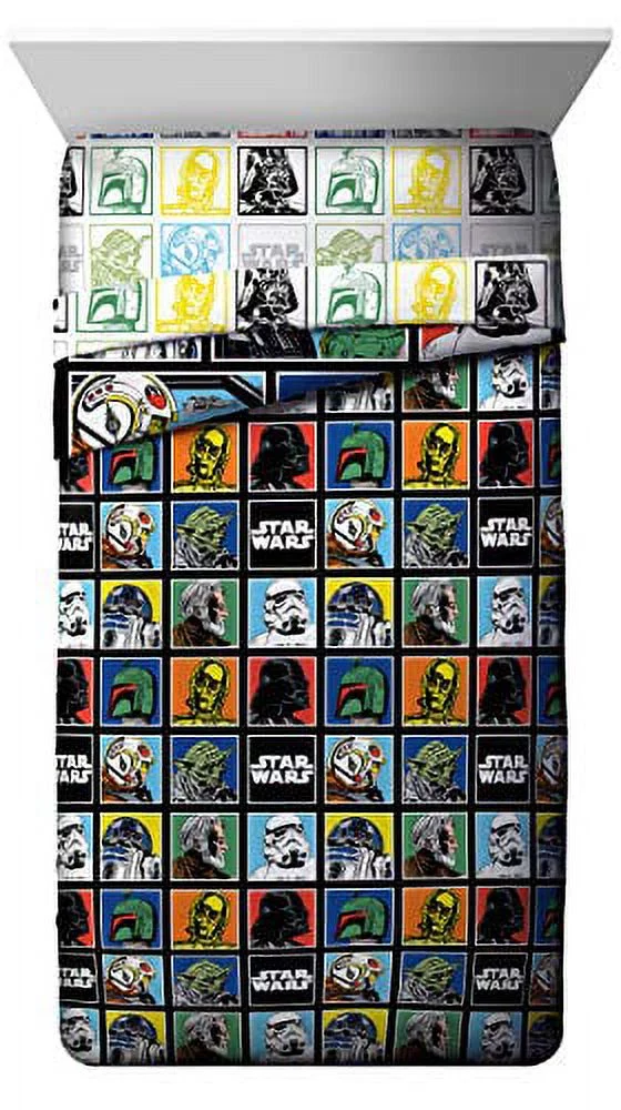 Star Wars Classic Grid 4 Piece Multi-Color Twin Bed Set-Features Luke Skywalker