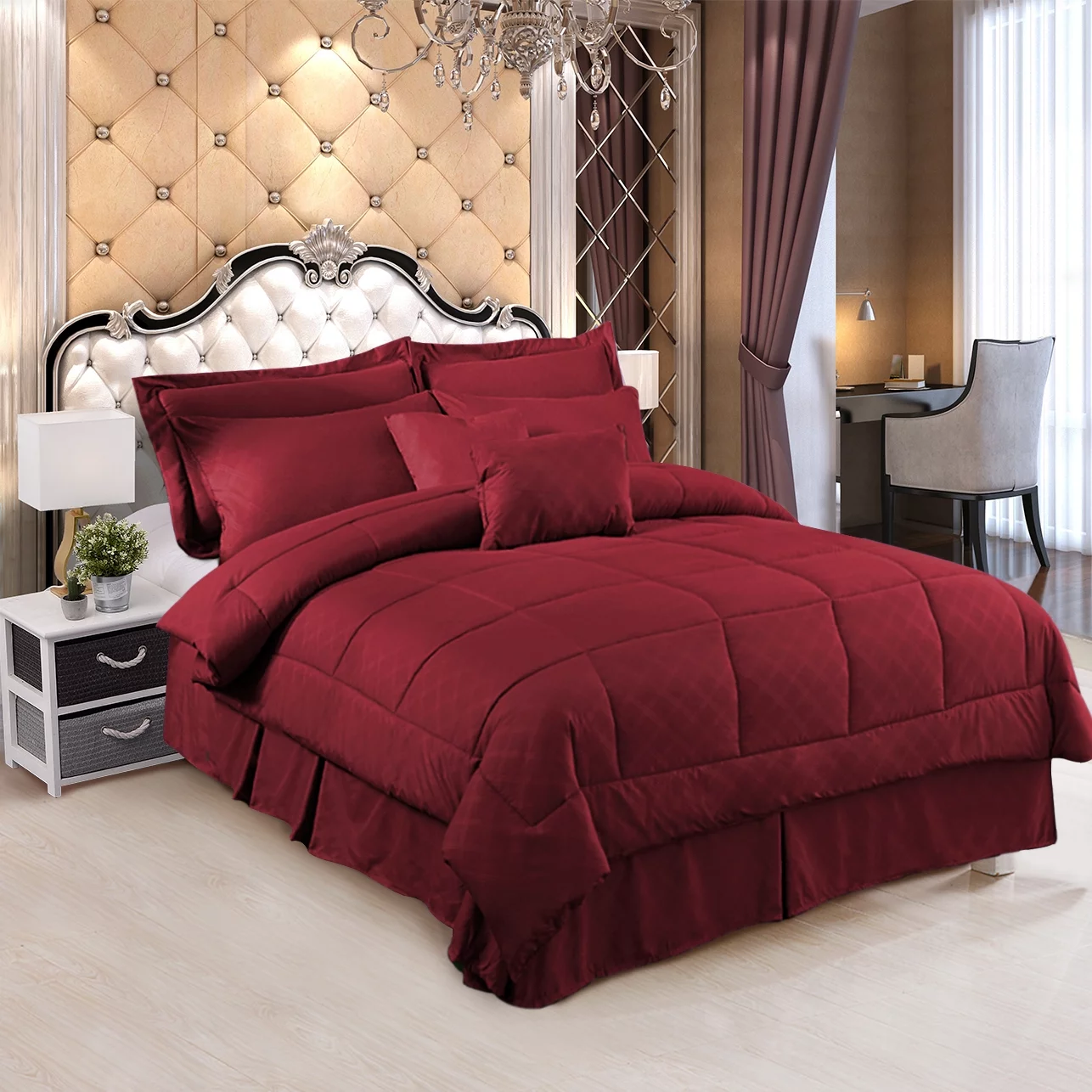8 Pieces Bed in a Bag Bedding Comforter Set,Quilted Diamond Pattern, Twin,Burgundy