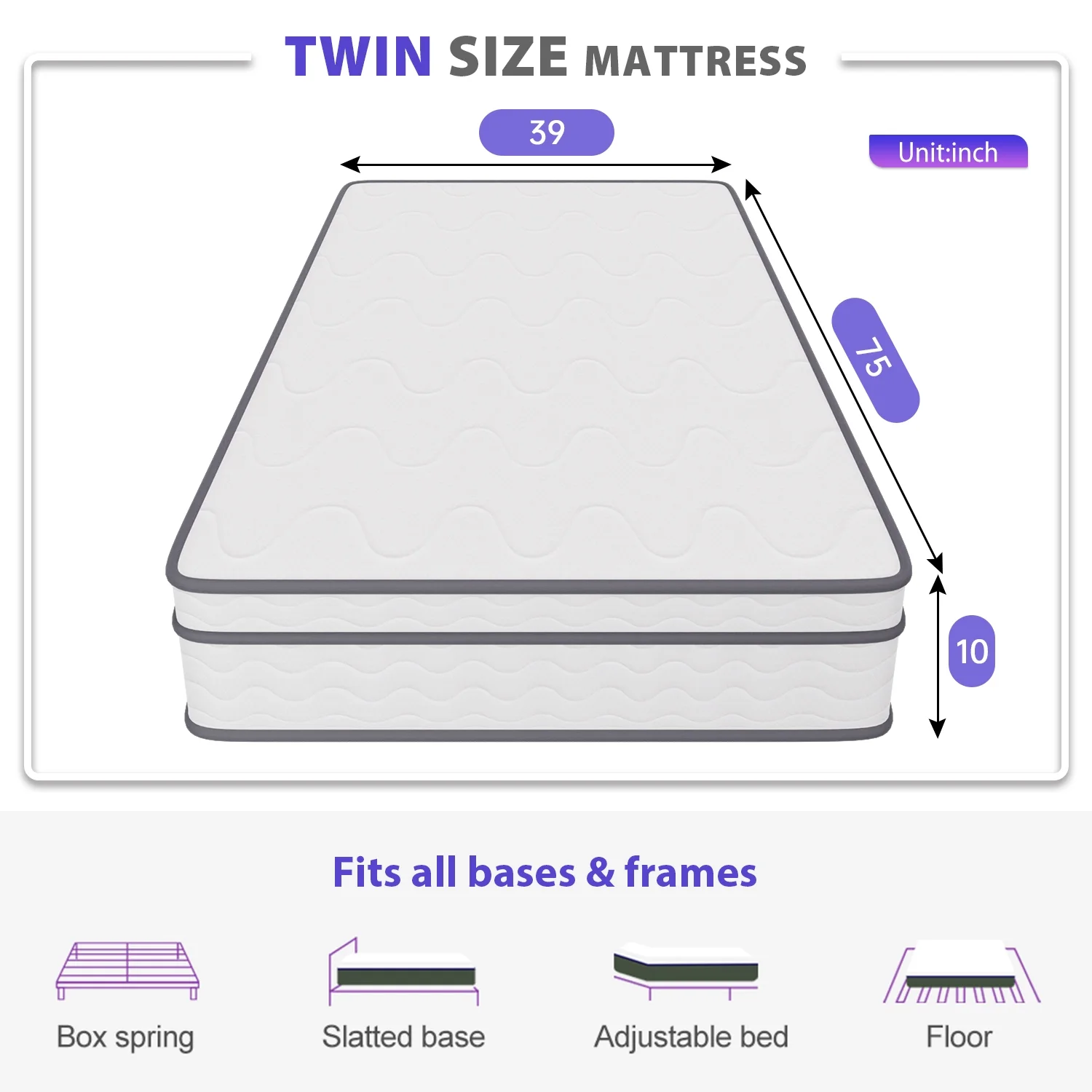 8 inches Twin Mattress, Memory Foam Mattress Bed in a Box with Lavender Infusion,Made in USA