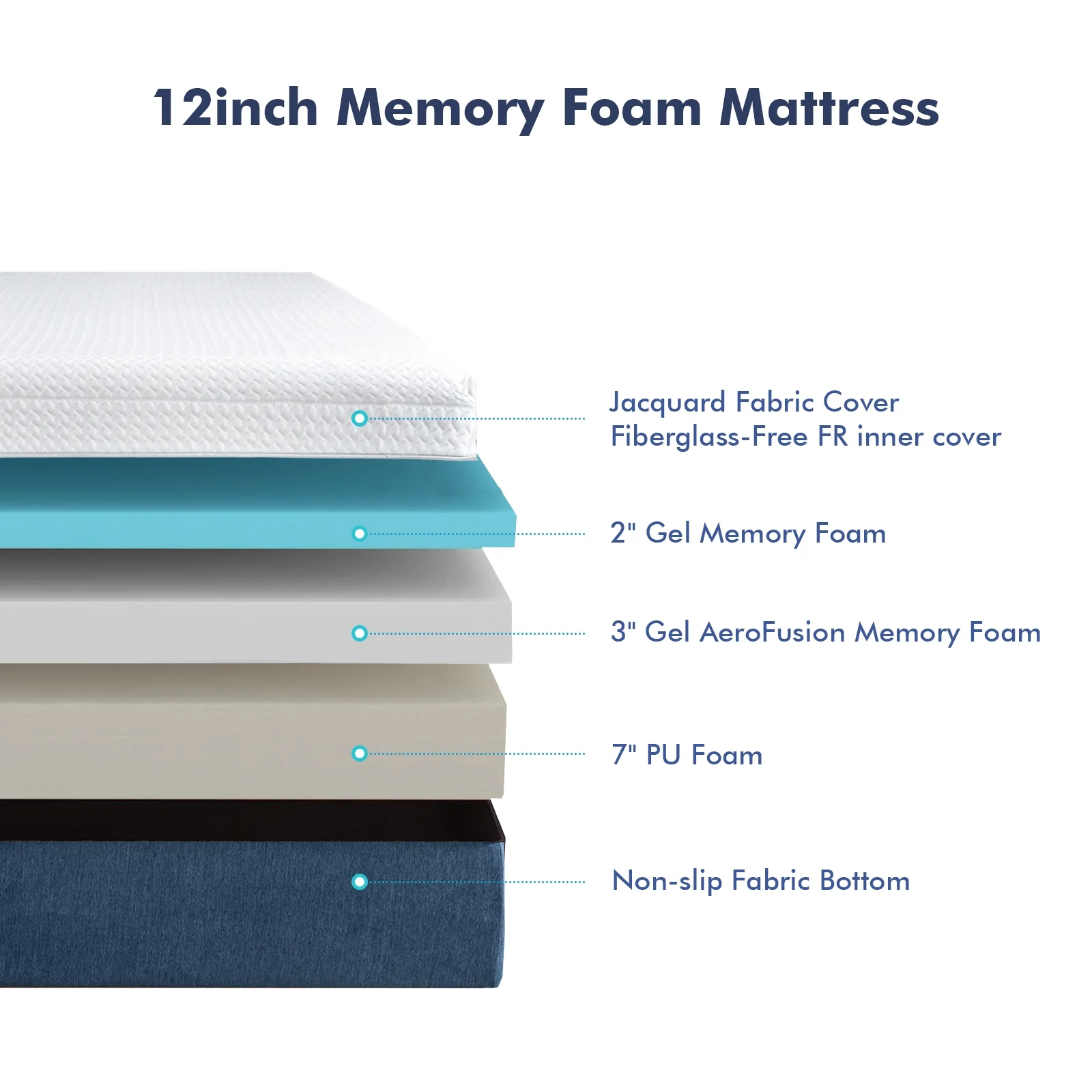 12 Inch Twin Memory Foam Mattress, Cool Gel Foam Mattress with Fabric Cover Made in USA Bed in A Box