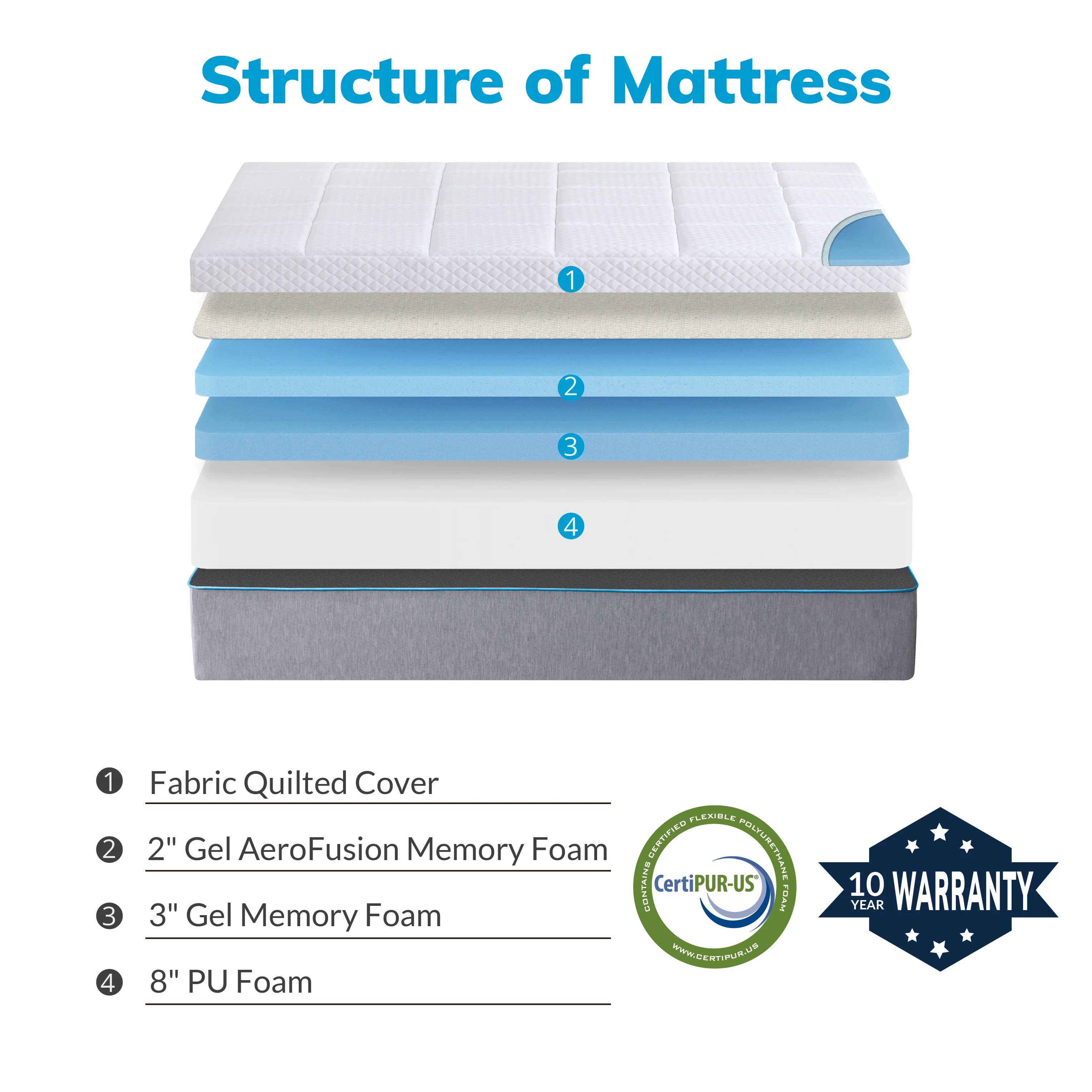 Crystli 10 Inch Gel-Infused Memory Foam Mattress Plush Pillow Top Twin Size Mattress in a Box,CertiPUR-US Certified