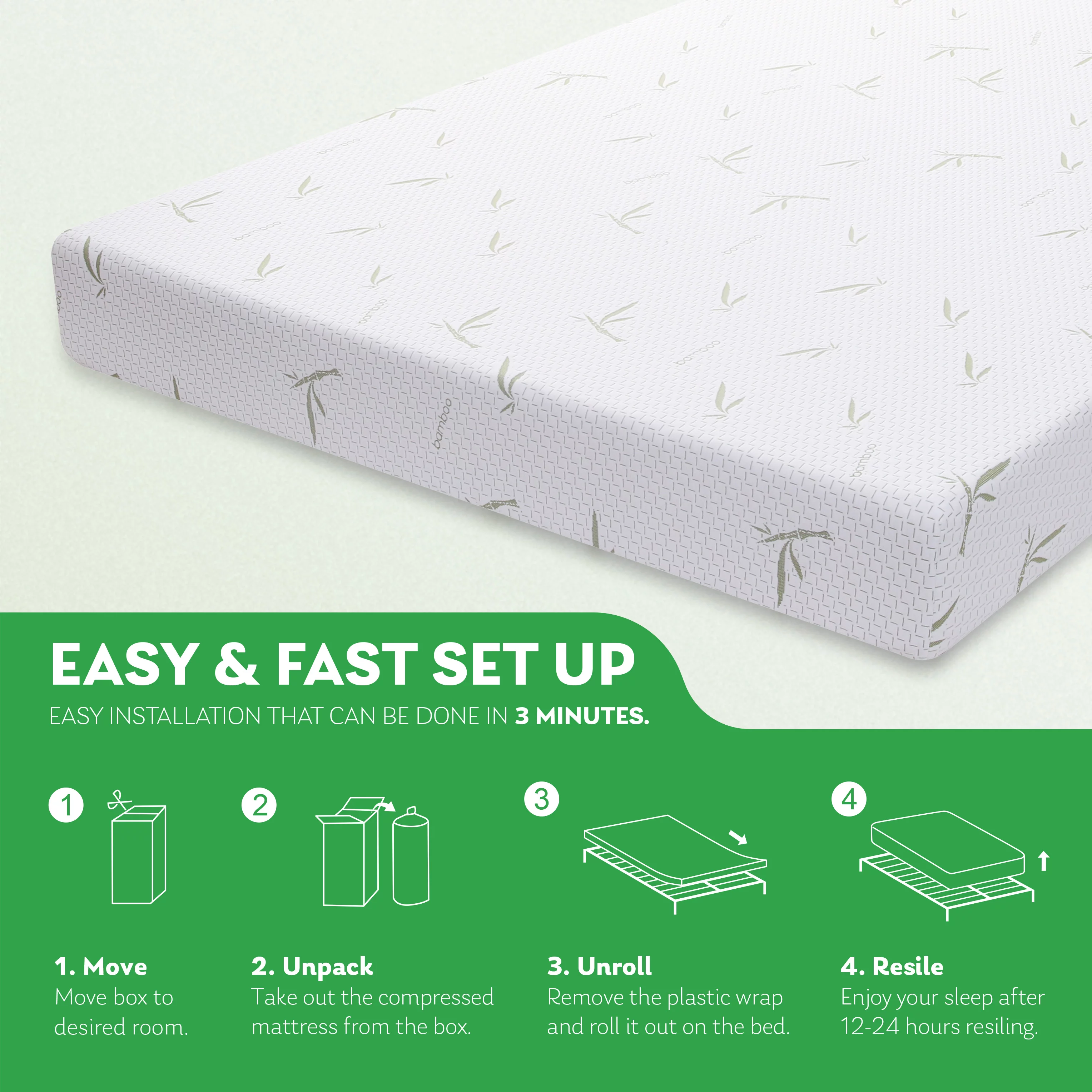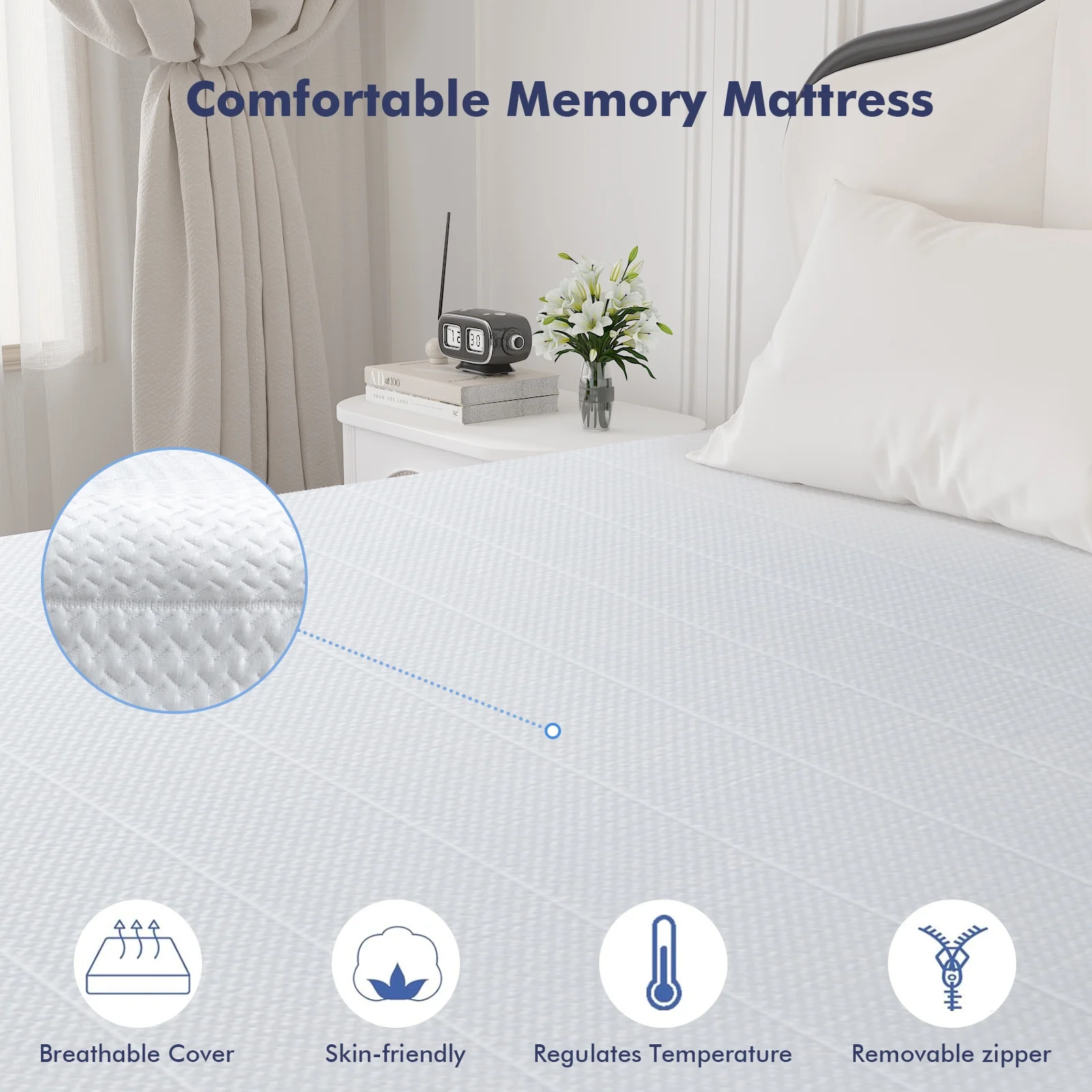 Twin Mattress Bed in a Box, 12" Memory Foam Mattress with Graphene Fabric Cover, Made in USA