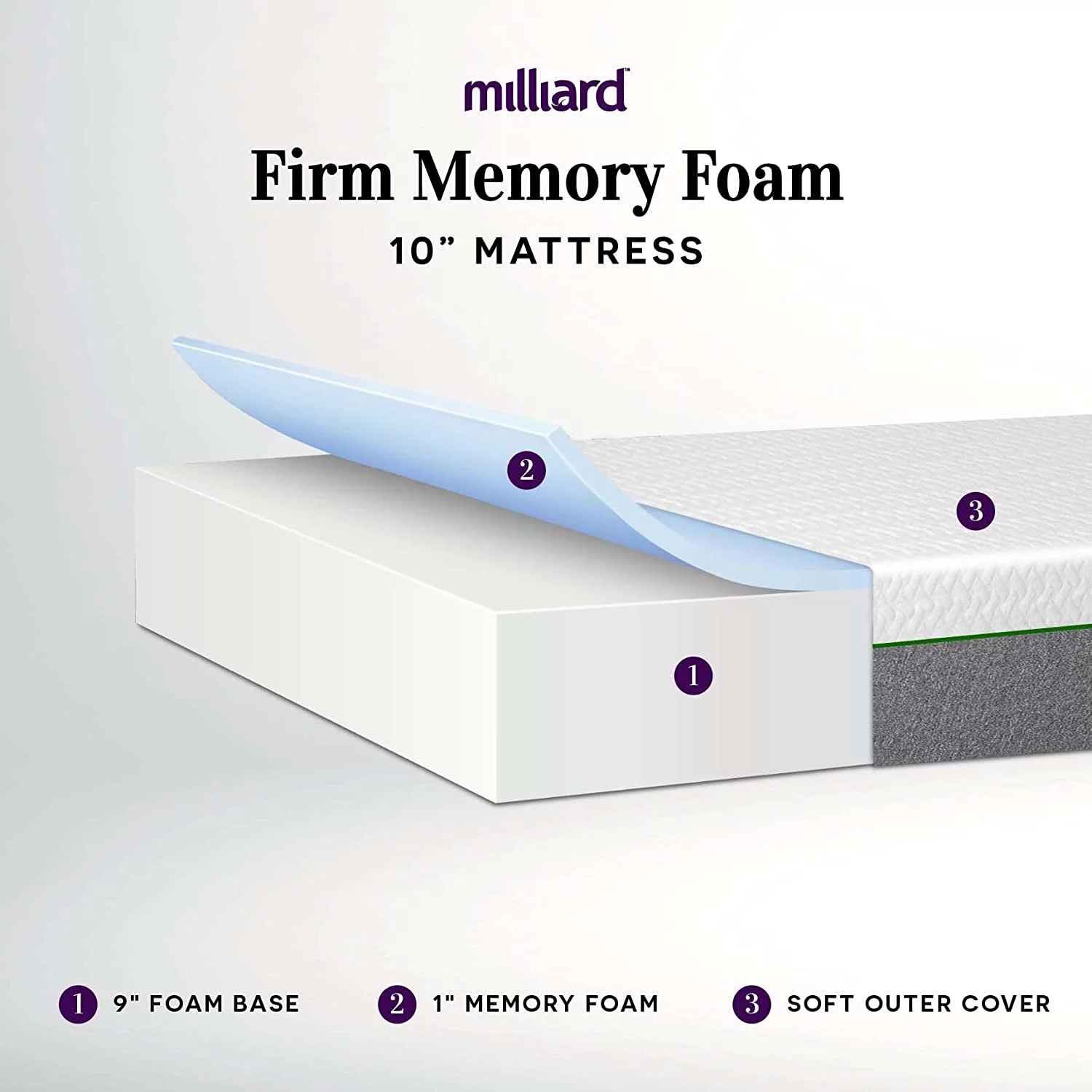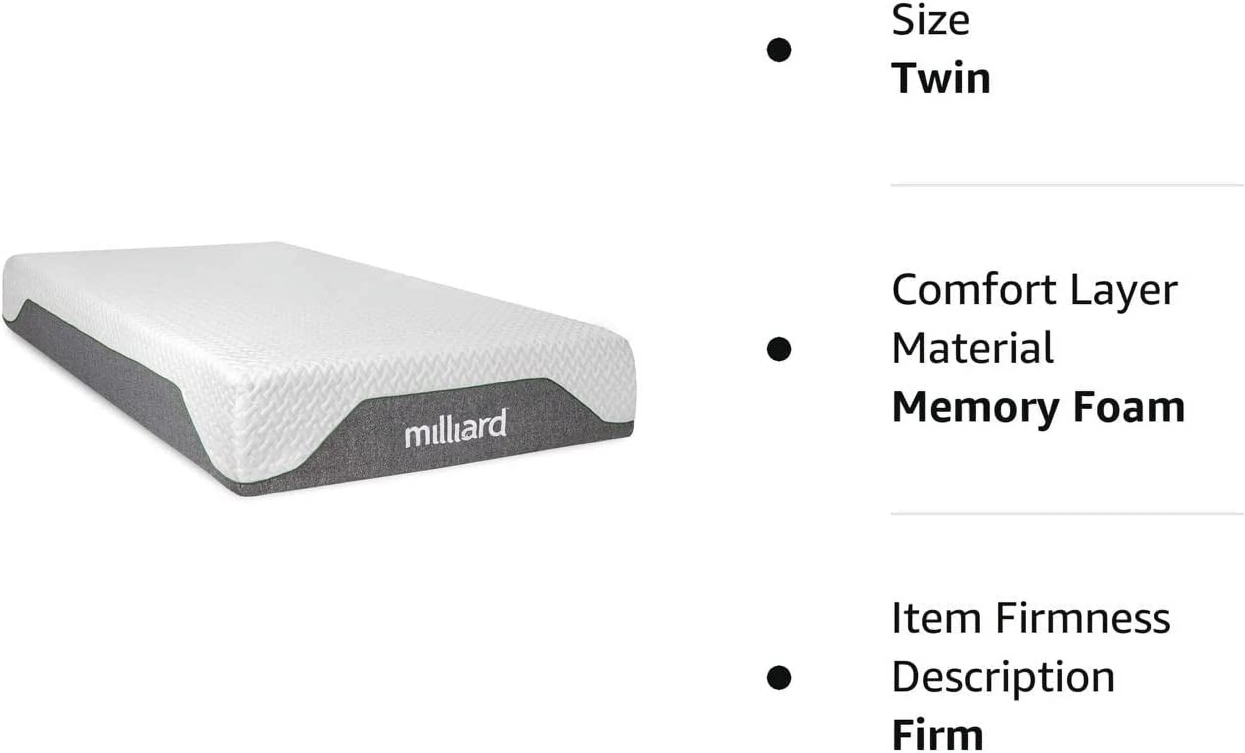 Milliard 10 inch Firm Memory Foam Mattress, Bed-in-a-Box/Pressure Relieving, Classic (Twin Size)