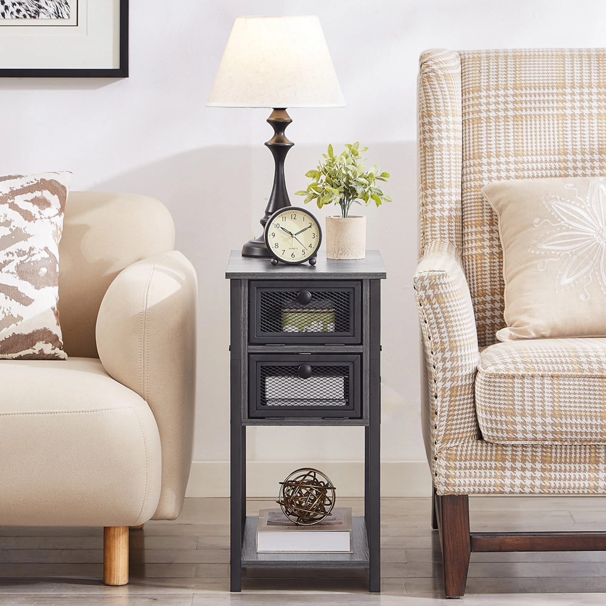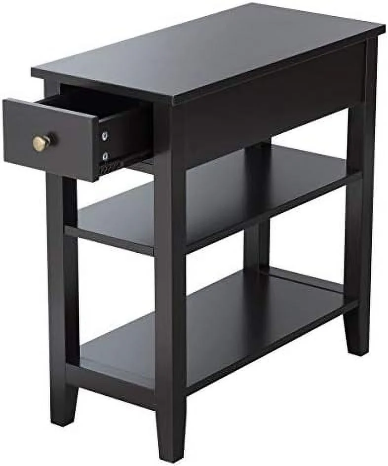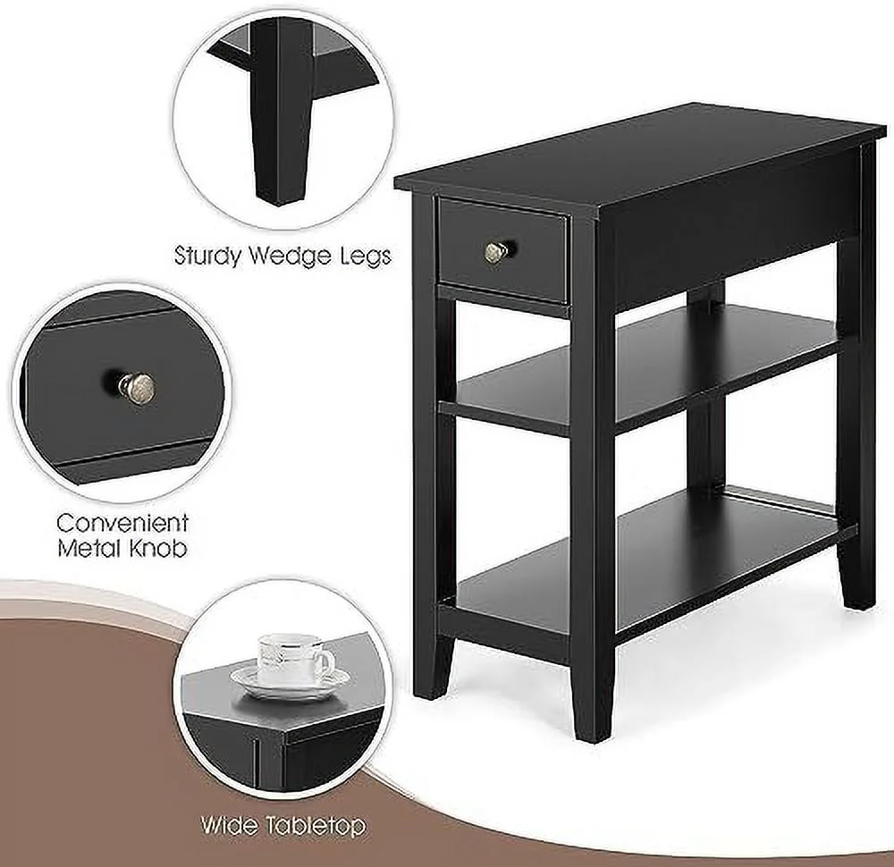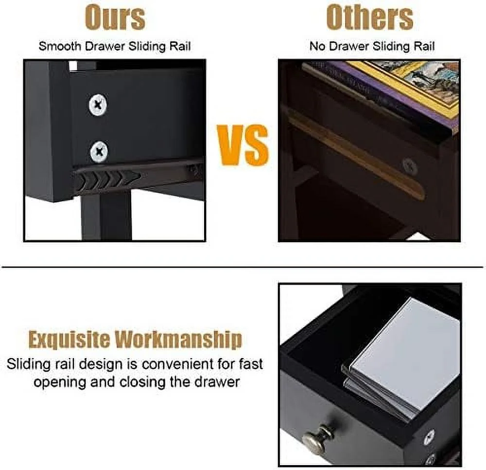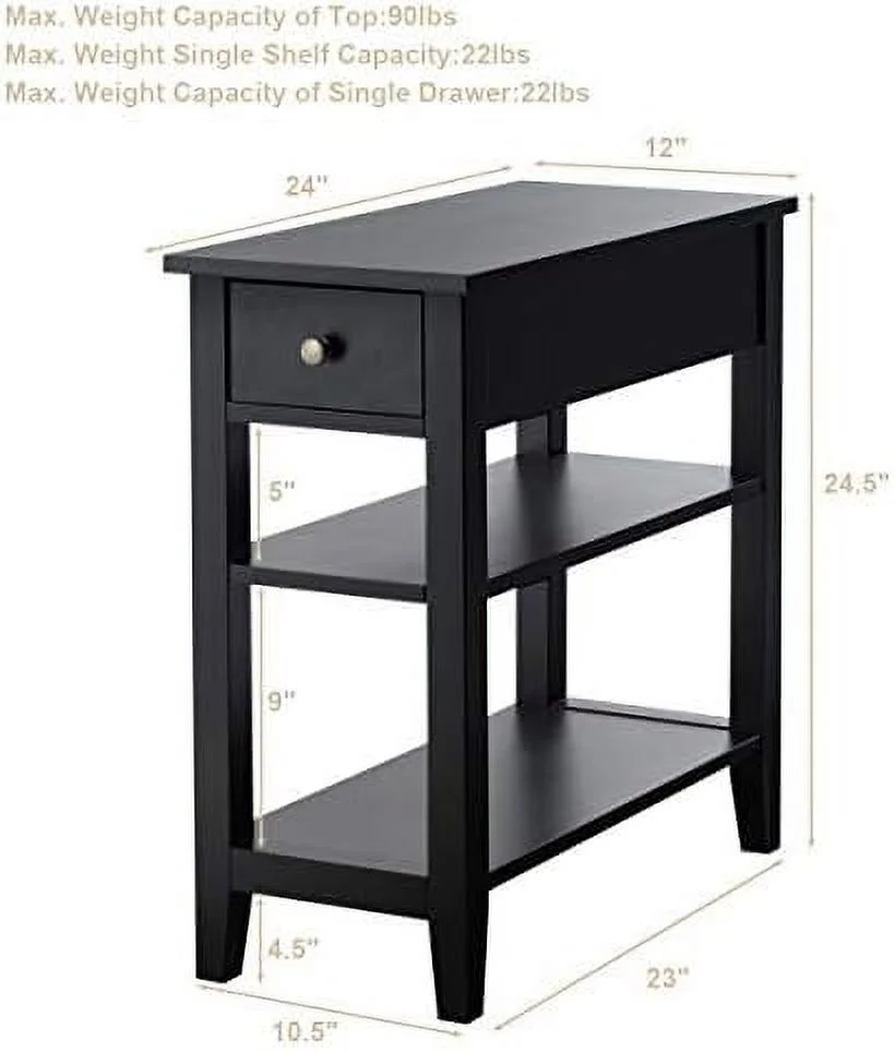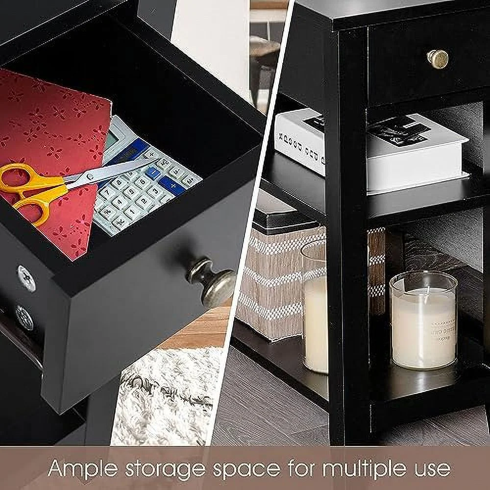 Ktaxon Set of 2 Chairside End Table, Chinese Narrow Nightstand with 2 Drawer and Shelf for Living Room Bedroom