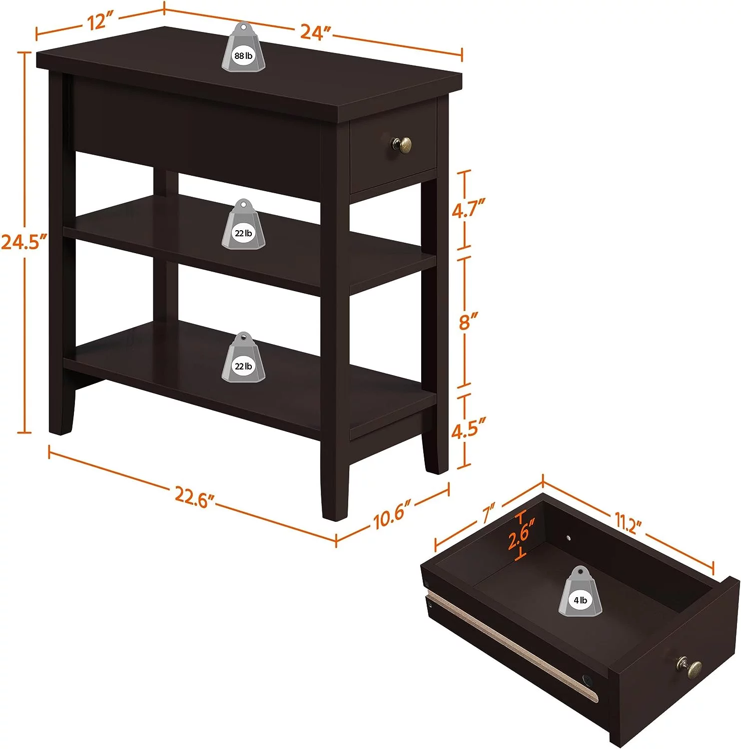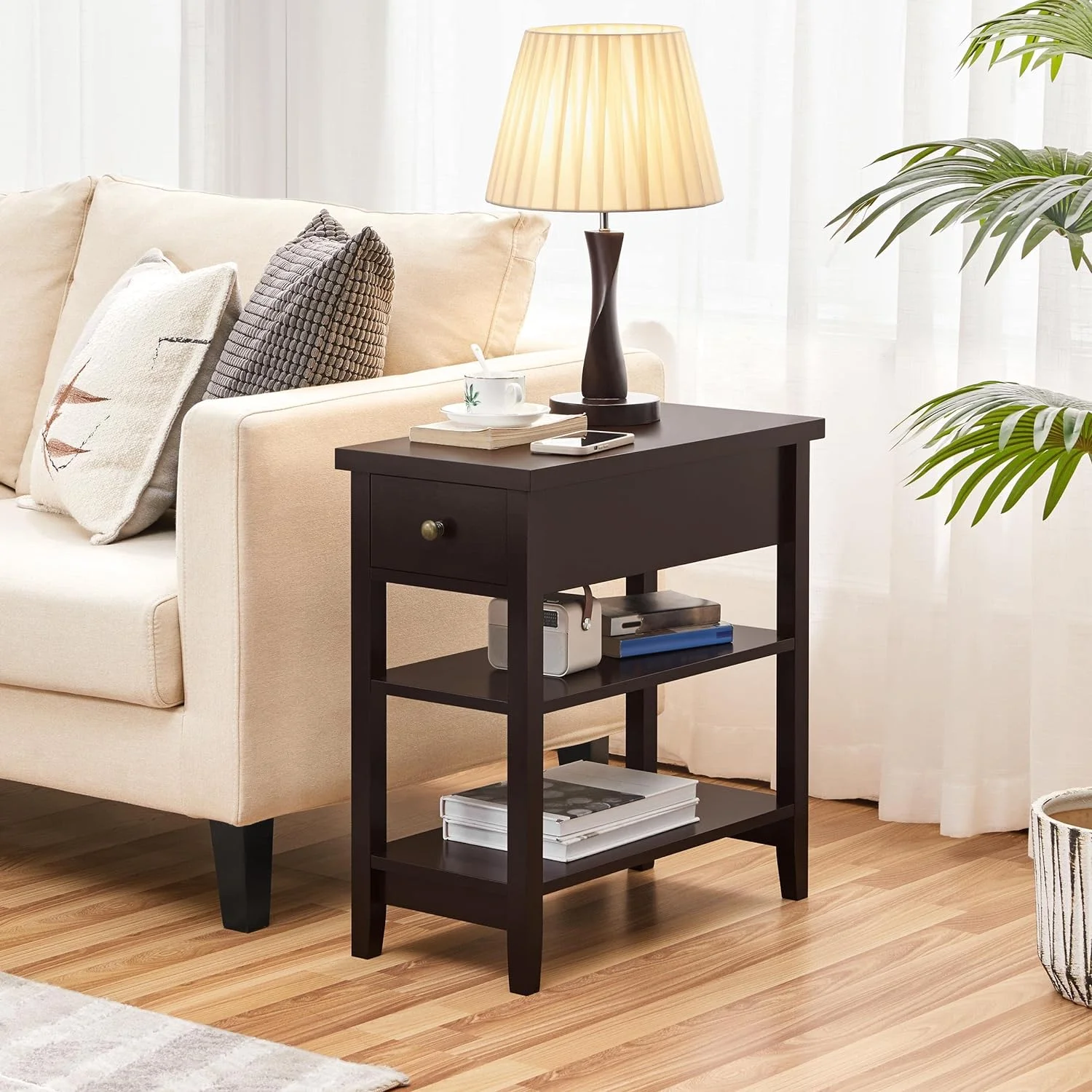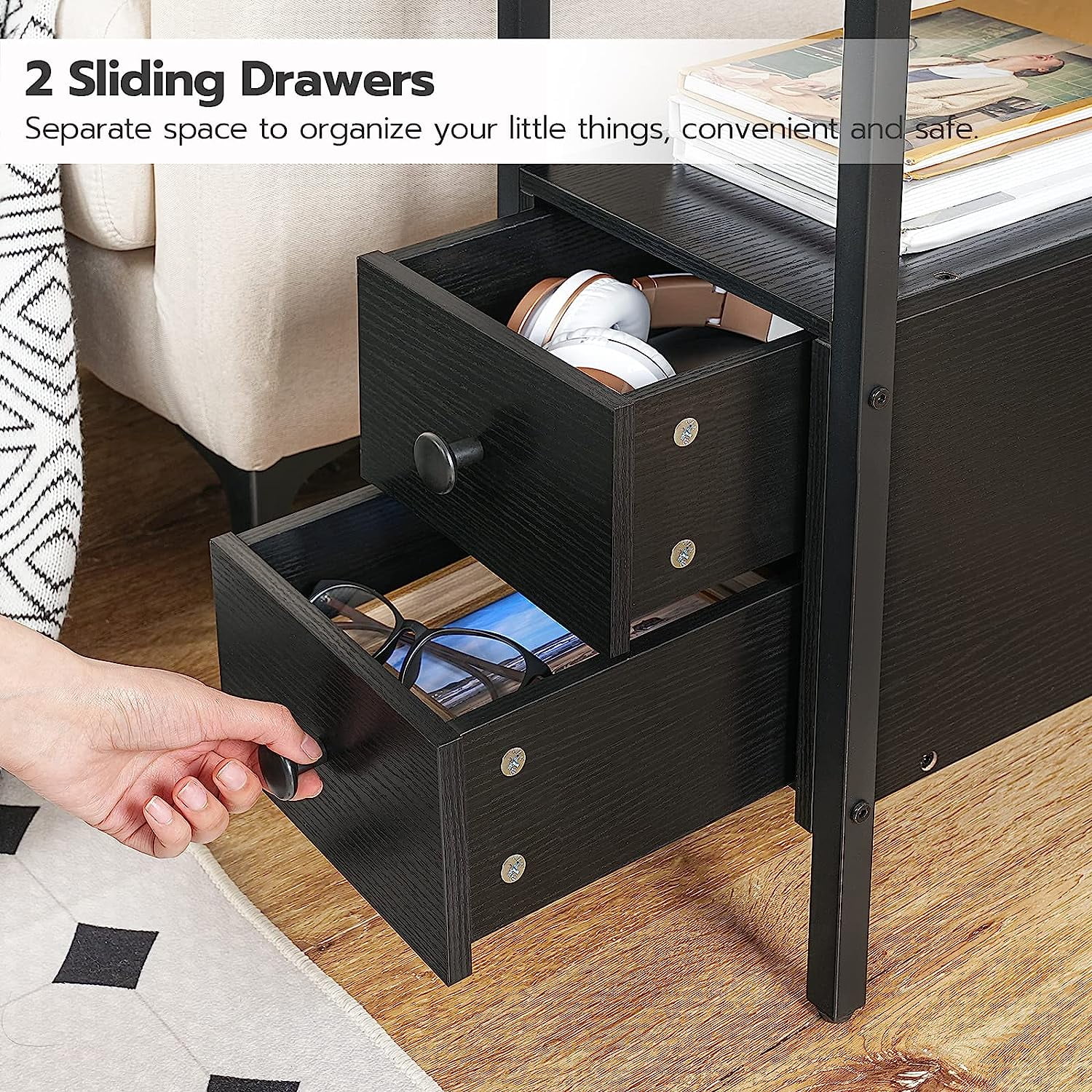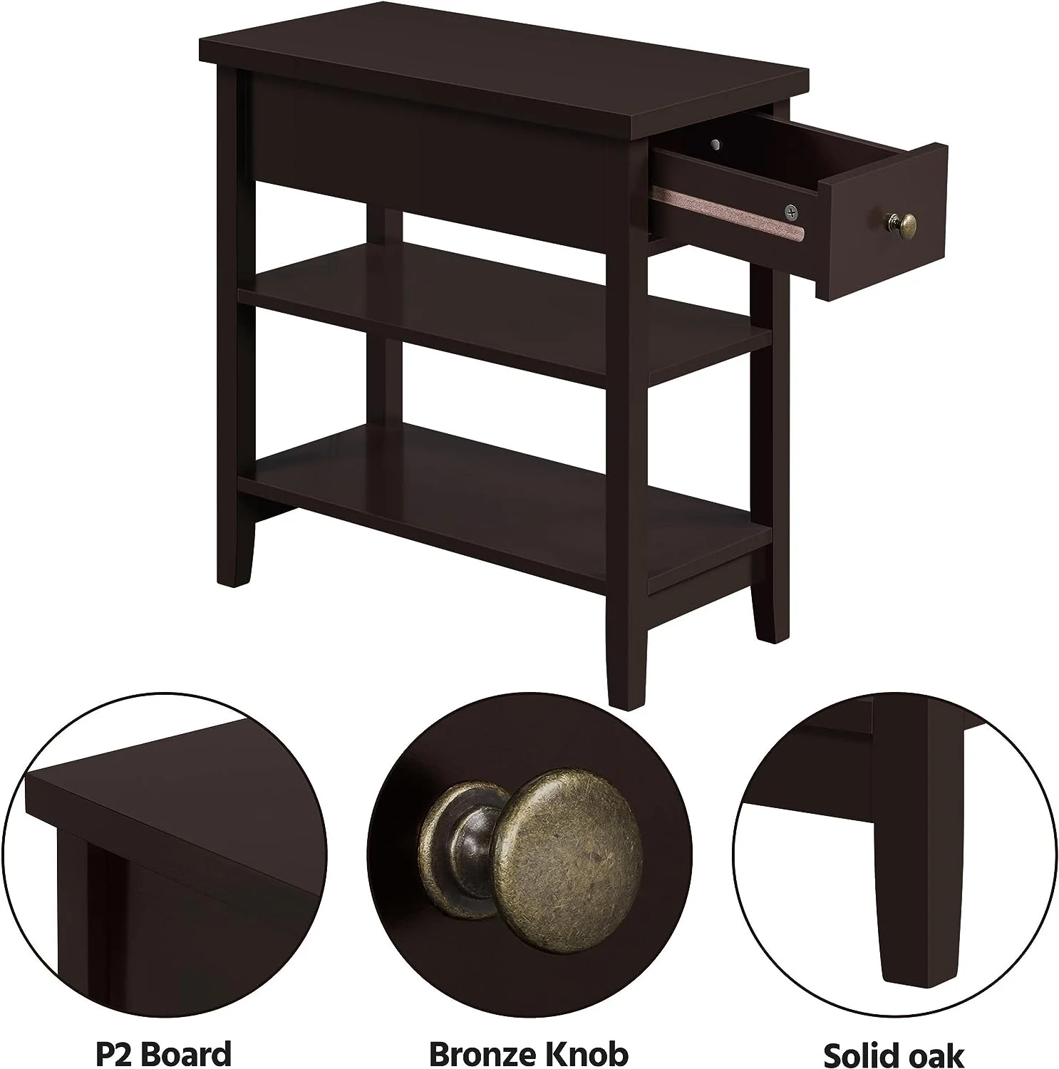 Ktaxon Set of 2 Chairside End Table, Chinese Narrow Nightstand with 2 Drawer and Shelf for Living Room Bedroom