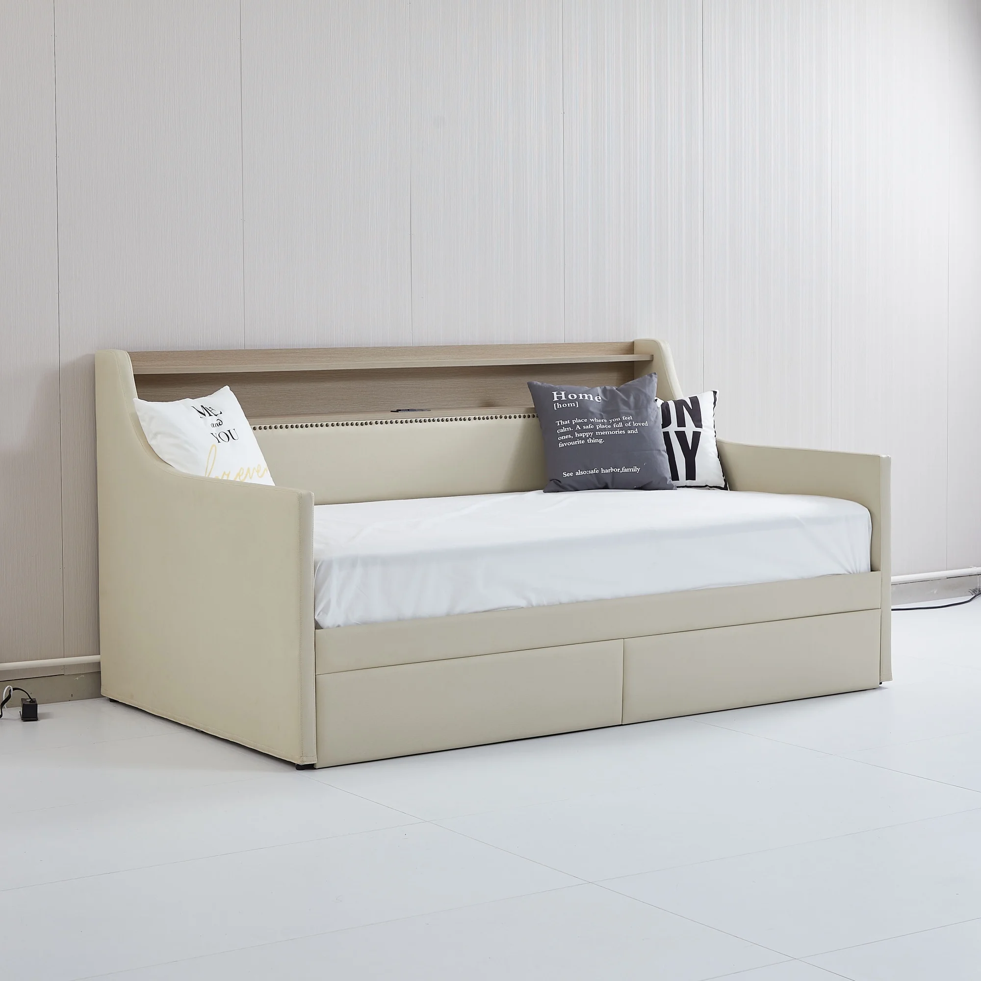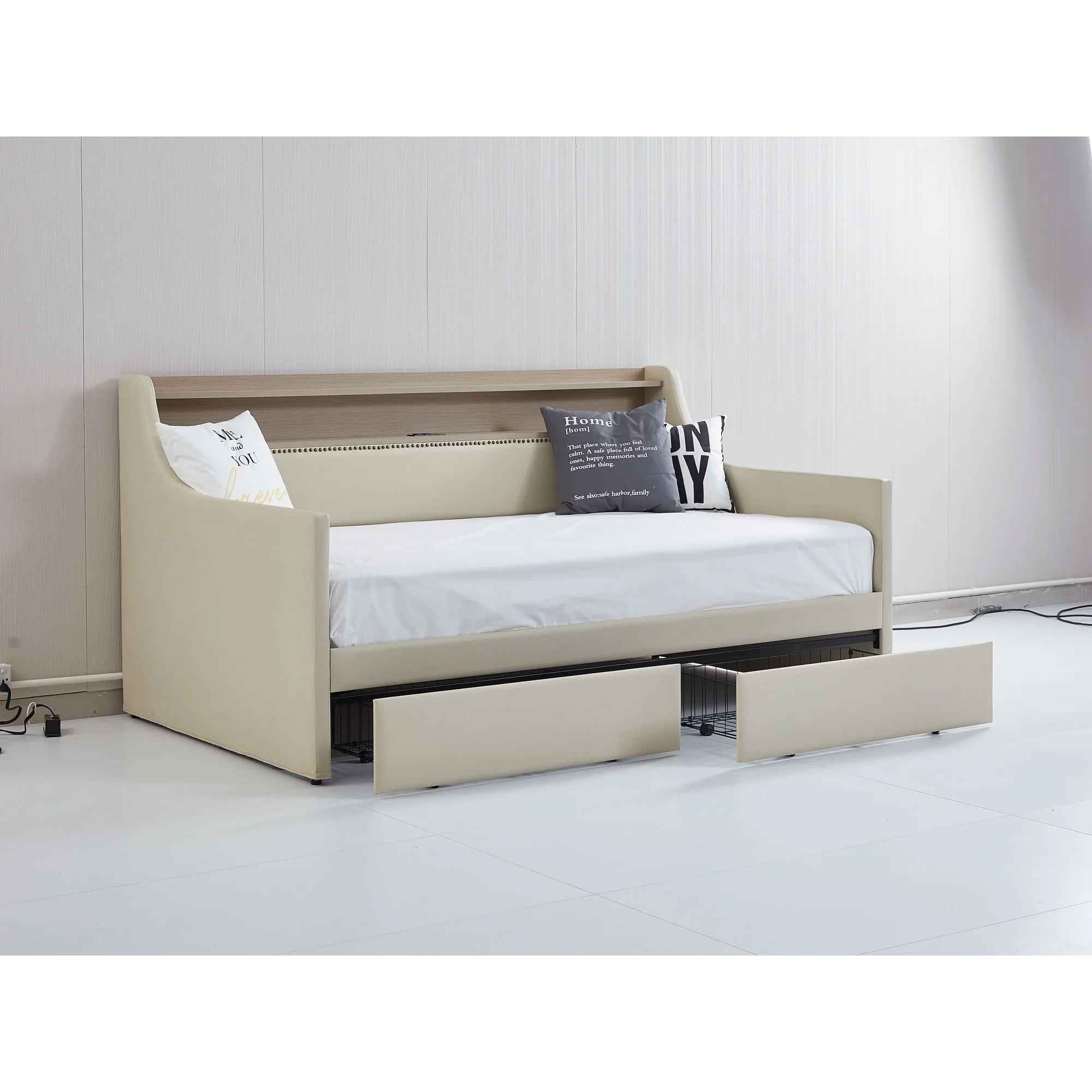 Beige Twin Daybed with Storage Drawers, Charging Station & LED Lights - Expected Arrival: Dec 30th