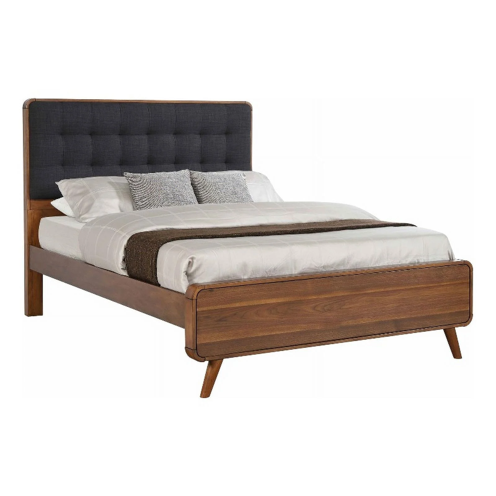 Pemberly Row Wood California King Bed with Upholstered Headboard Dark Walnut