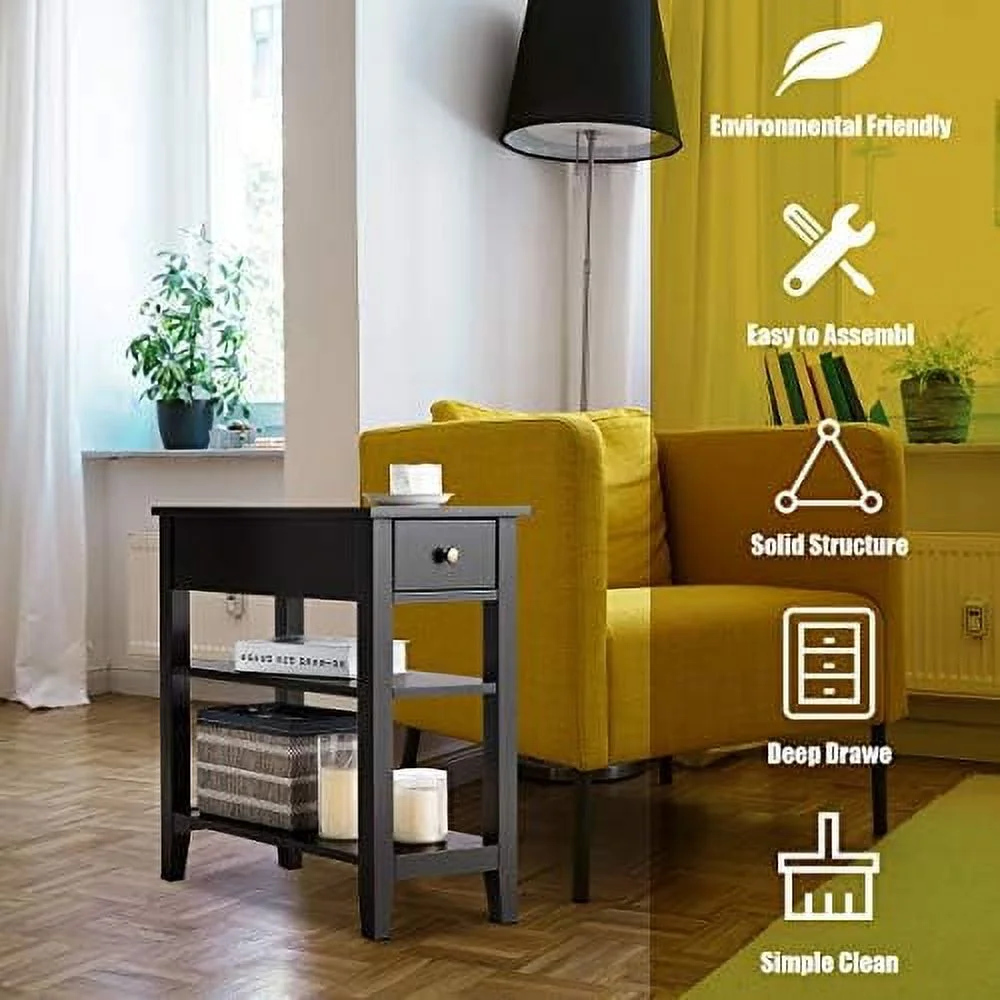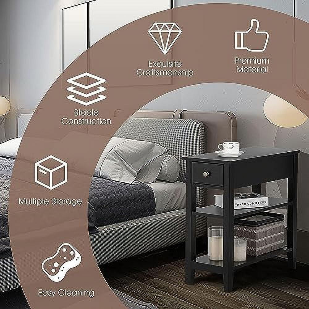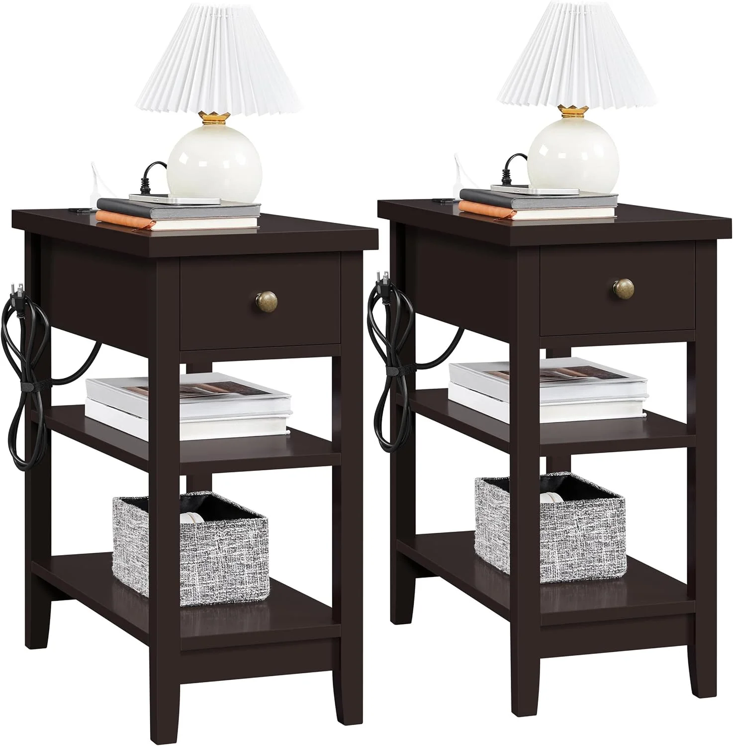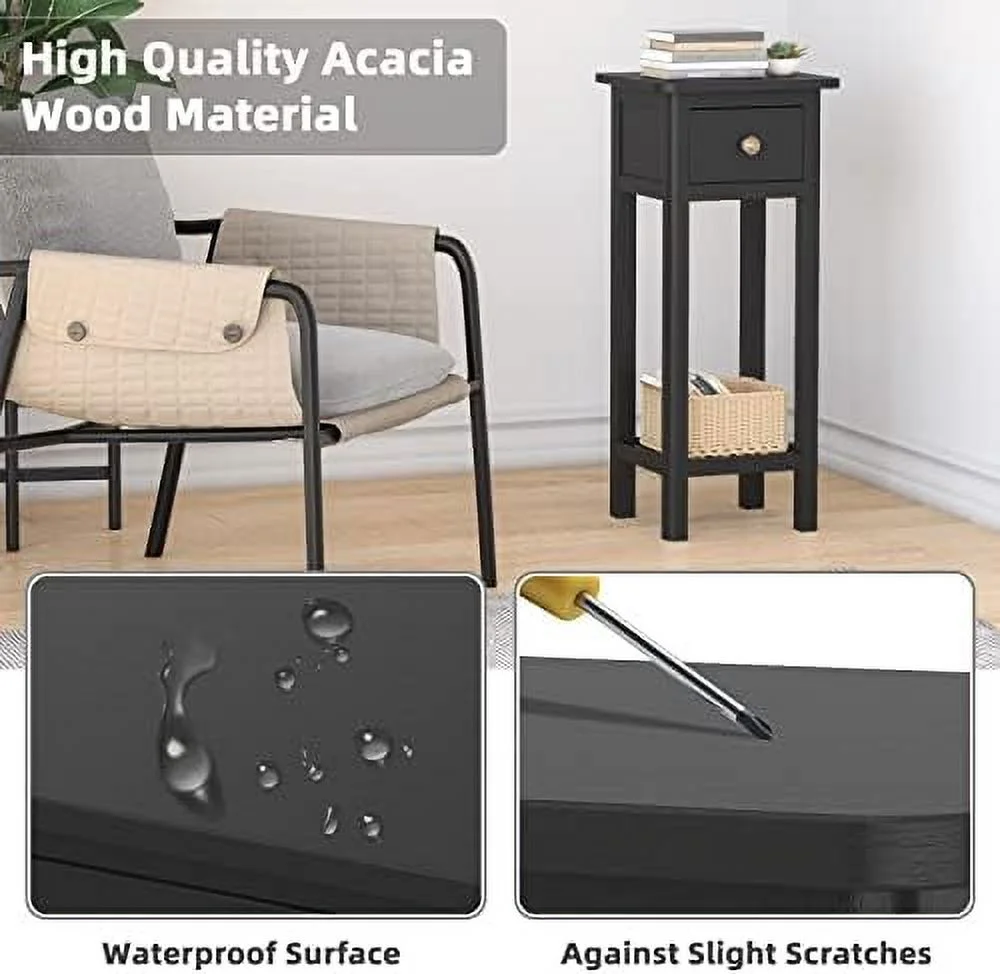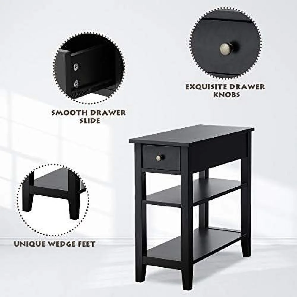 HOOBRO Set of 2 Narrow End Table with USB Ports Bedroom Nightstand with Drawers BK541BZP201
