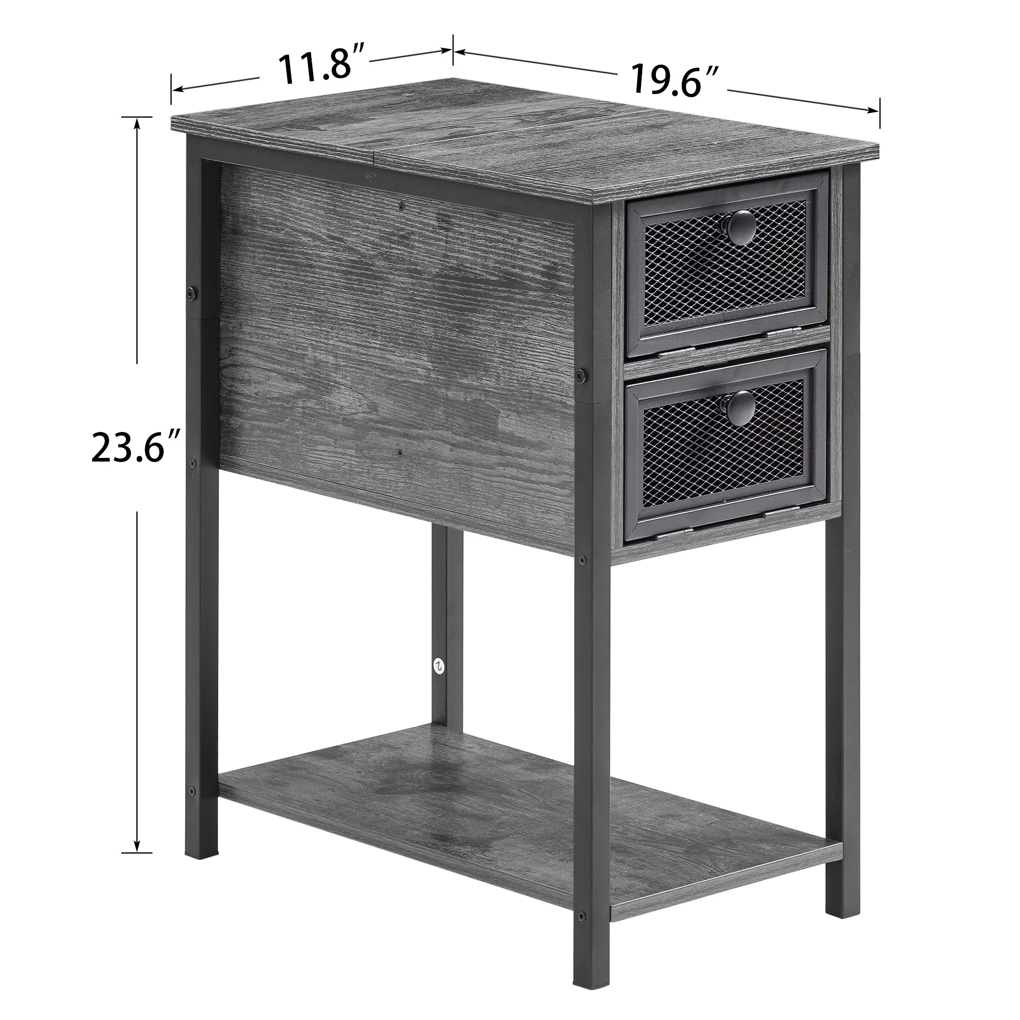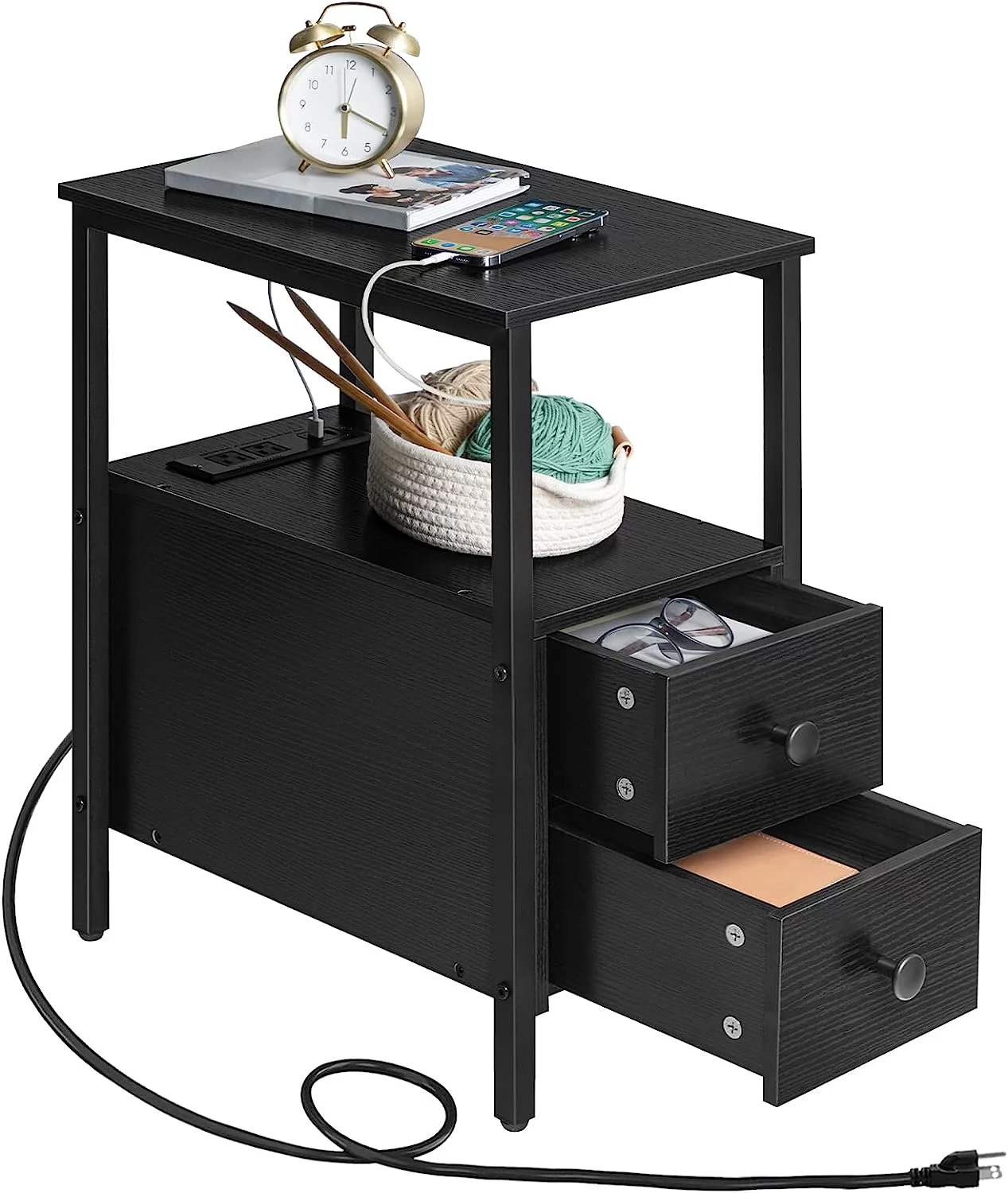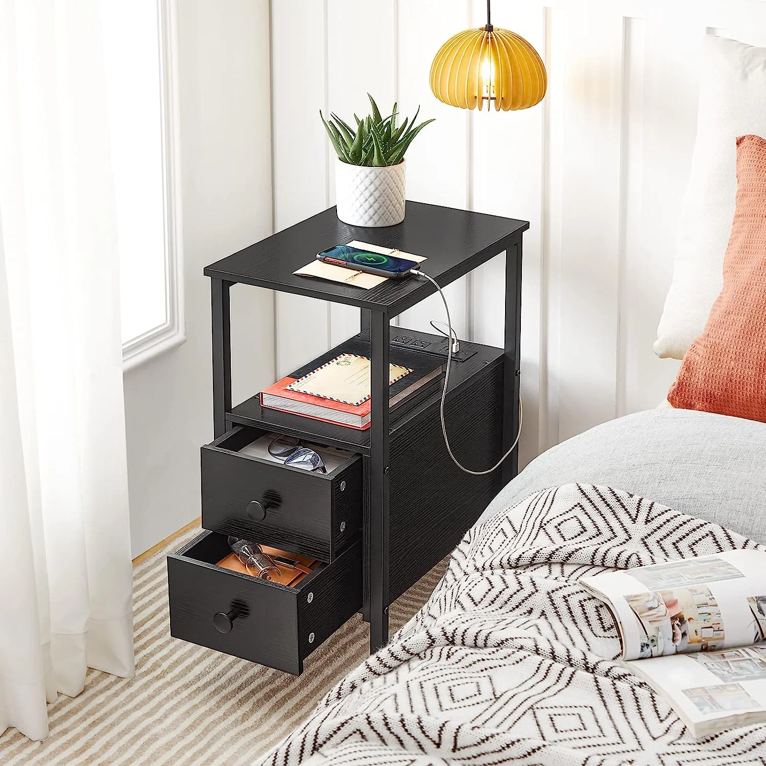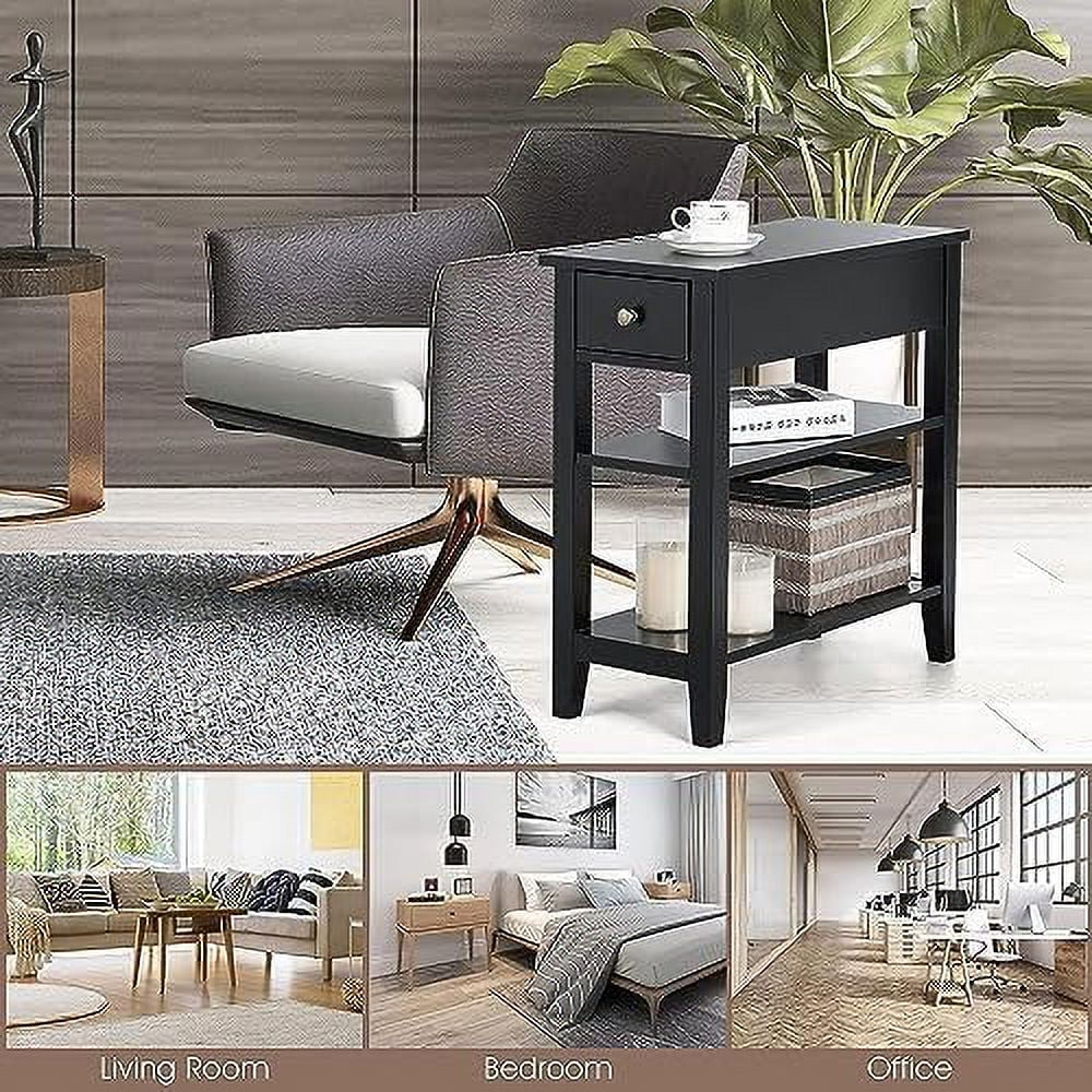 HOOBRO Set of 2 Narrow End Table with USB Ports Bedroom Nightstand with Drawers BK541BZP201