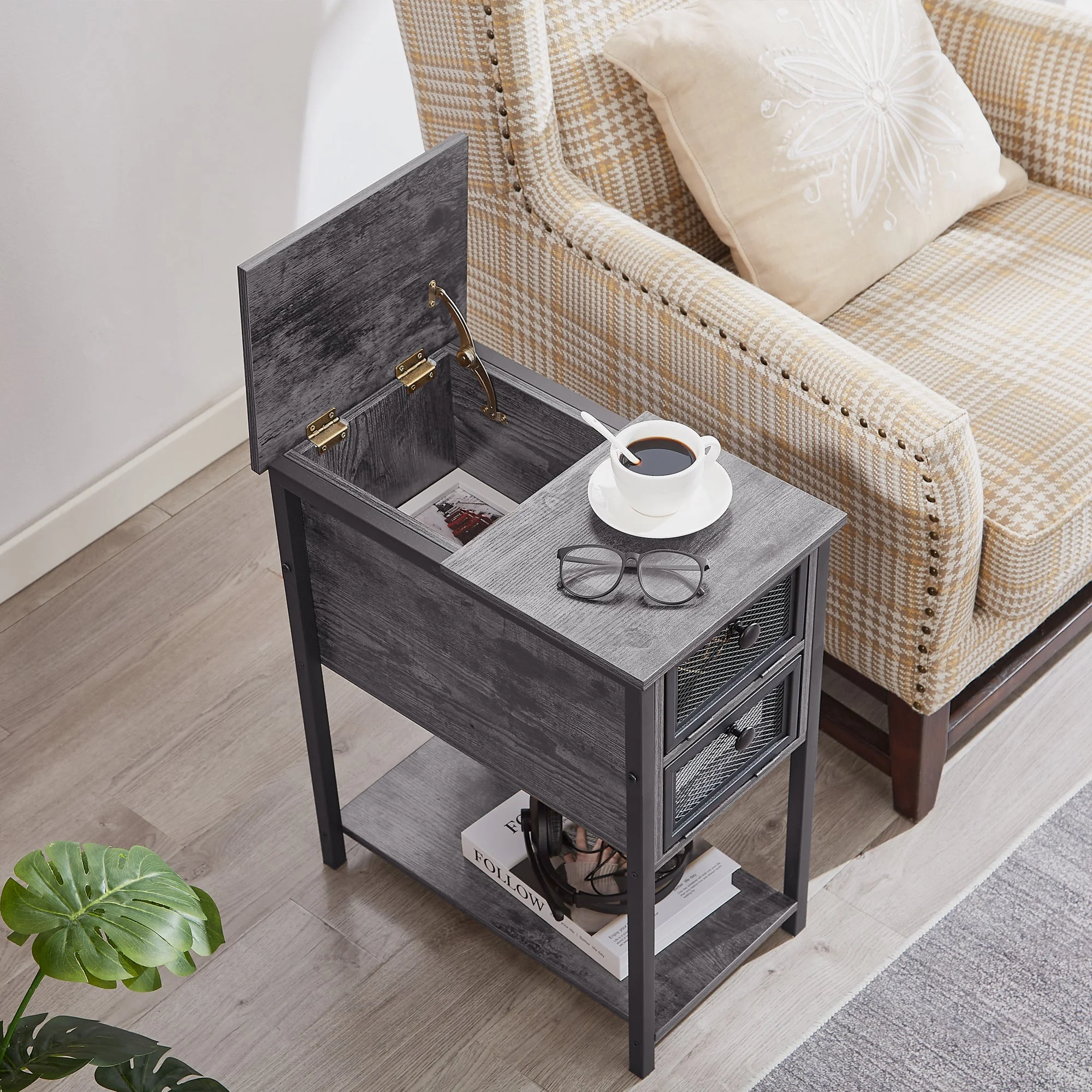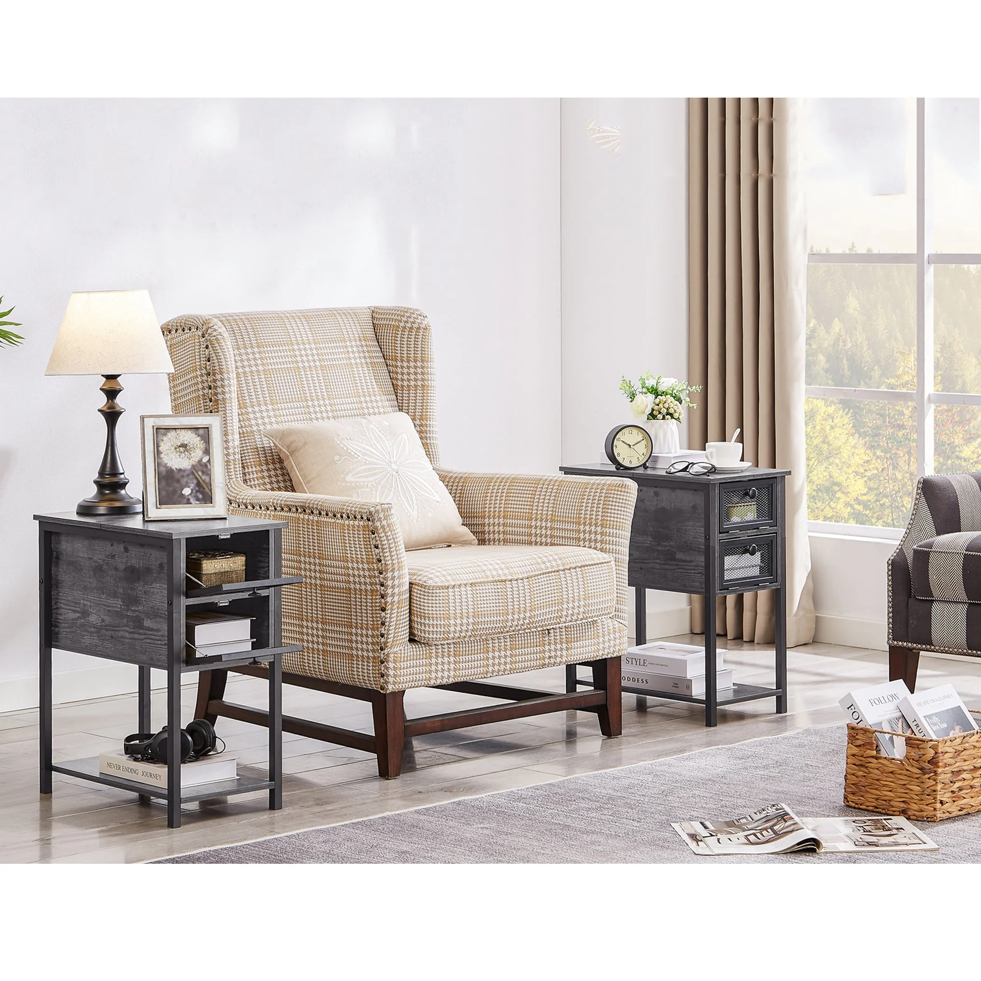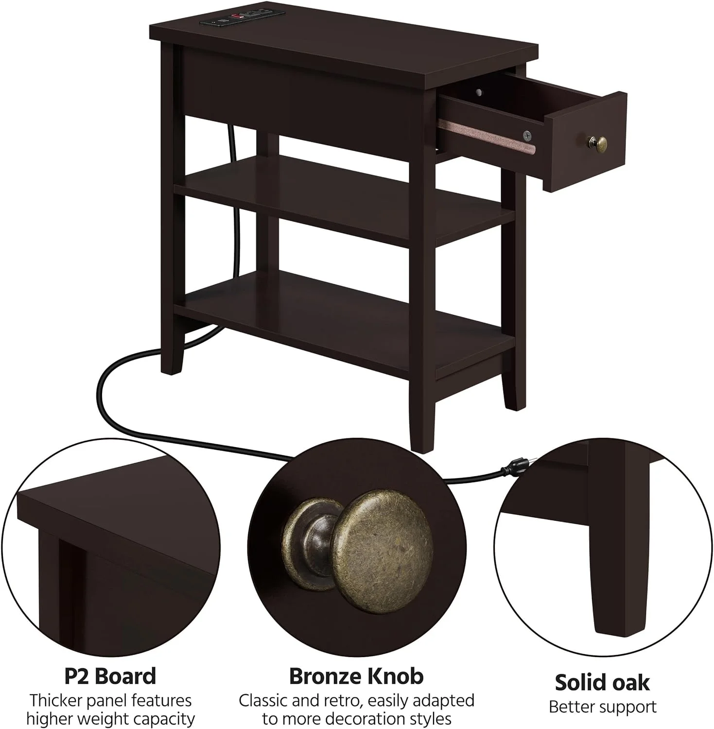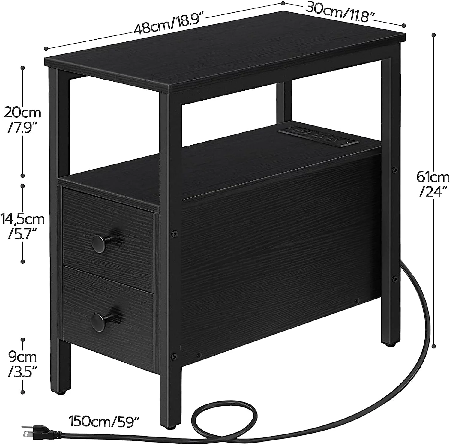 HOOBRO Set of 2 Narrow End Table with USB Ports Bedroom Nightstand with Drawers BK541BZP201