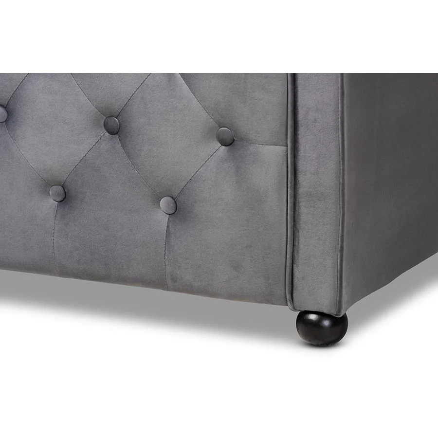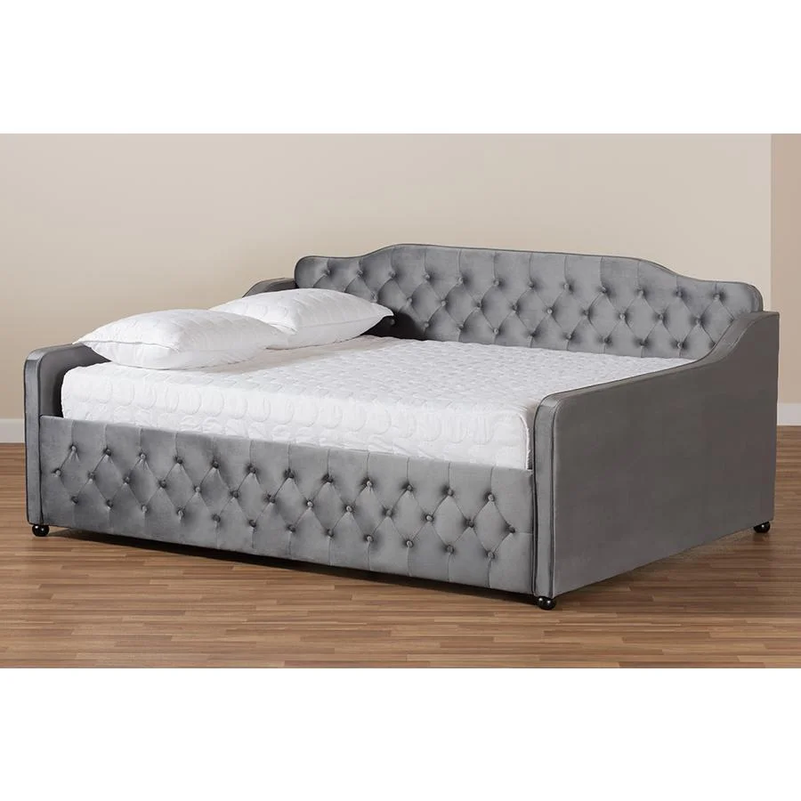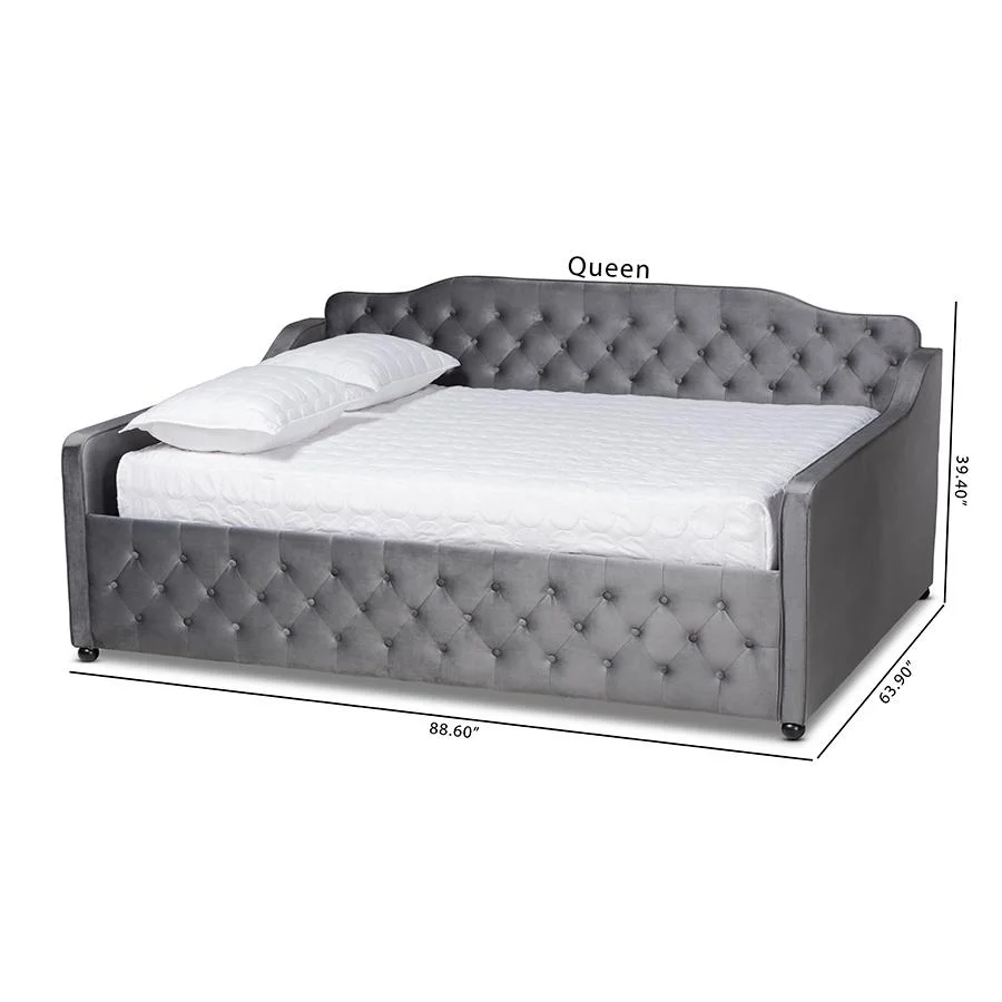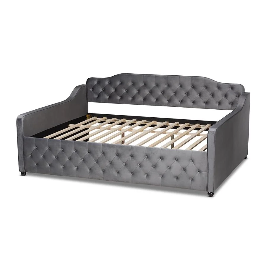 Freda Transitional Grey Velvet Fabric Upholstered and Button Tufted Full Size Daybed