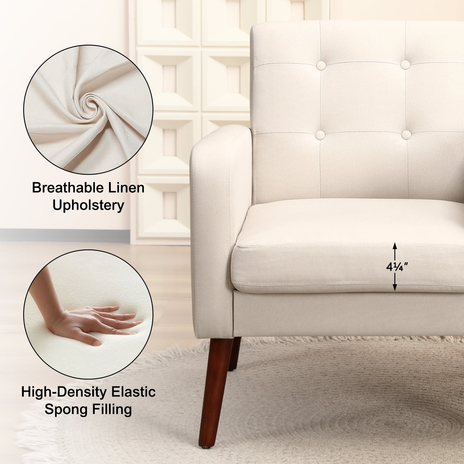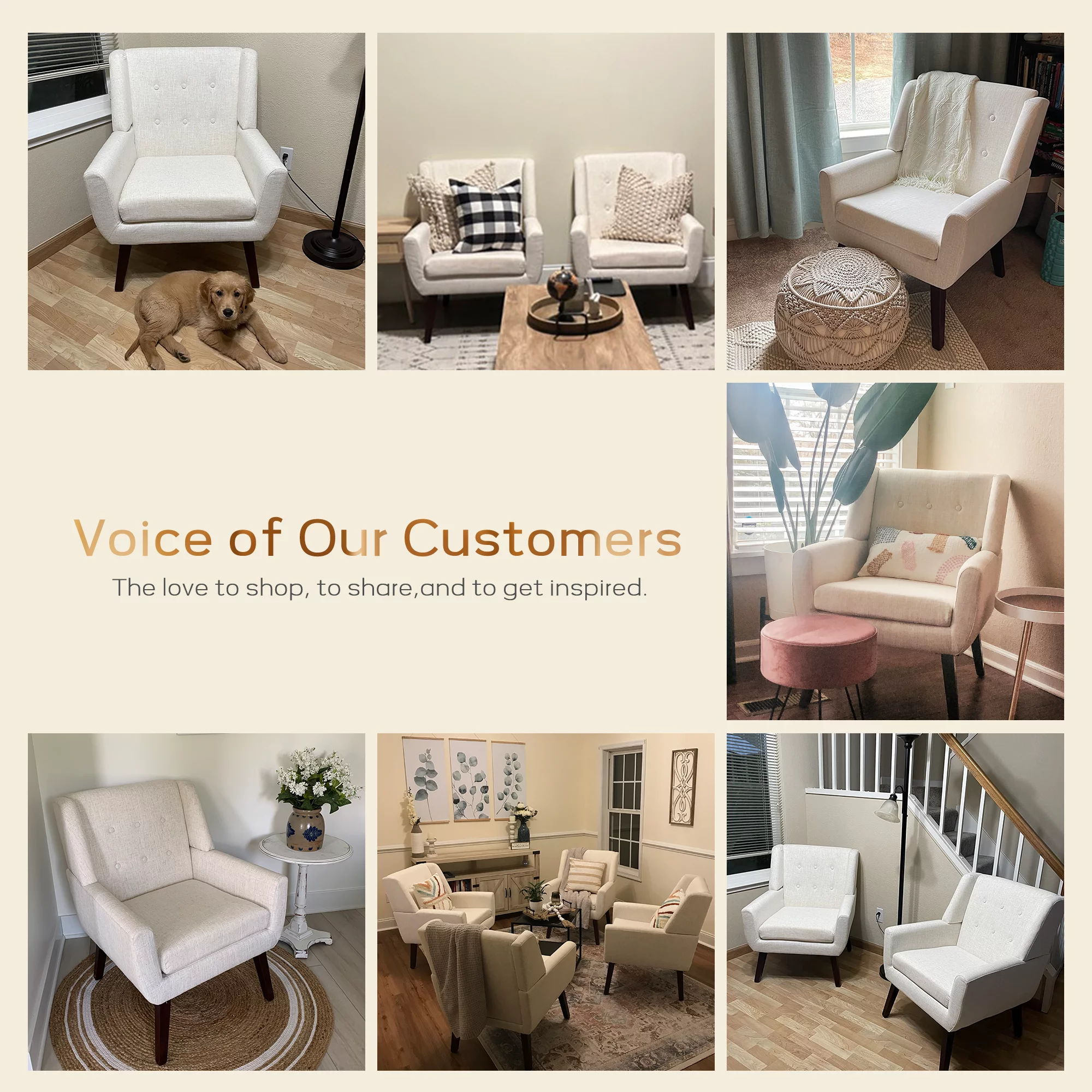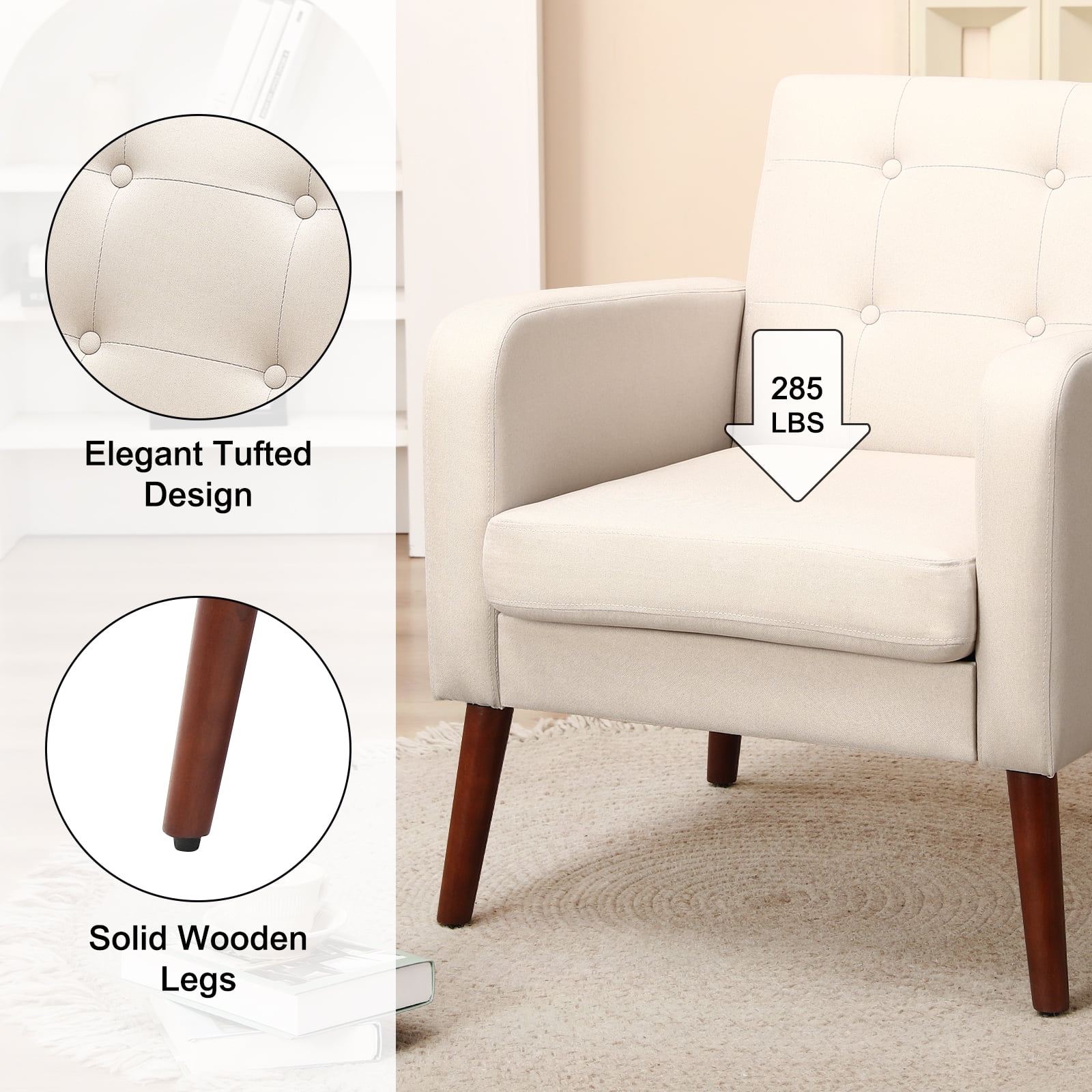 Accent Chair with Ottoman, Button Tufted Armchair for Bedroom Living Room(Beige)