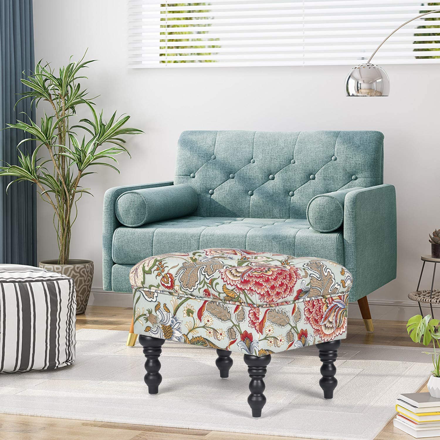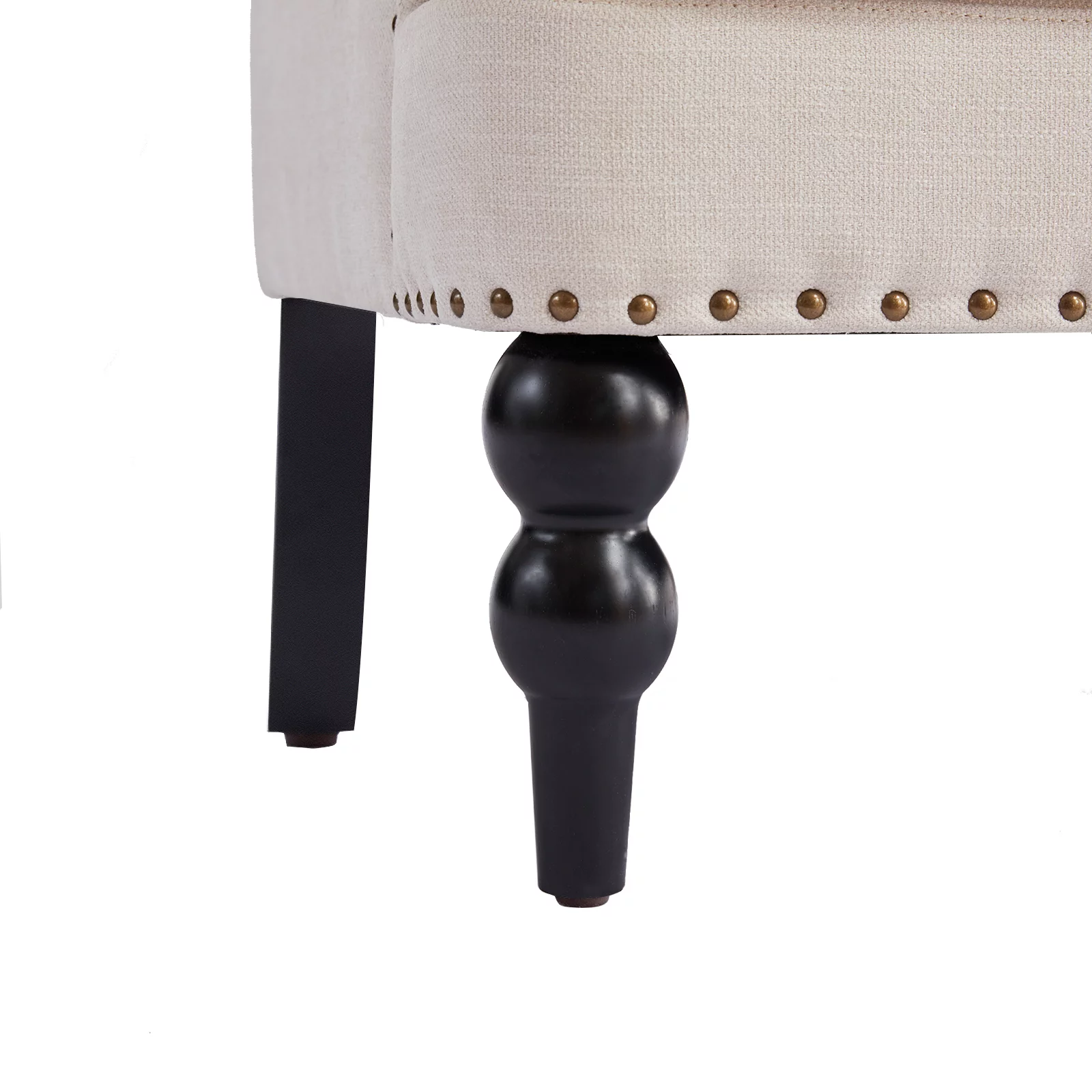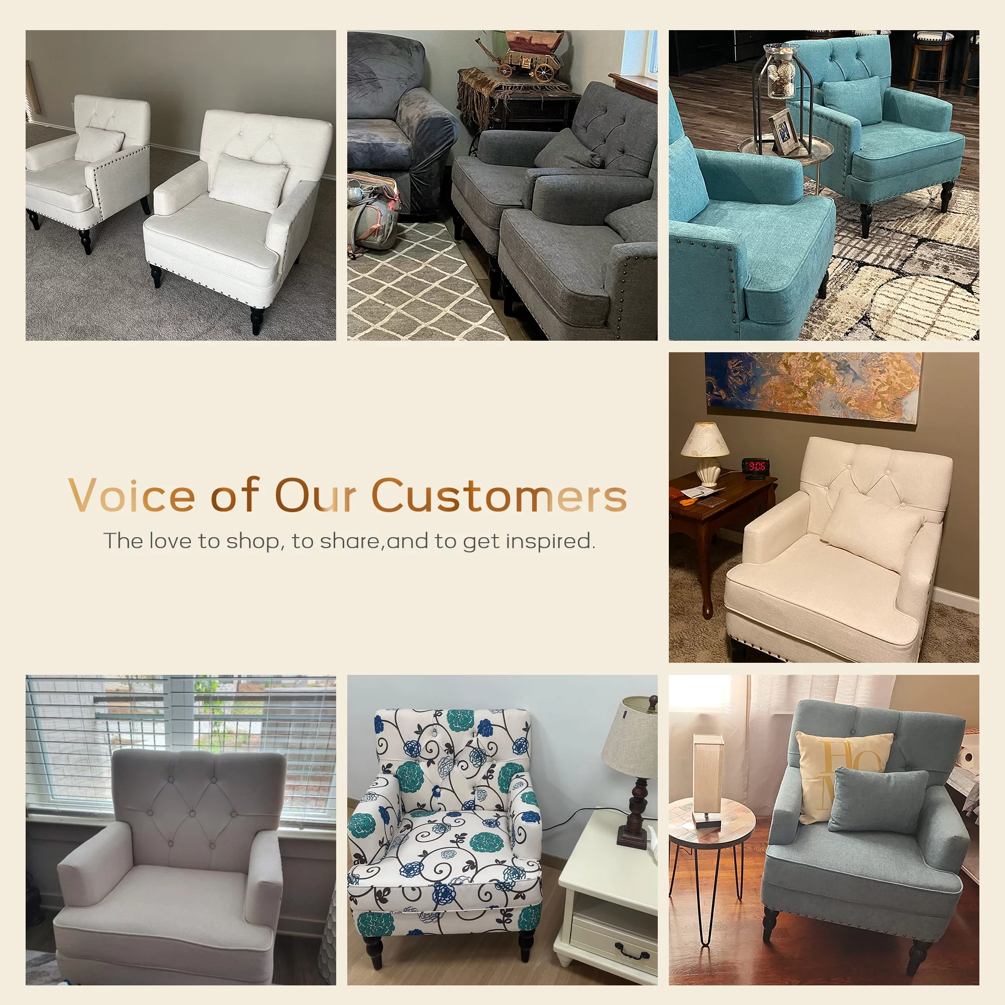 Accent Chair with Ottoman, Button Tufted Armchair for Bedroom Living Room(Beige)
