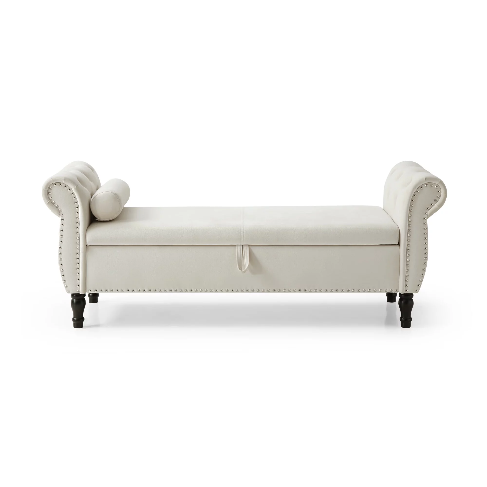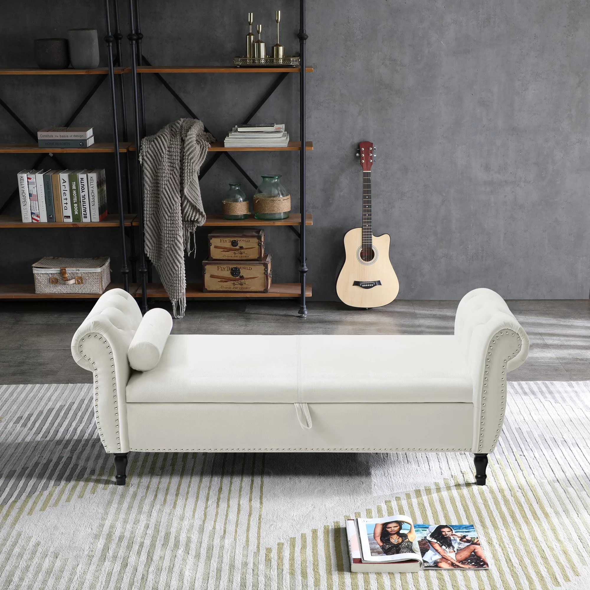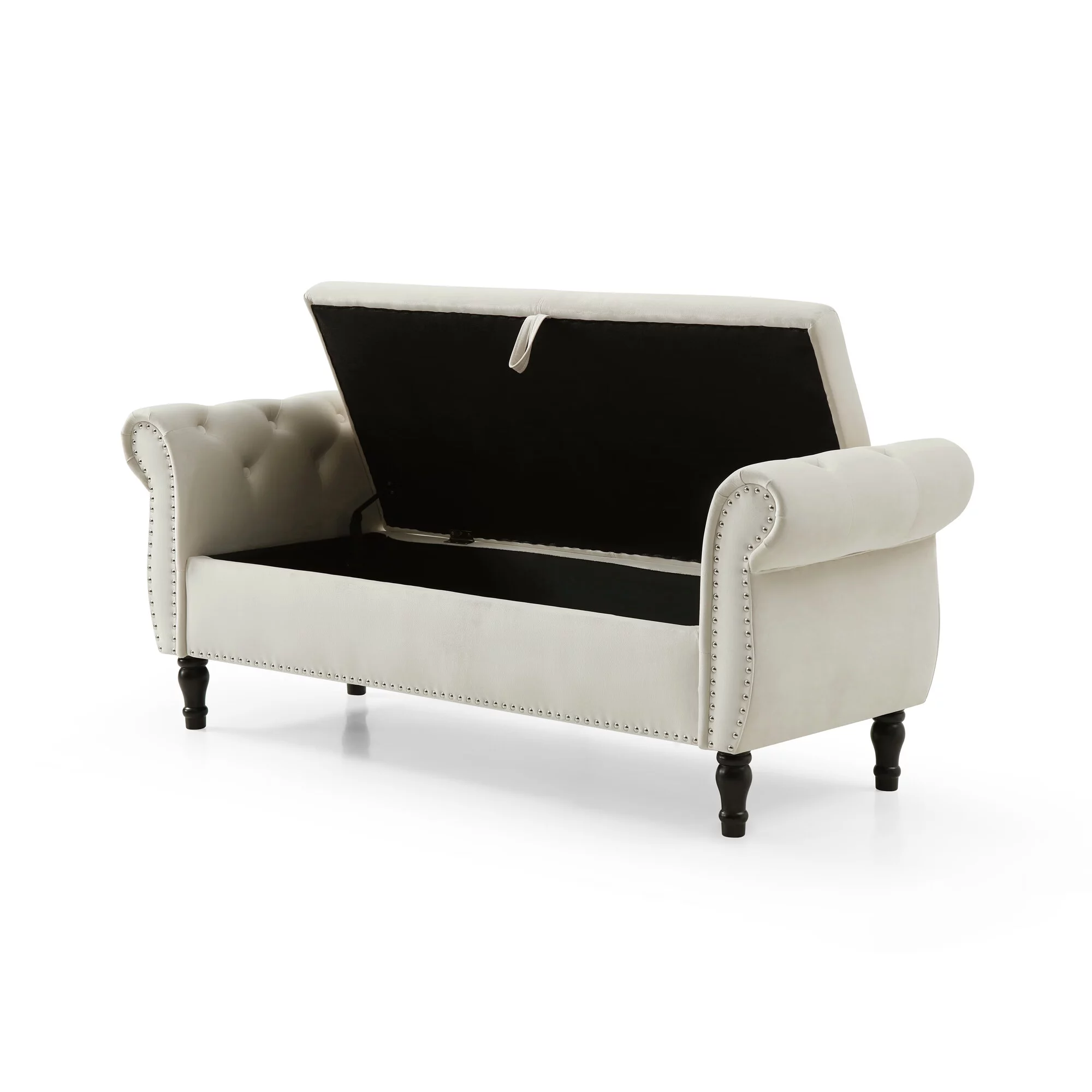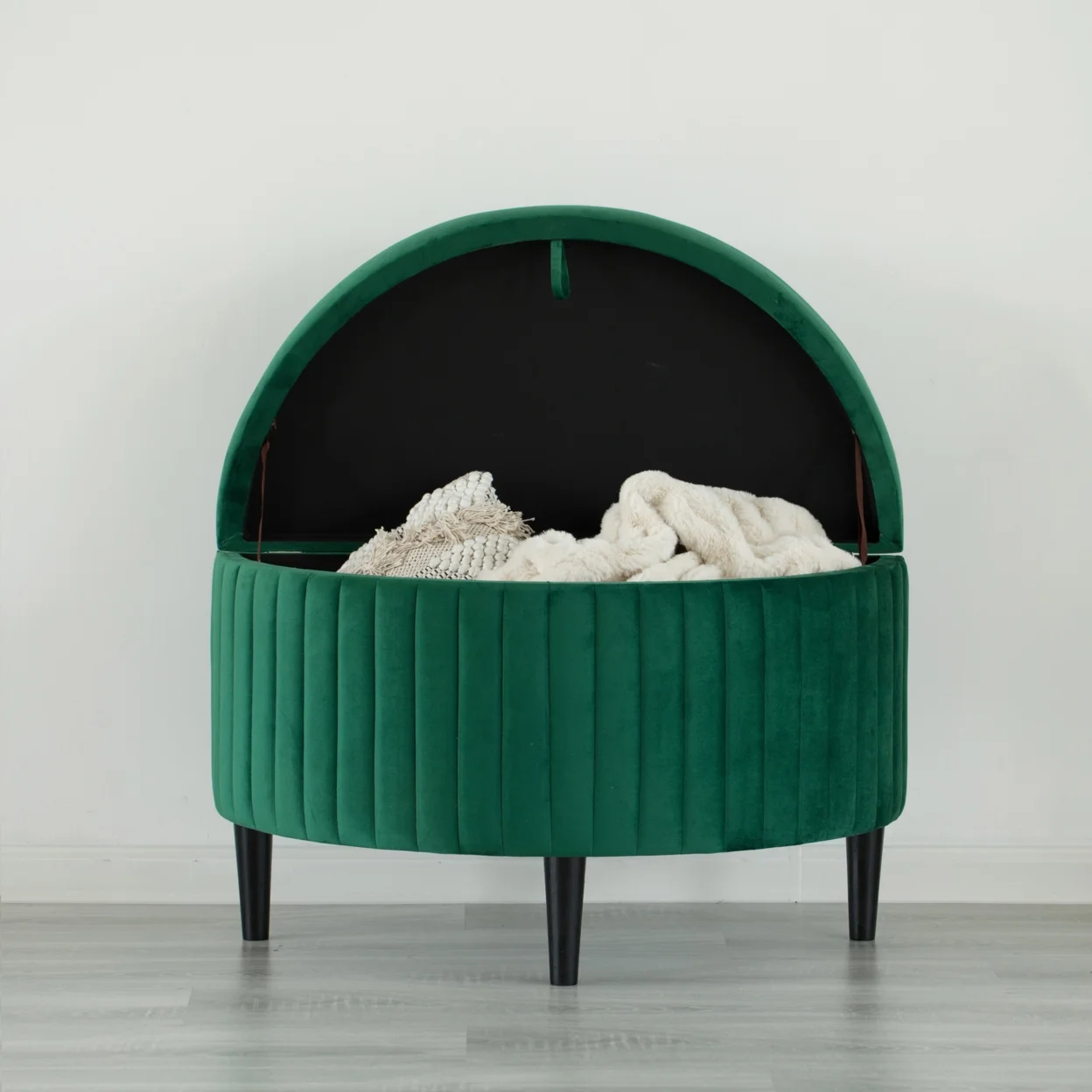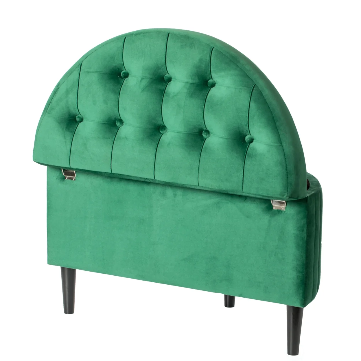 Fabulaxe 21.5 x 33.25 x 15.75 in. Half Moon Modern Velvet Tufted Storage Ottoman Bench, Green