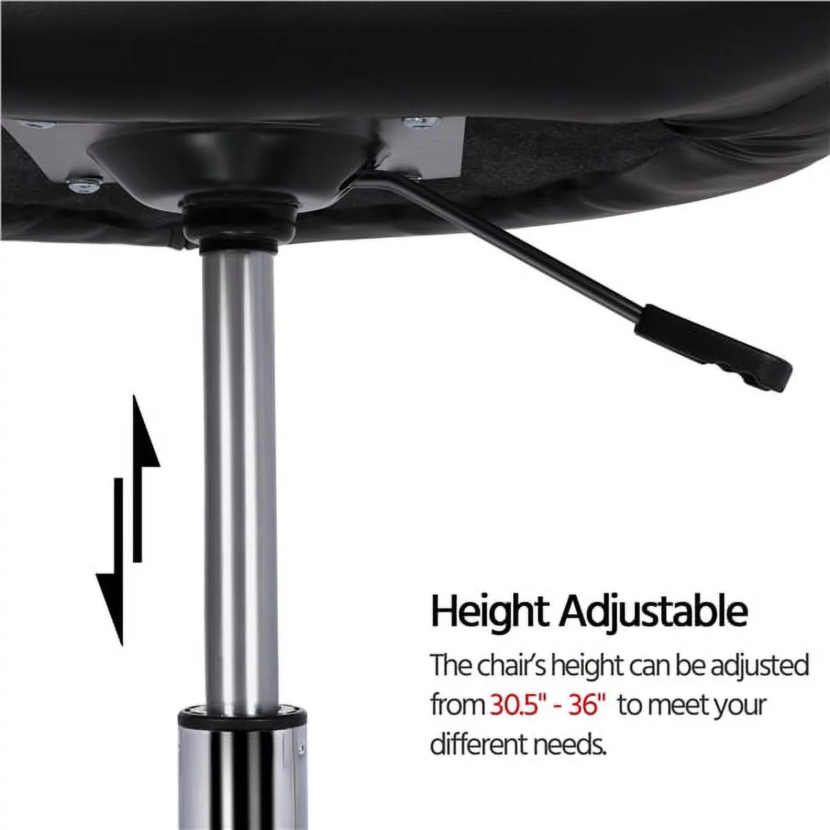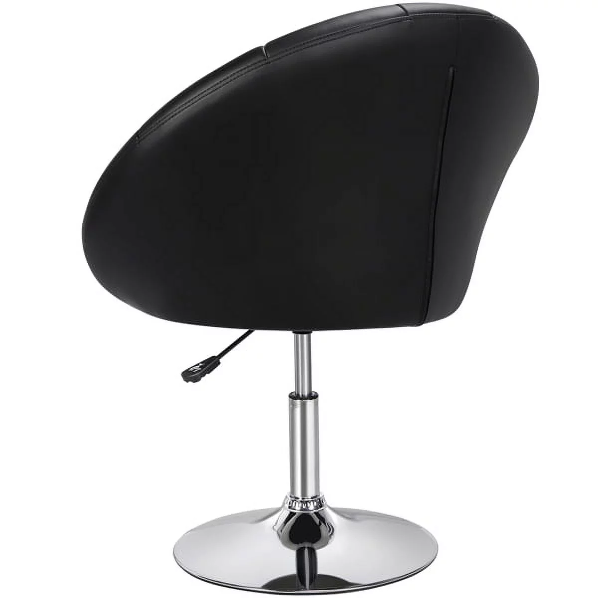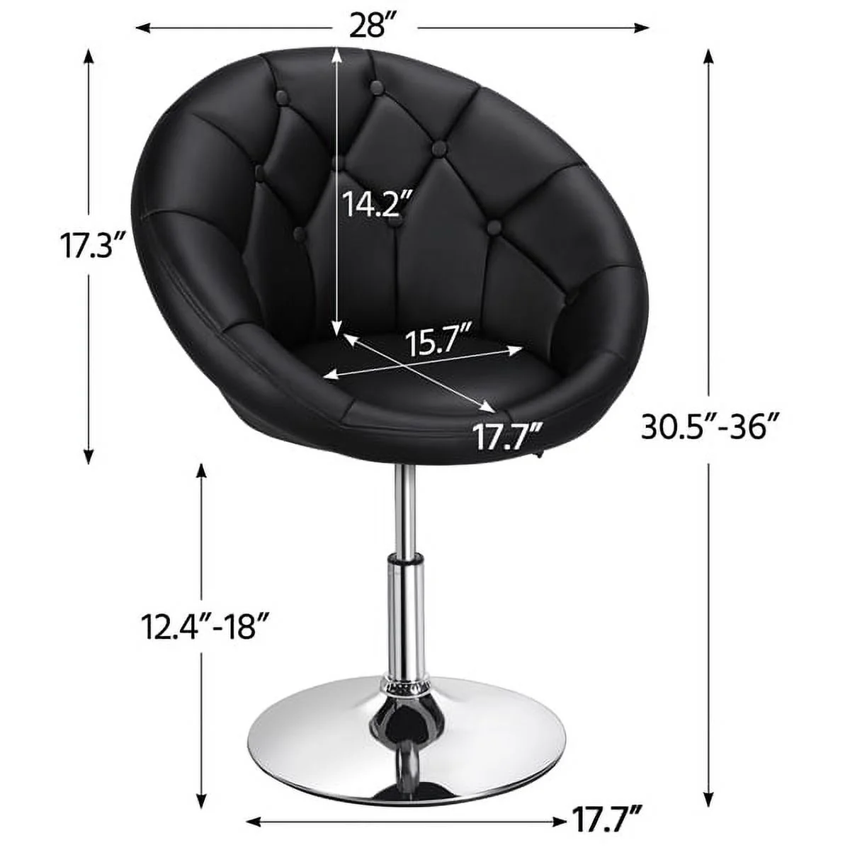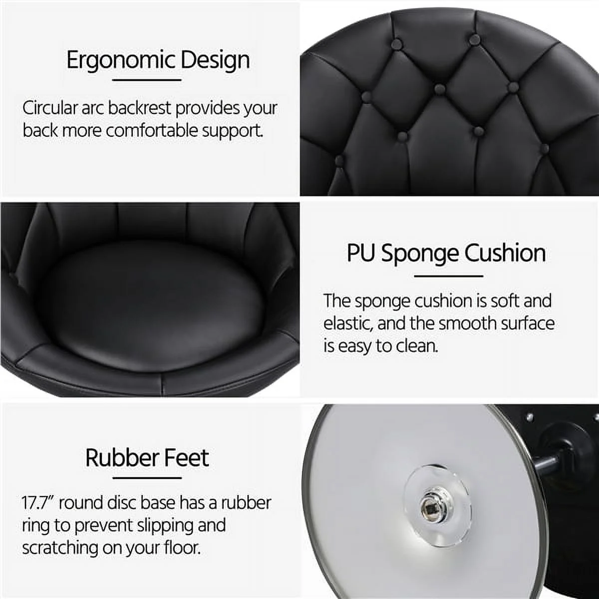 Alden Design Modern Tufted Adjustable Barrel Swivel Accent Chair, Black Faux Leather