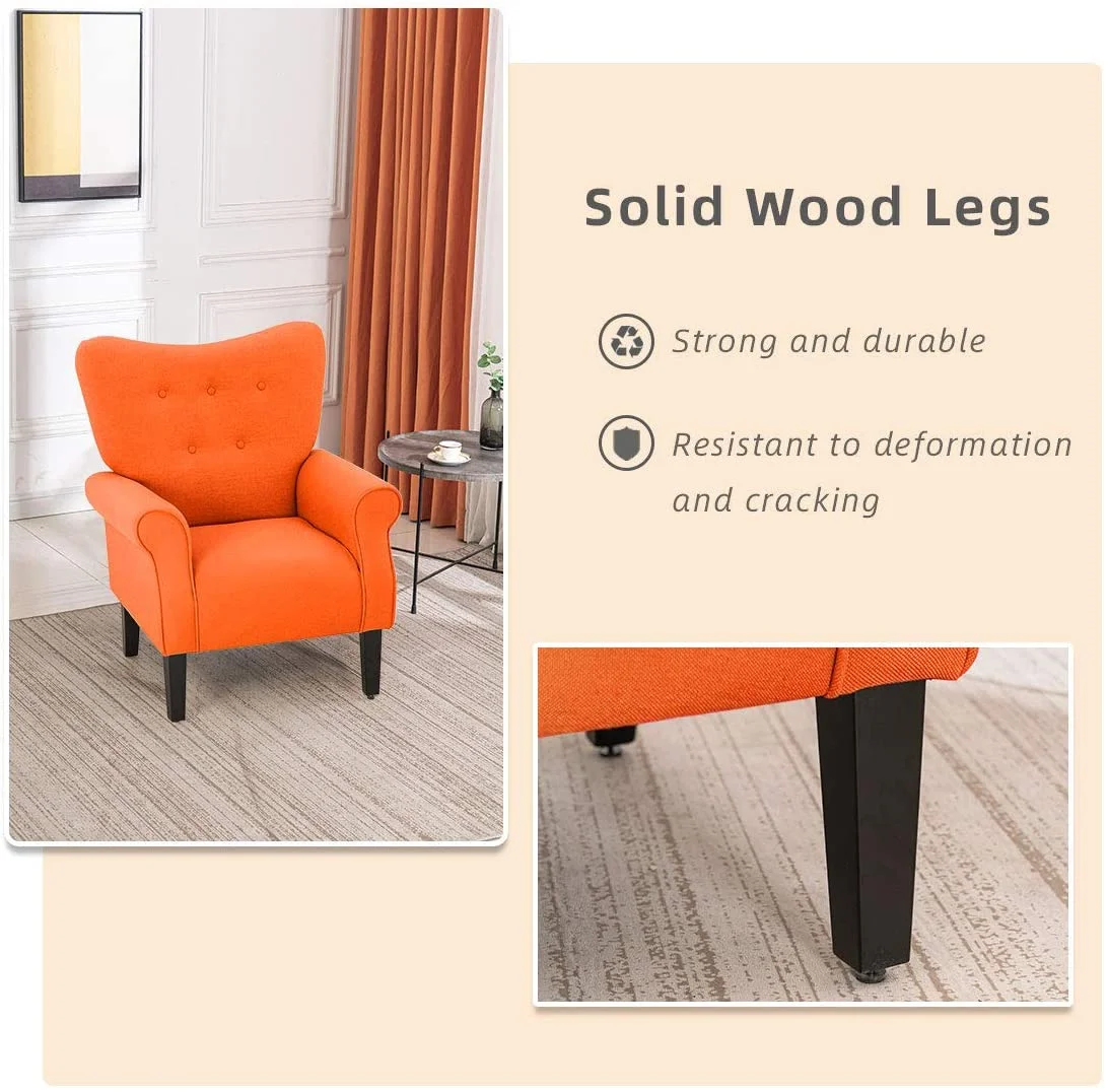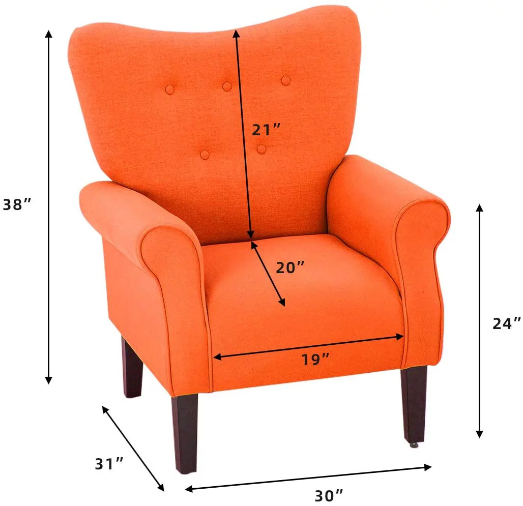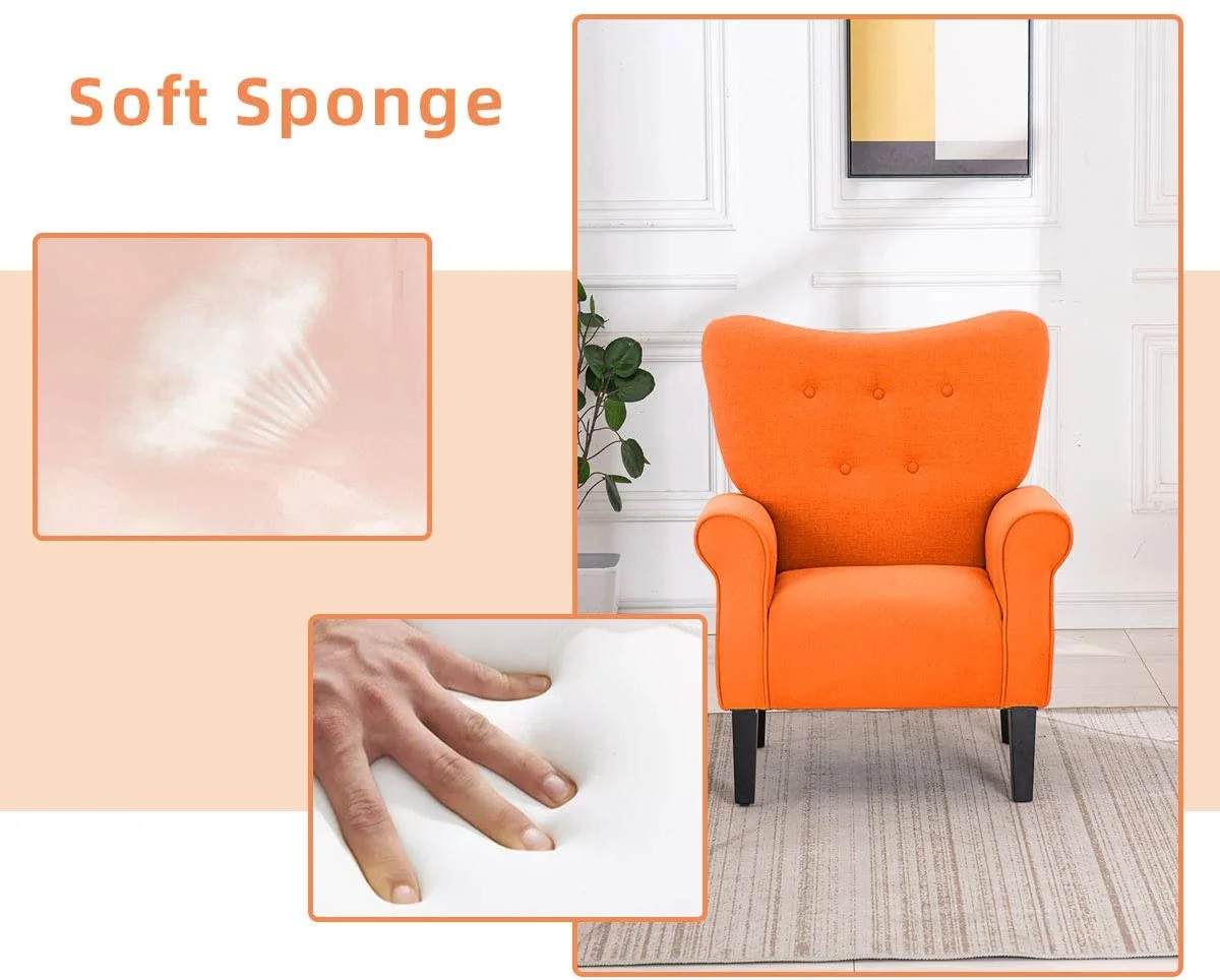 Erommy Mid Century Arm Chair,Velvet Tufted High Back Accent Chair,Orange