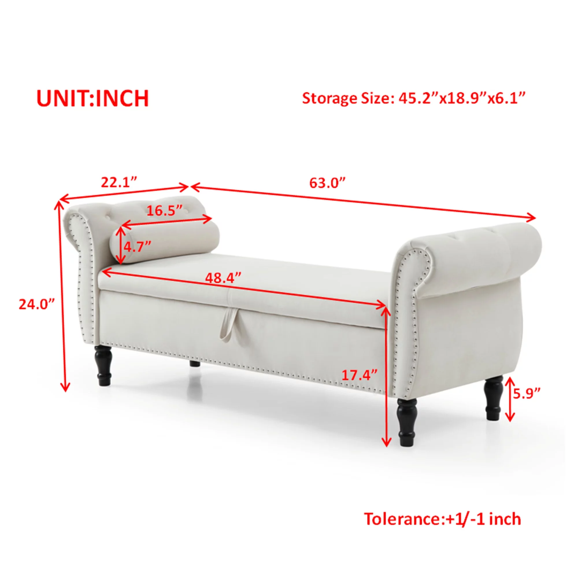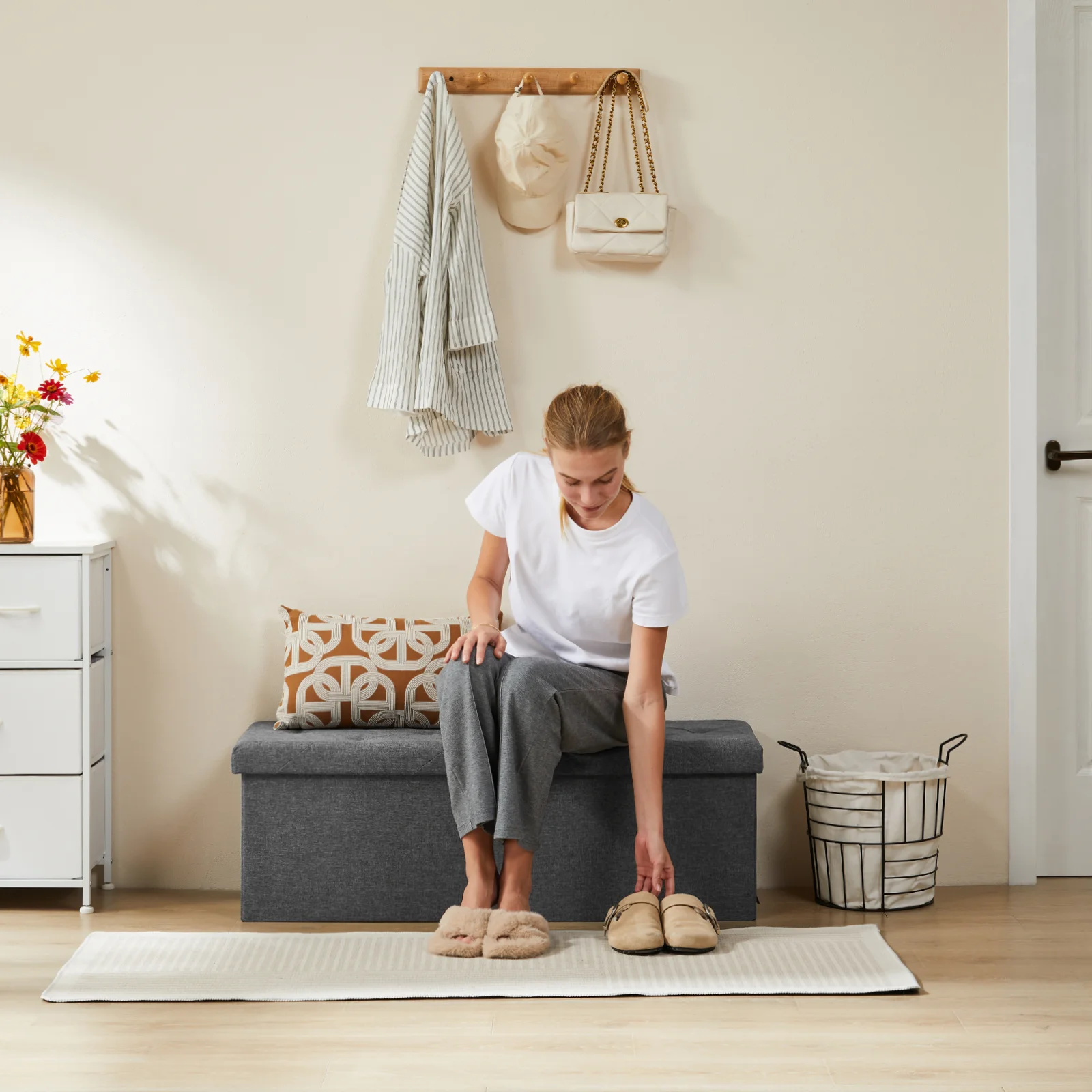 EDX 43" Folding Storage Ottoman Bench, Foot Rest Stool Storage Chest, Grey