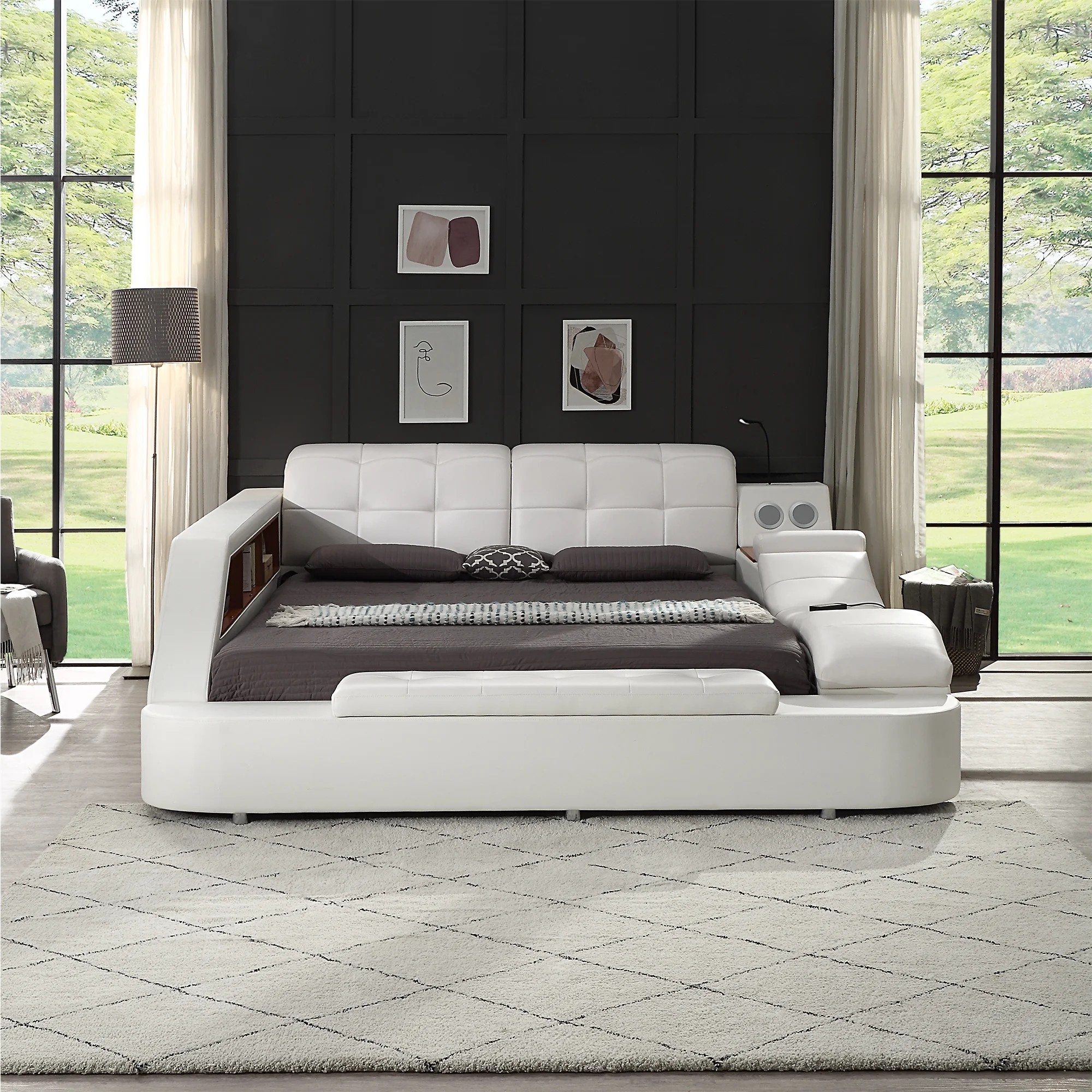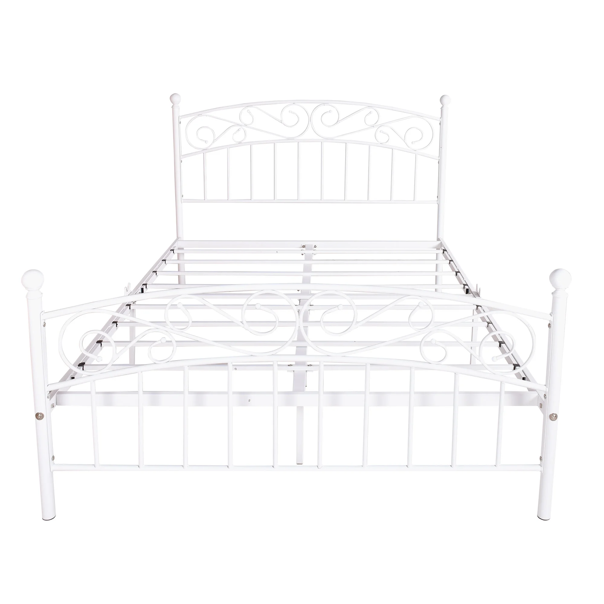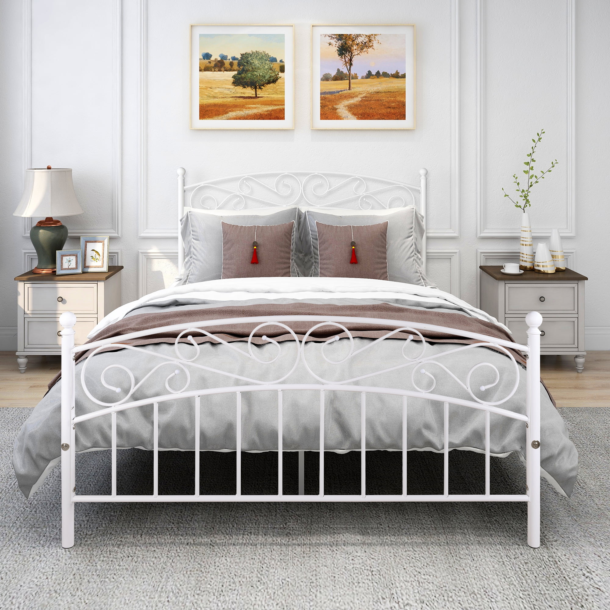 Metal bed frame platform mattress foundation with headboard and footrest, heavy duty and quick assembly, Queen White