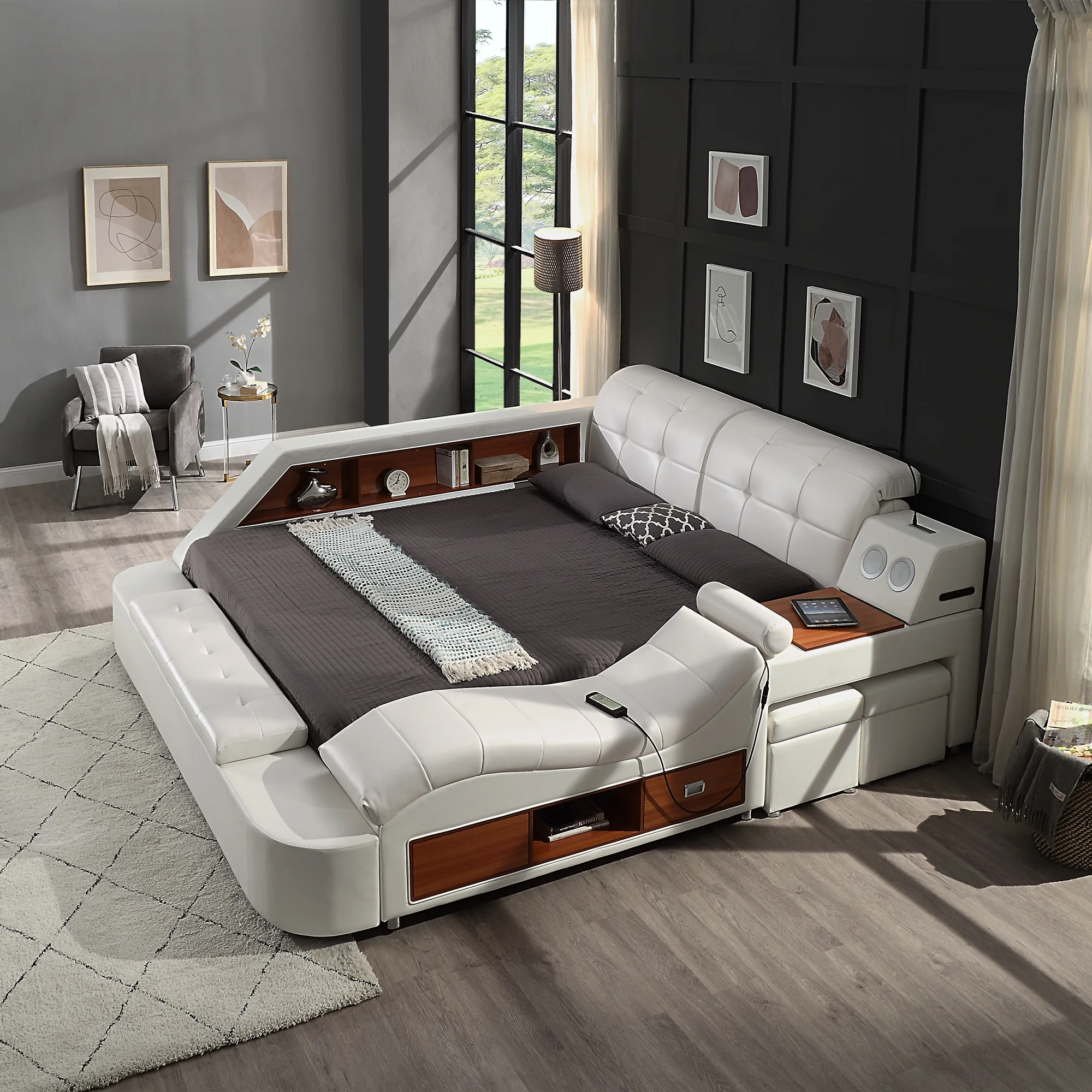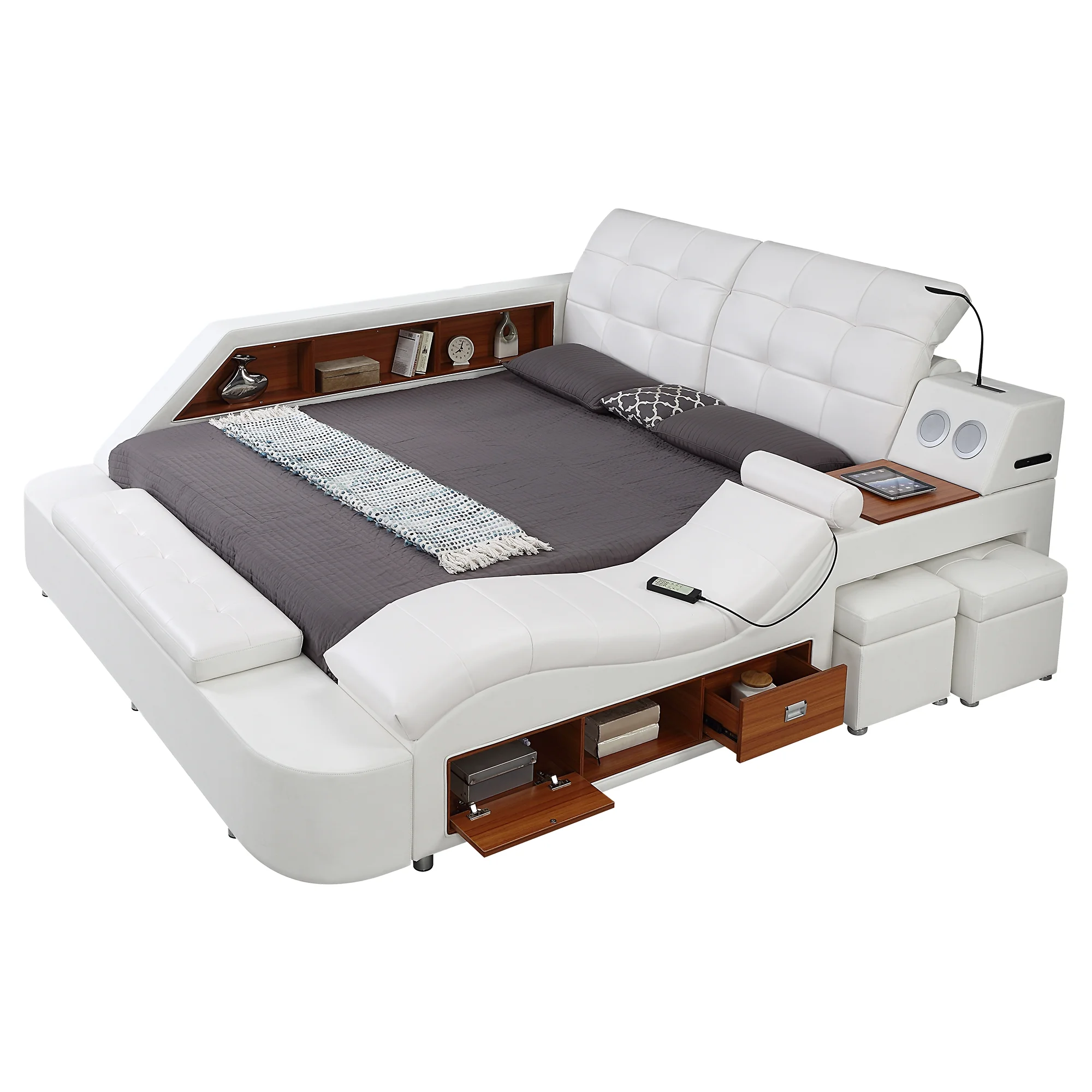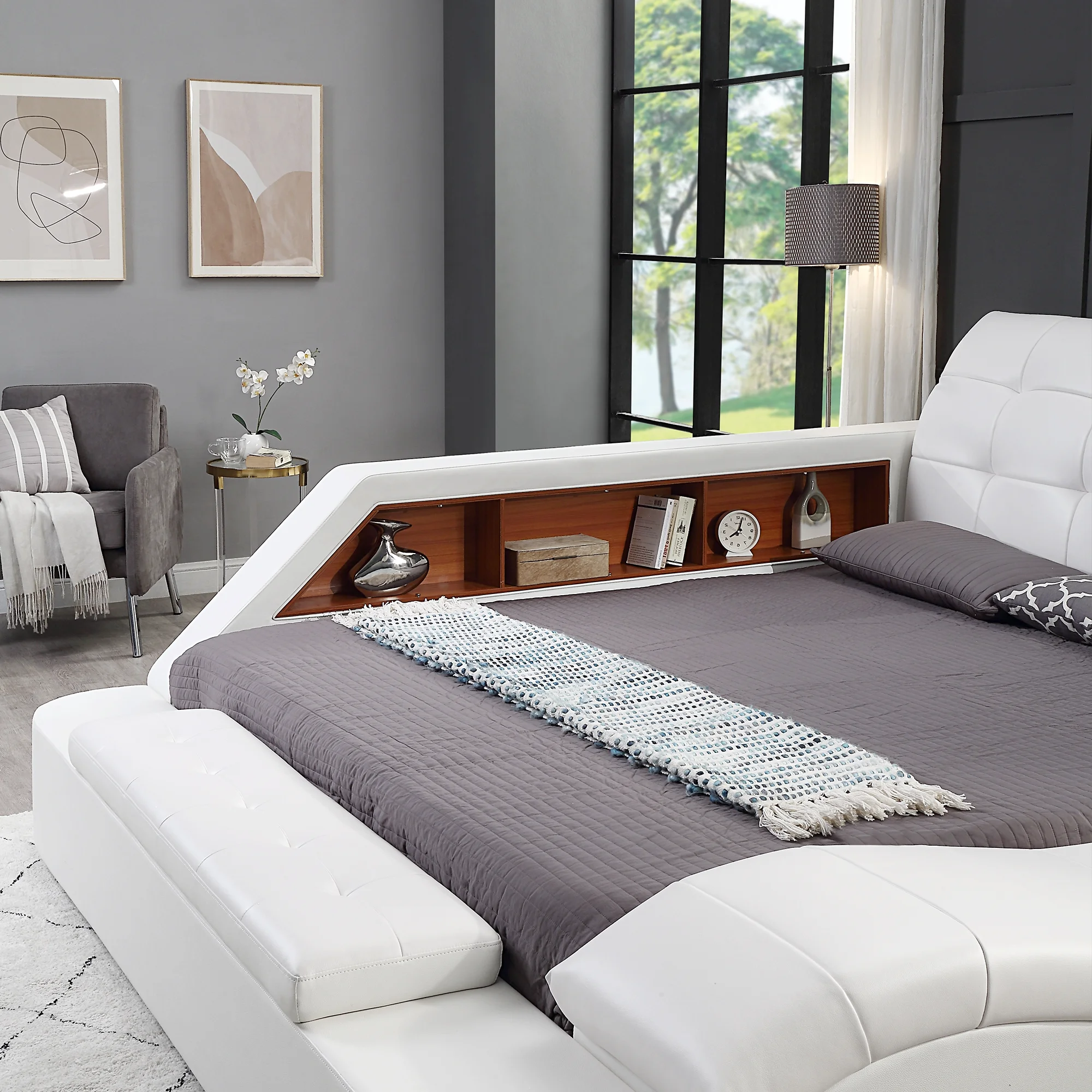 Metal bed frame platform mattress foundation with headboard and footrest, heavy duty and quick assembly, Queen White