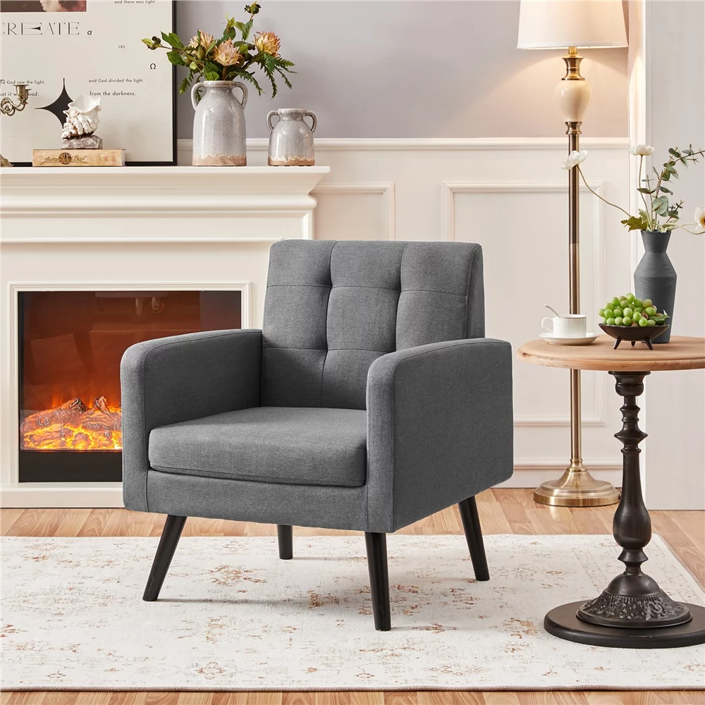 Smile Mart Modern Fabric Tufted Accent Arm Chair for Living room, Dark Gray