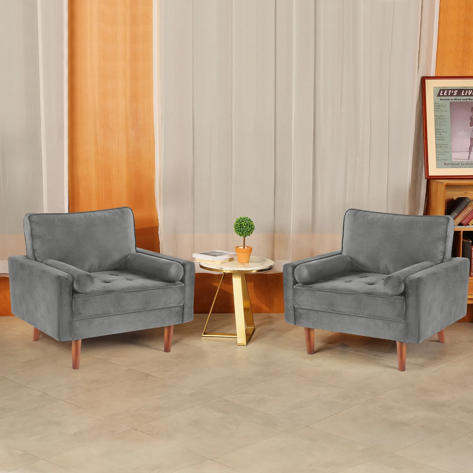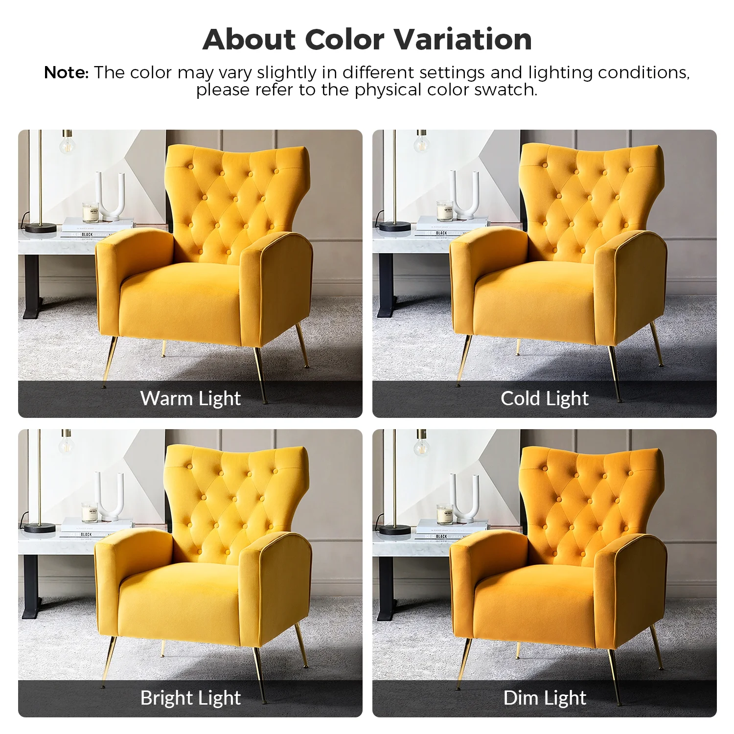 Fall Home Decor Velvet Accent Chair Button Tufted Armchair Metal Legs Adult Living Room Mustard