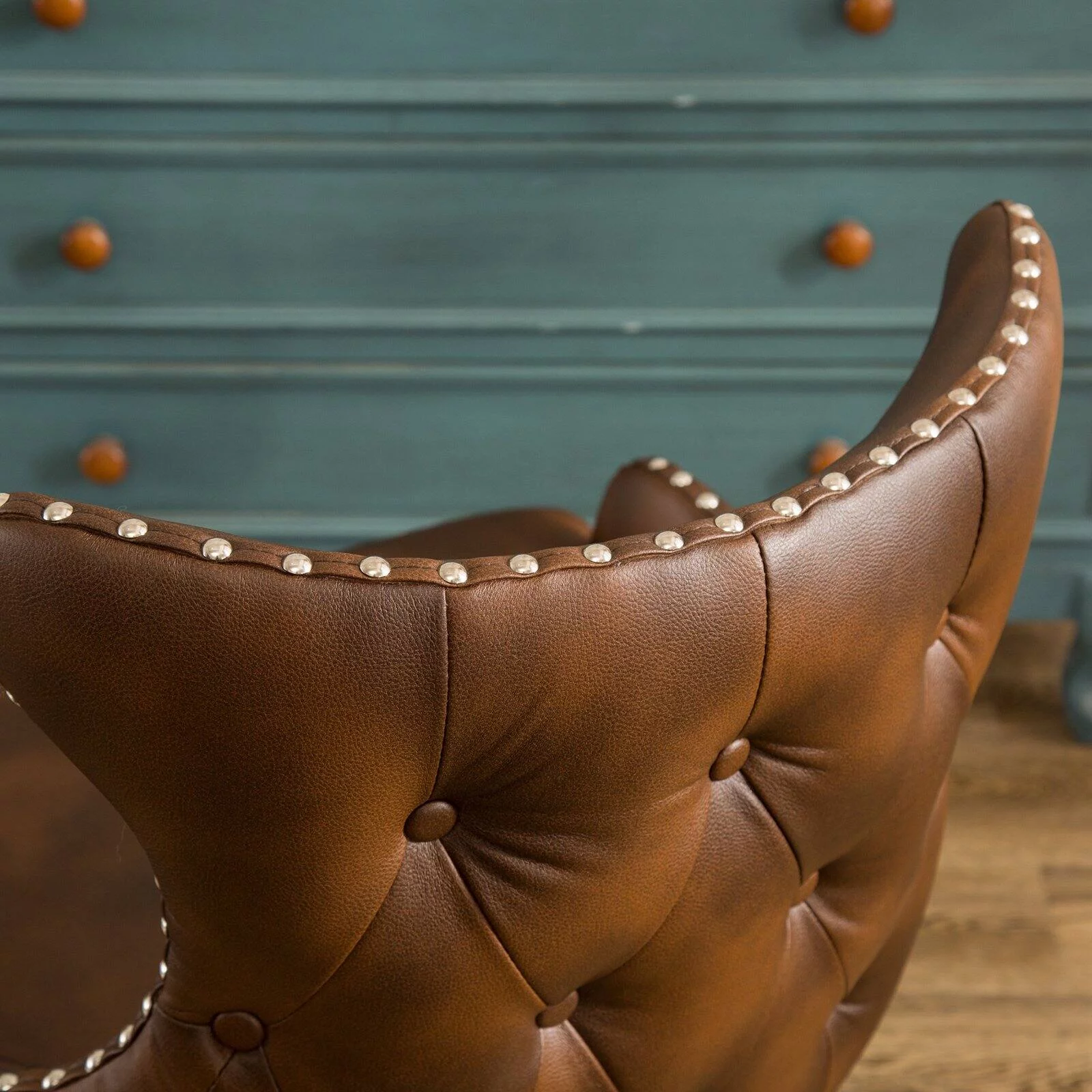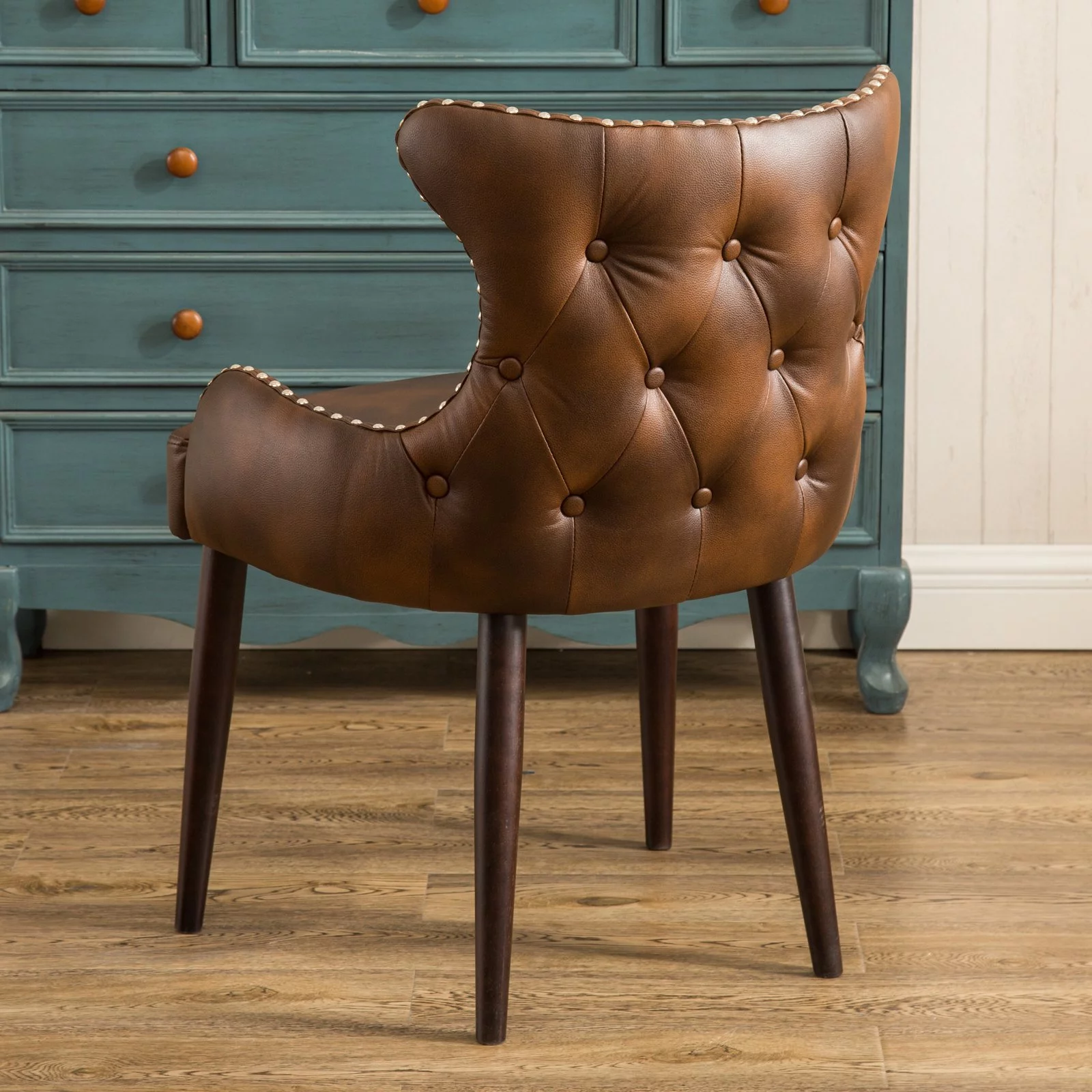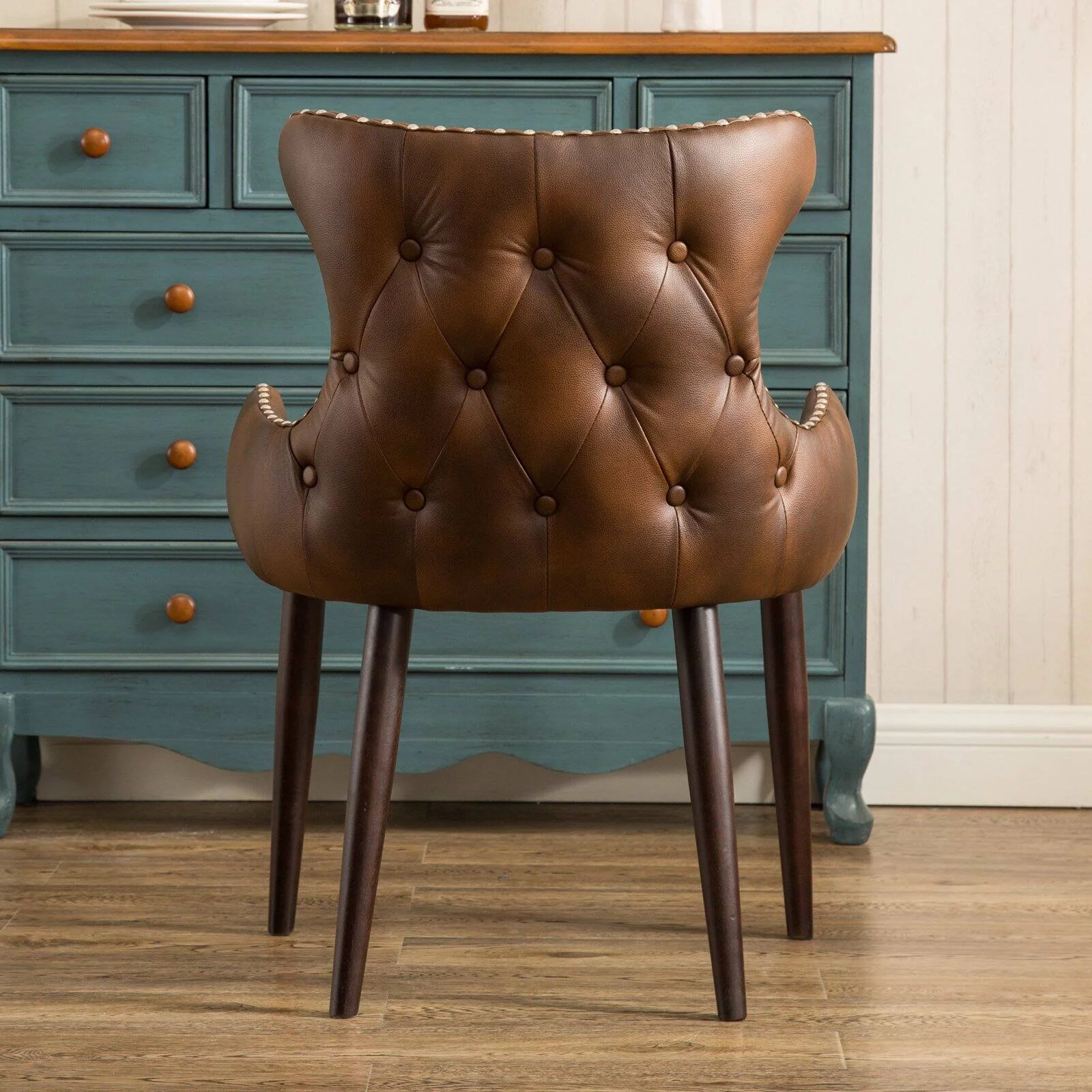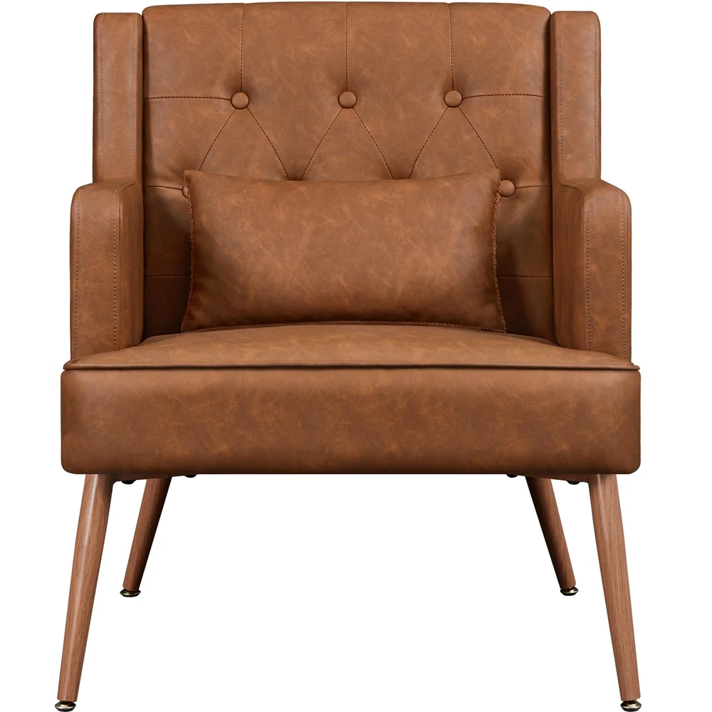 SZLIZCCC Faux Leather Accent Chair Modern PU Armchair, Retro Tufted Upholstered Arm Chair for Office