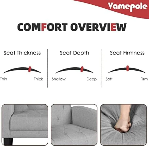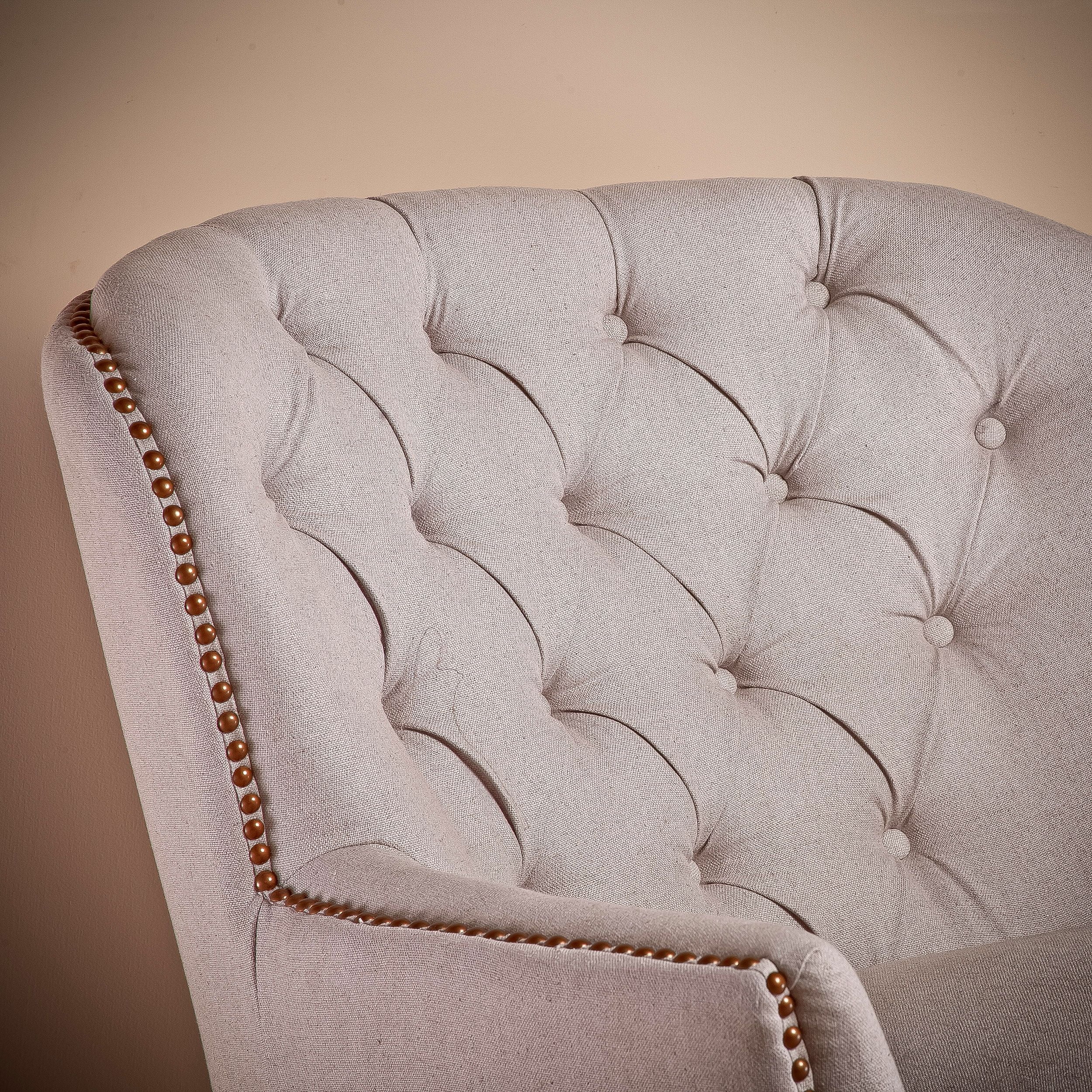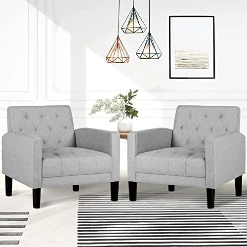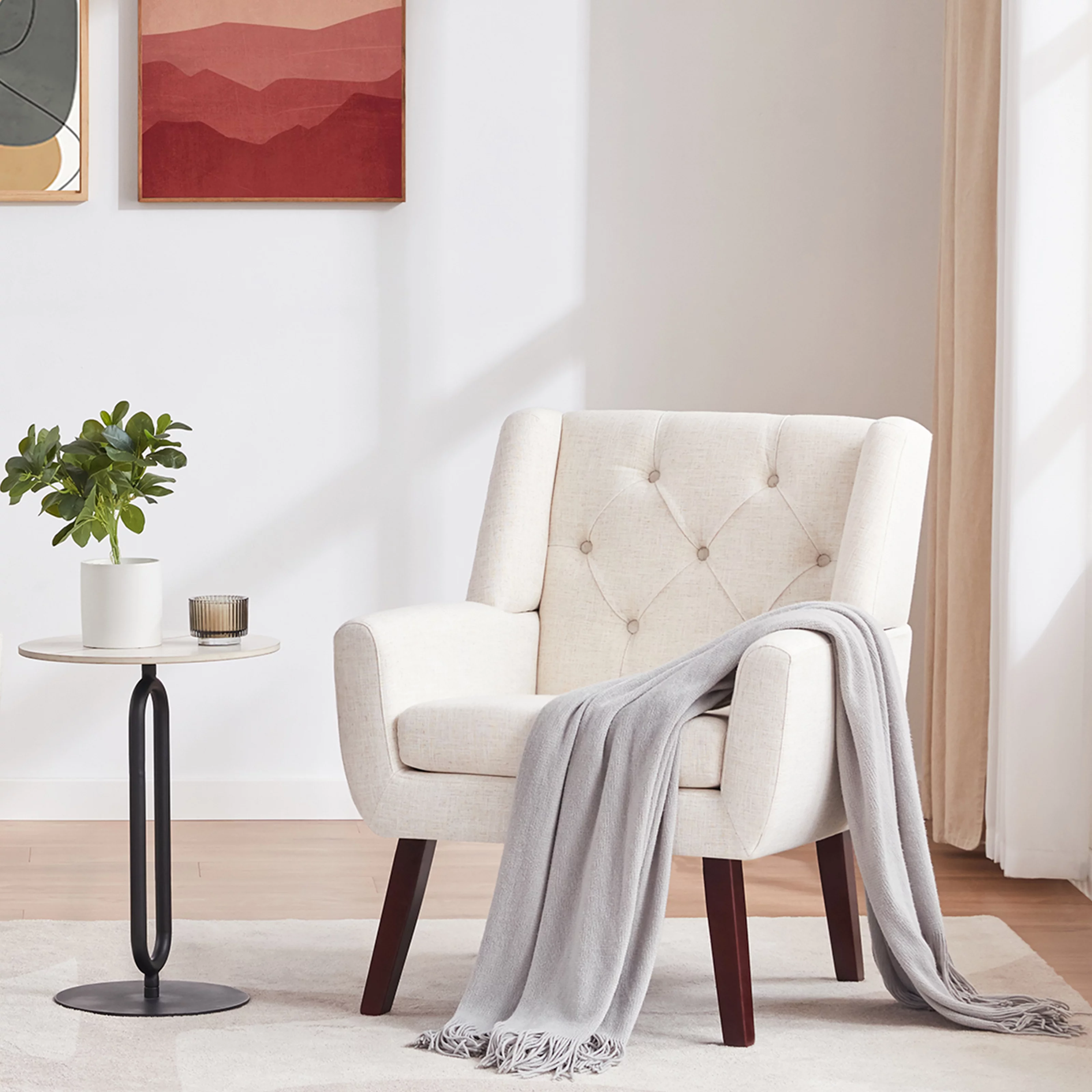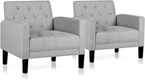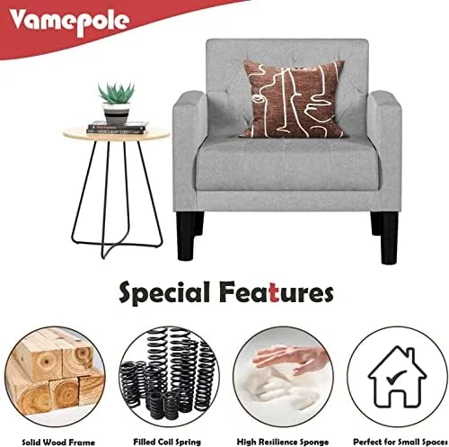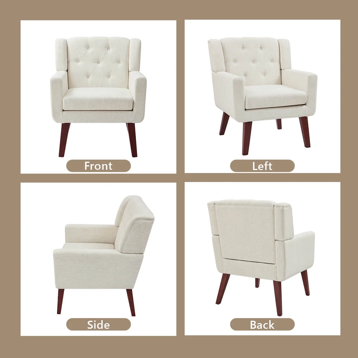 Furniliving Tufted Upholstered Living Room Chair Fabric Lounge Arm Chair, Beige