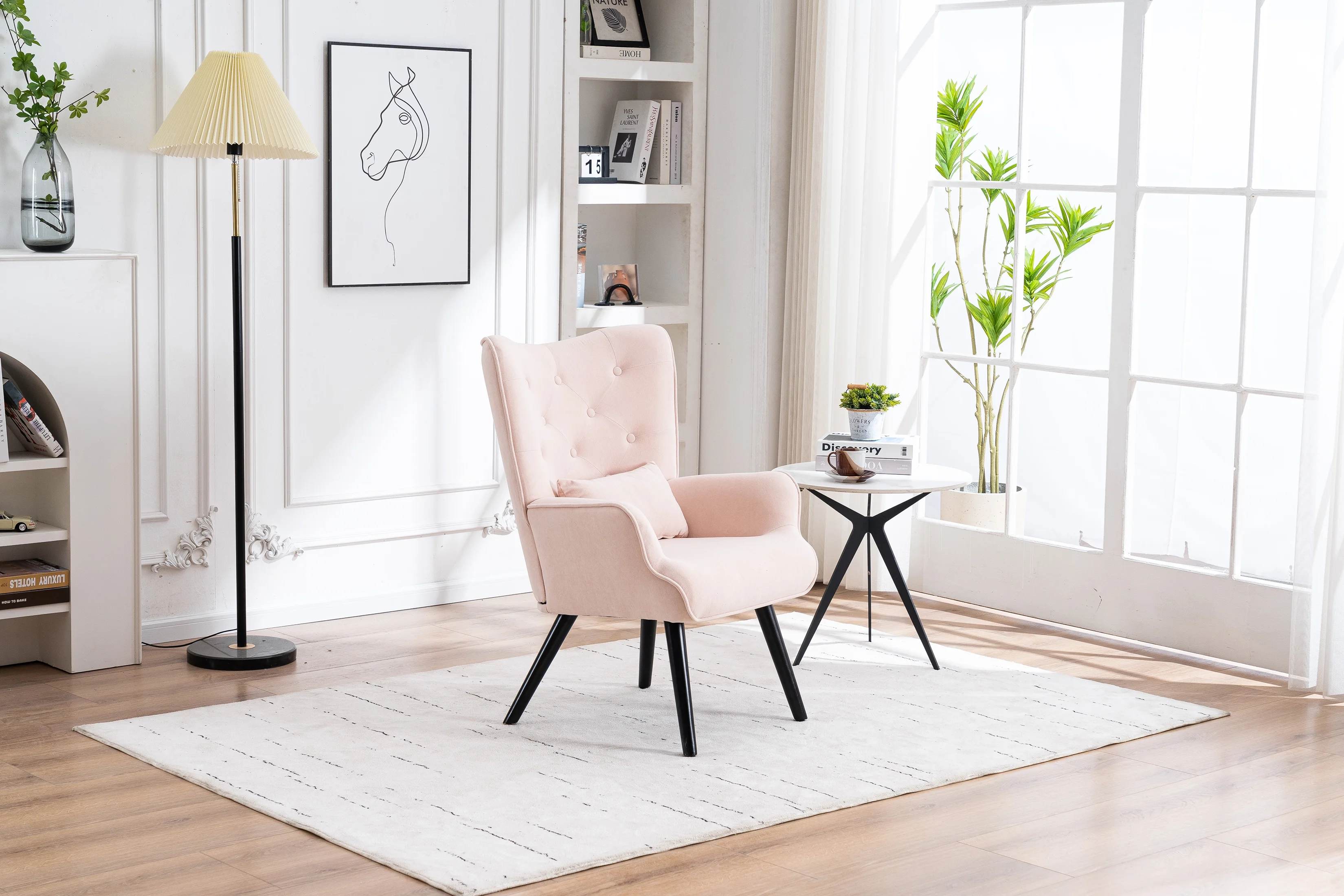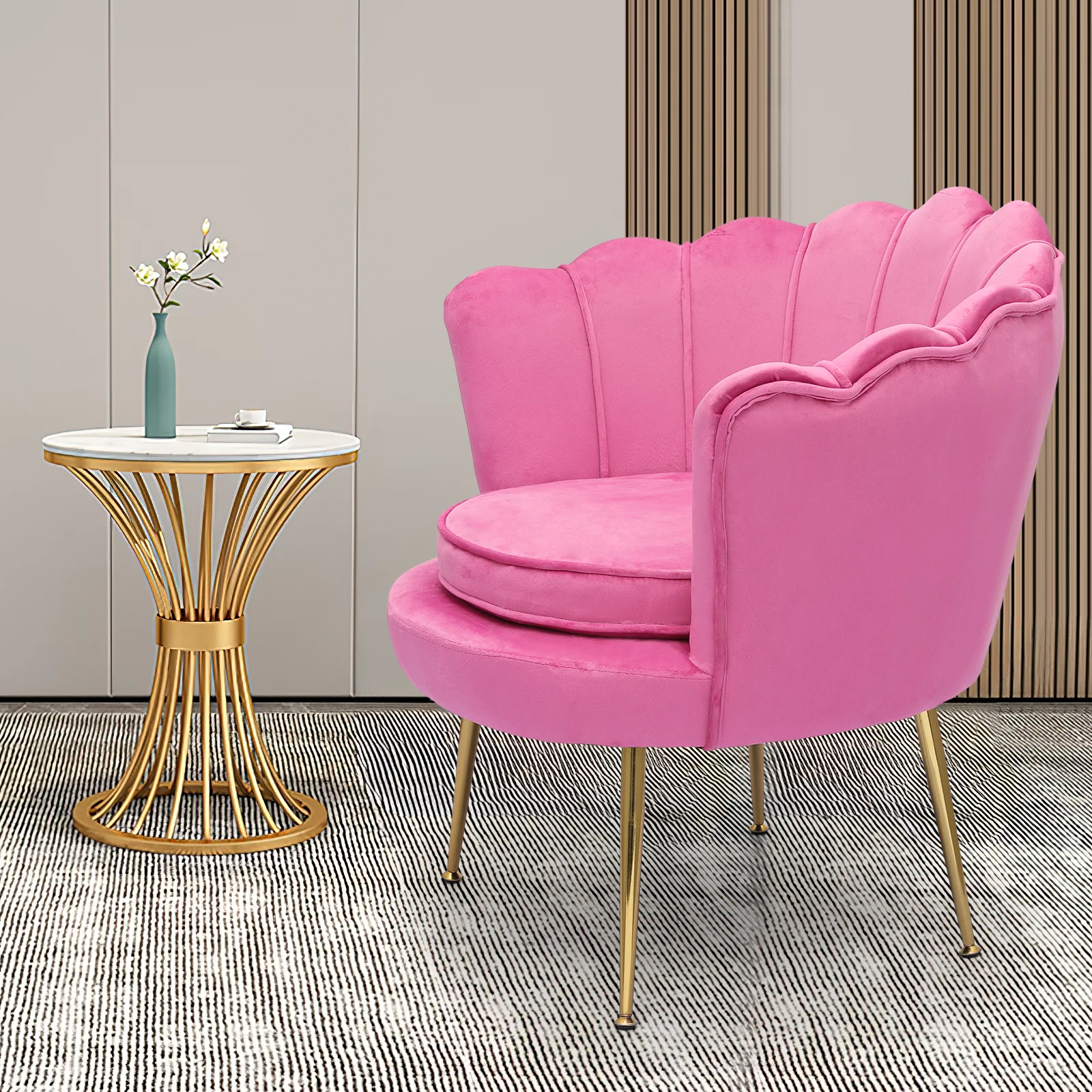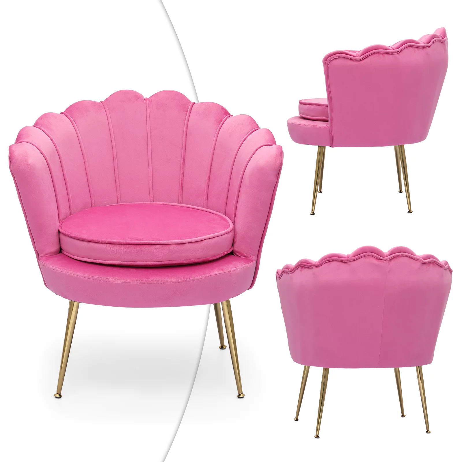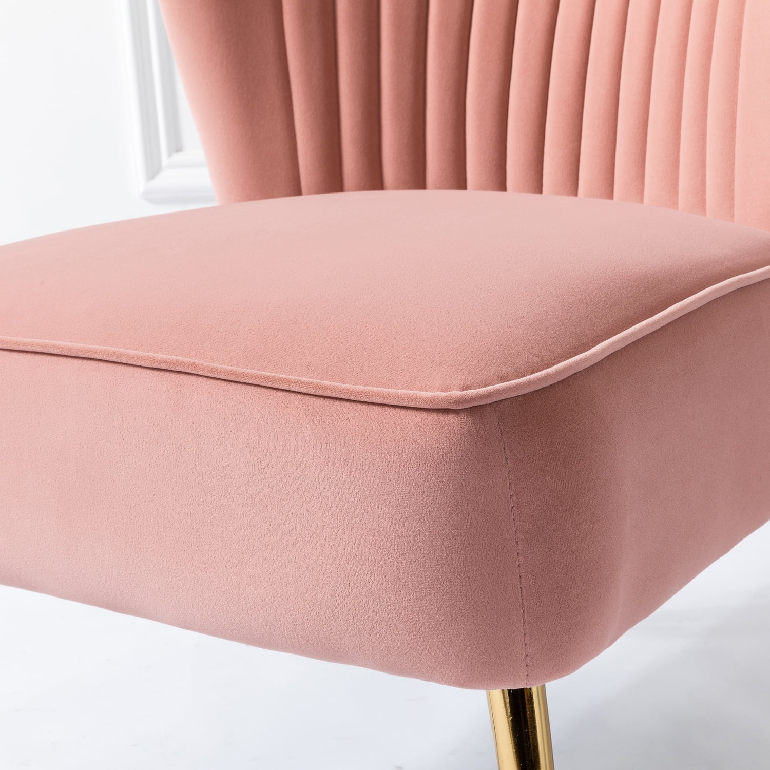HULALA HOME Eleanora Morden Scalloped Velvet Arm Chair with Tufted Back by PINK
