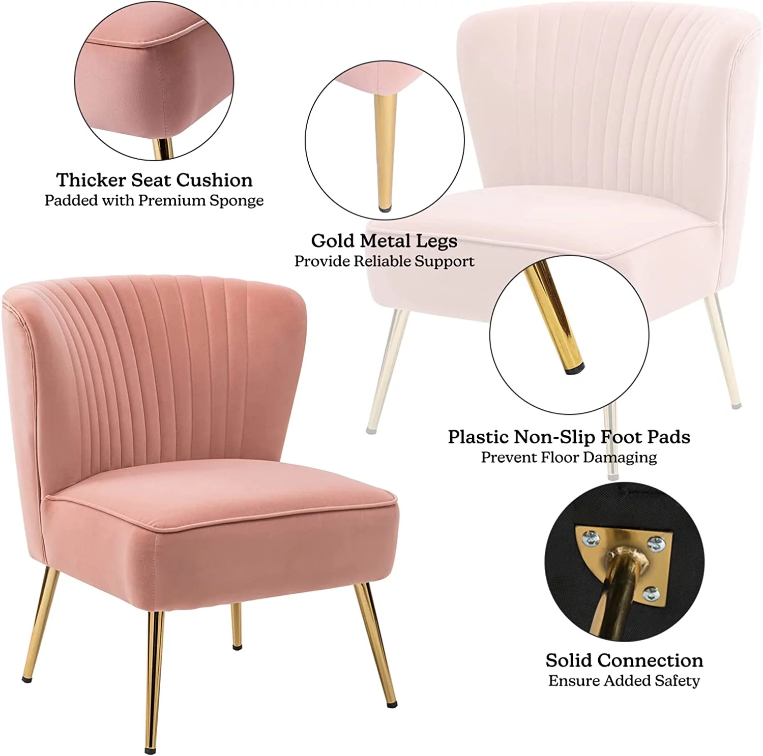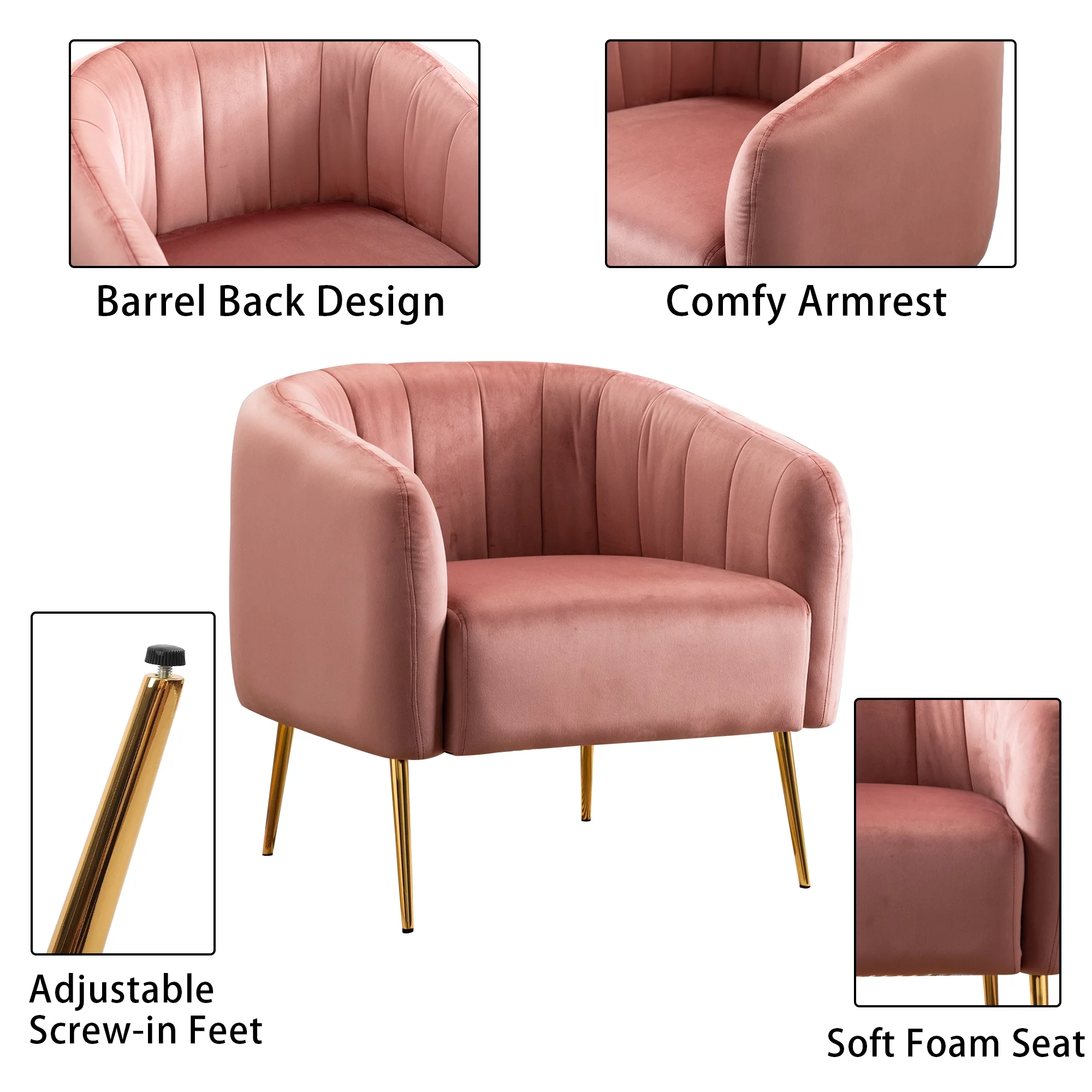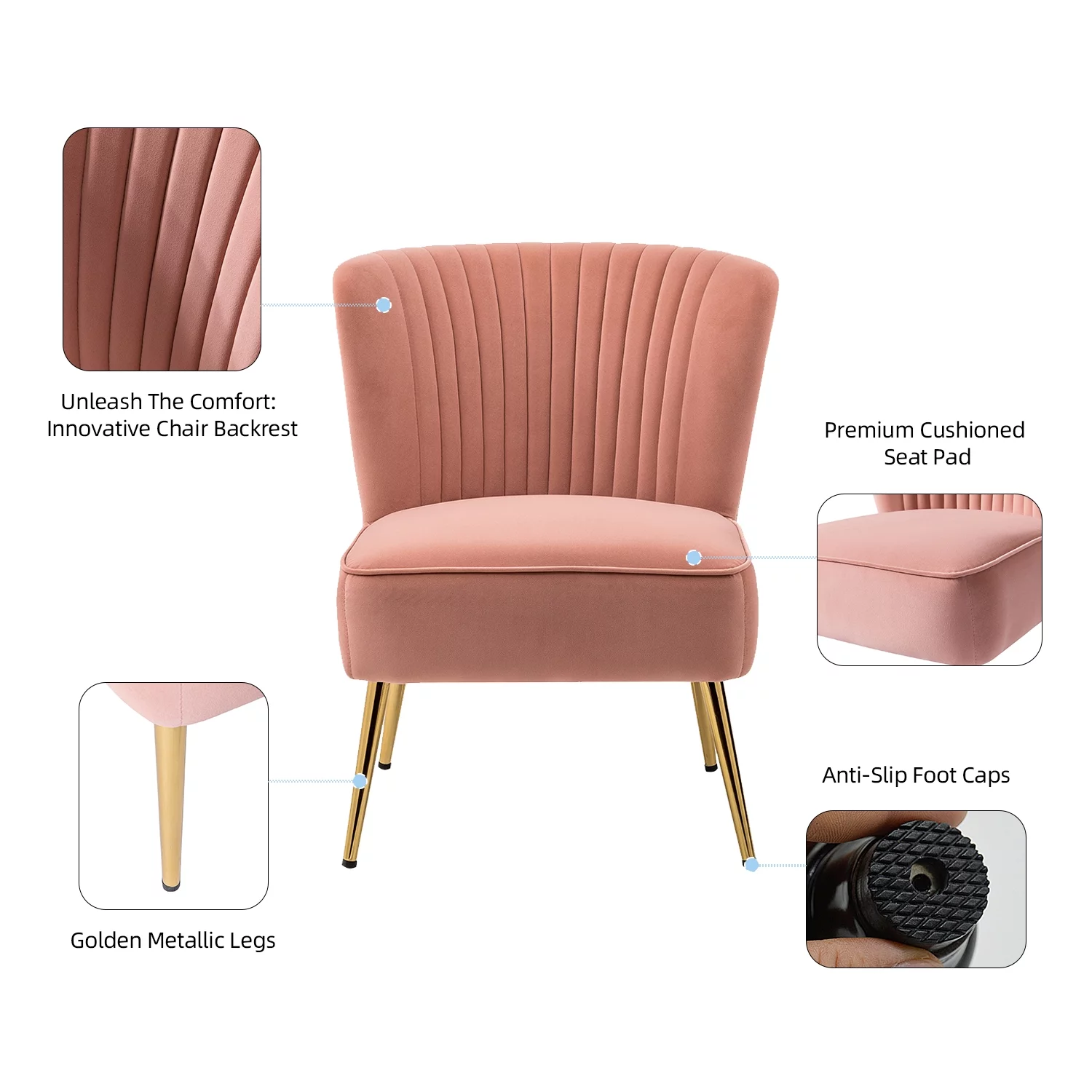 HULALA HOME Eleanora Morden Scalloped Velvet Arm Chair with Tufted Back by PINK