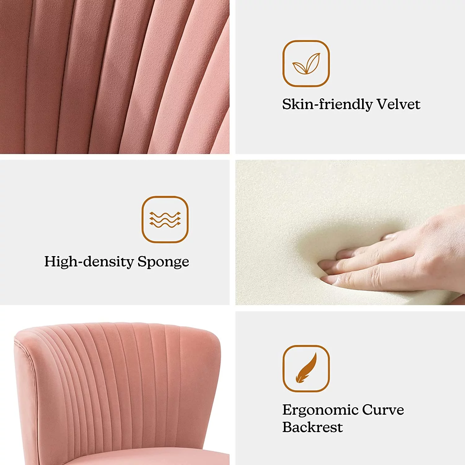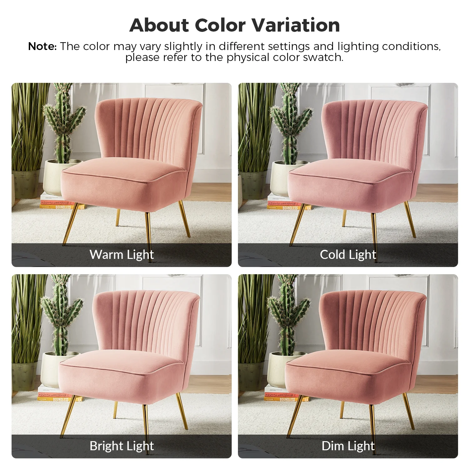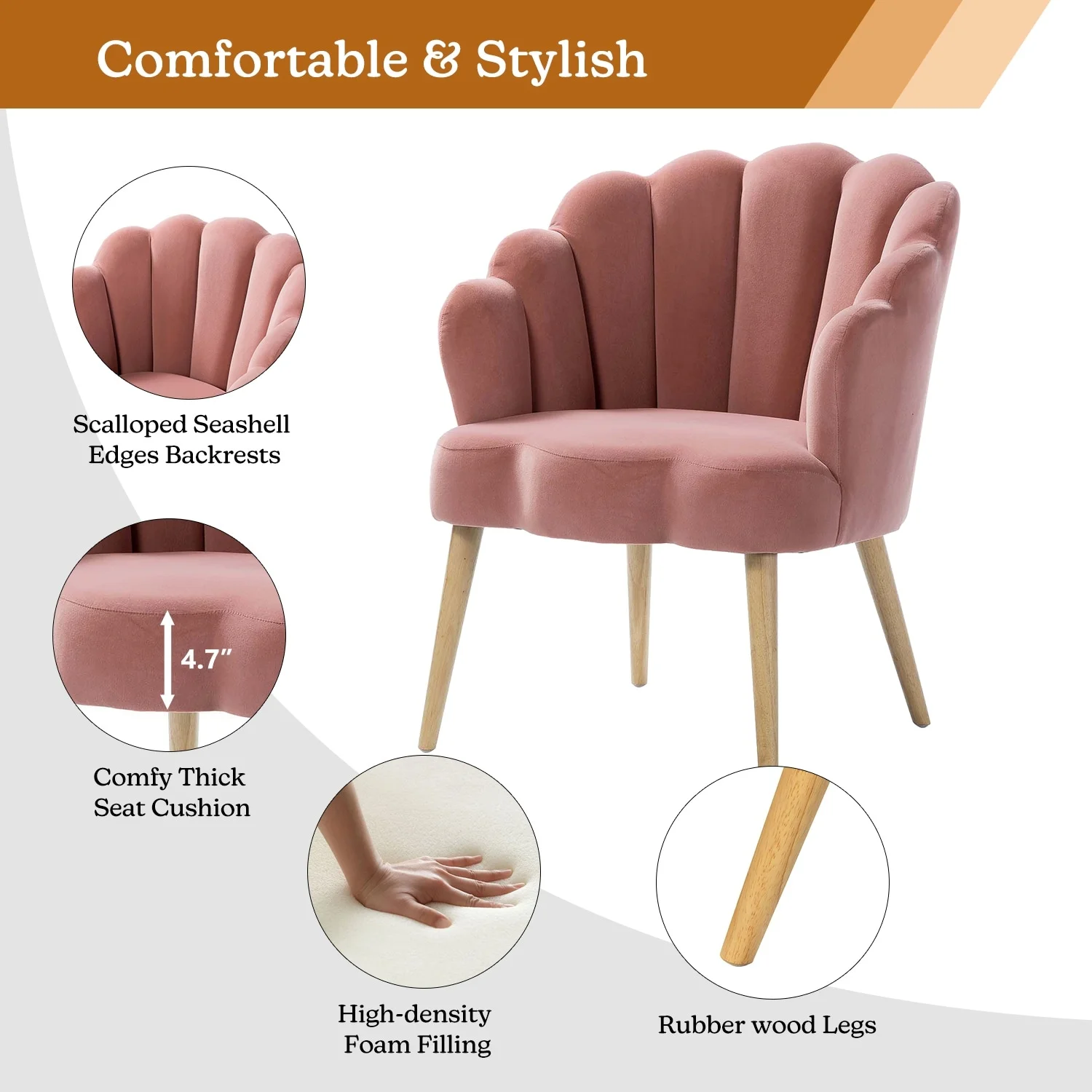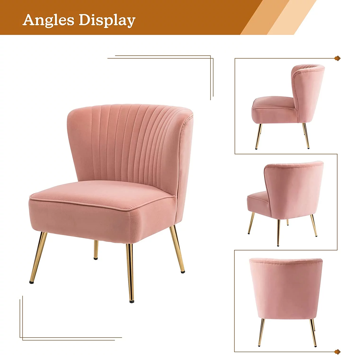 HULALA HOME Eleanora Morden Scalloped Velvet Arm Chair with Tufted Back by PINK