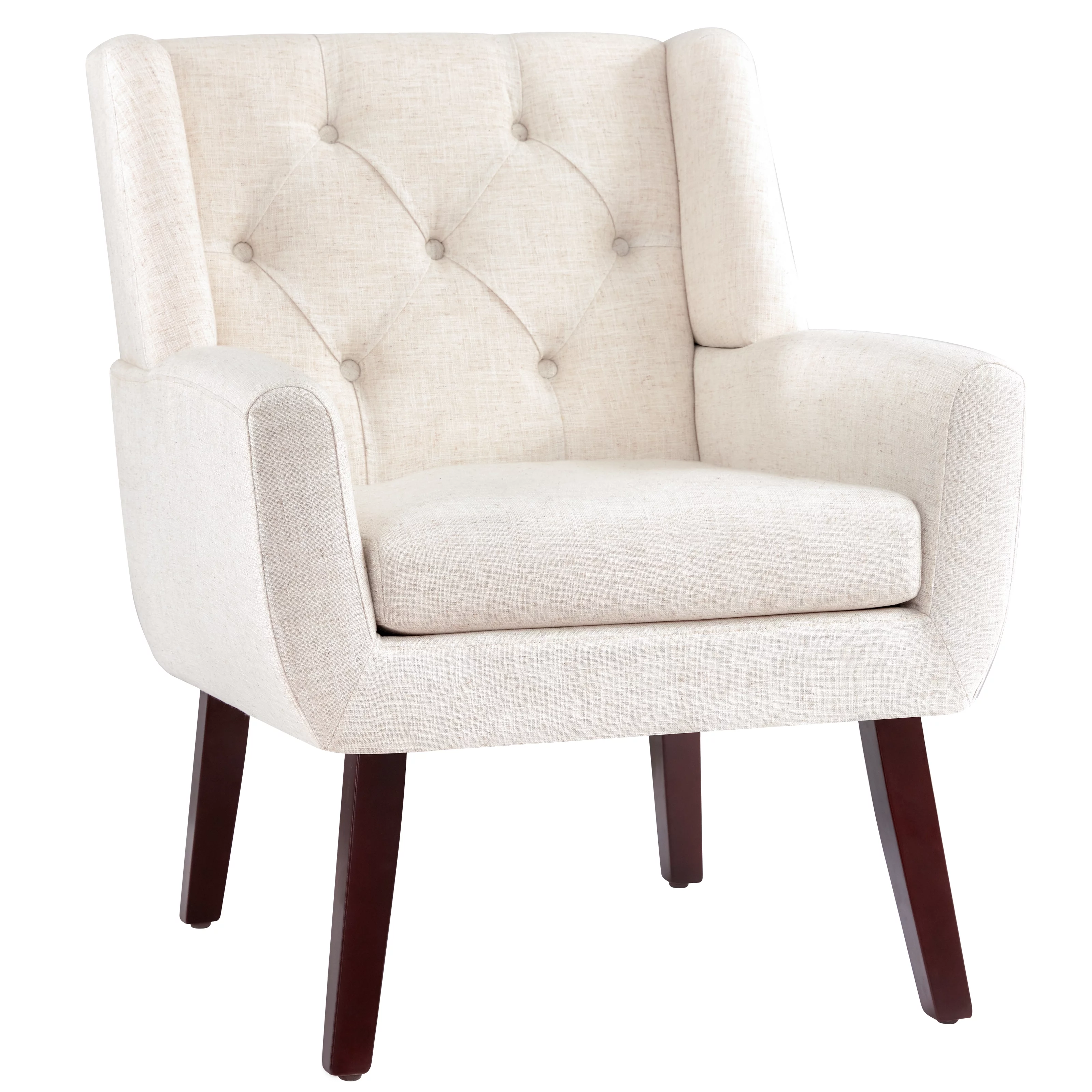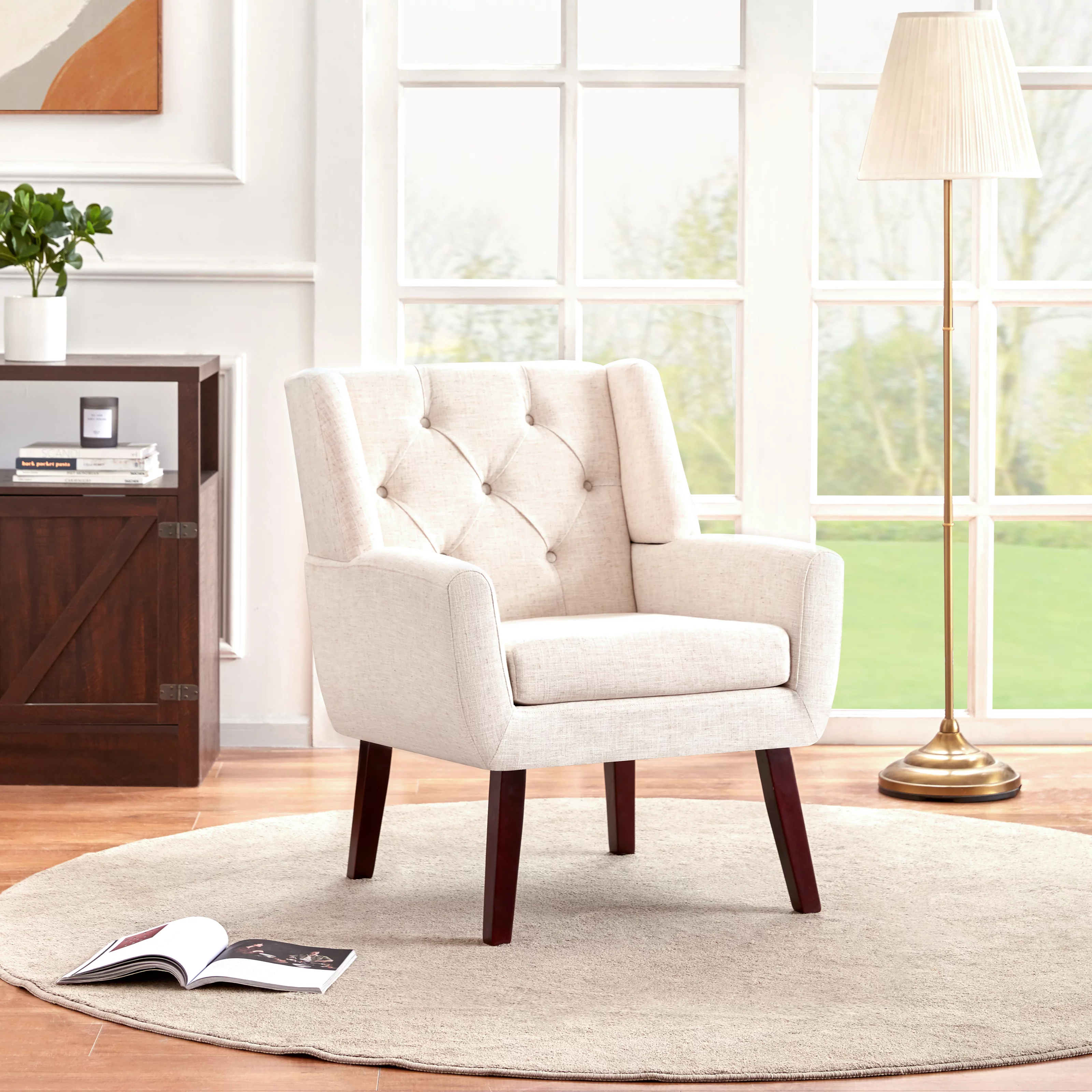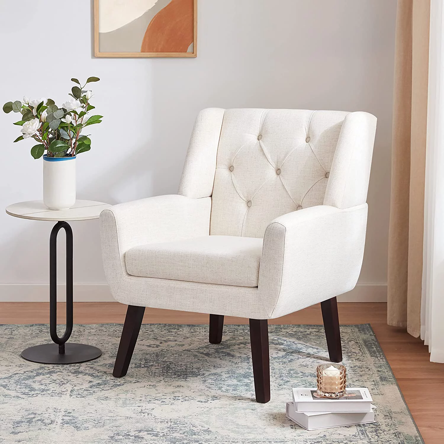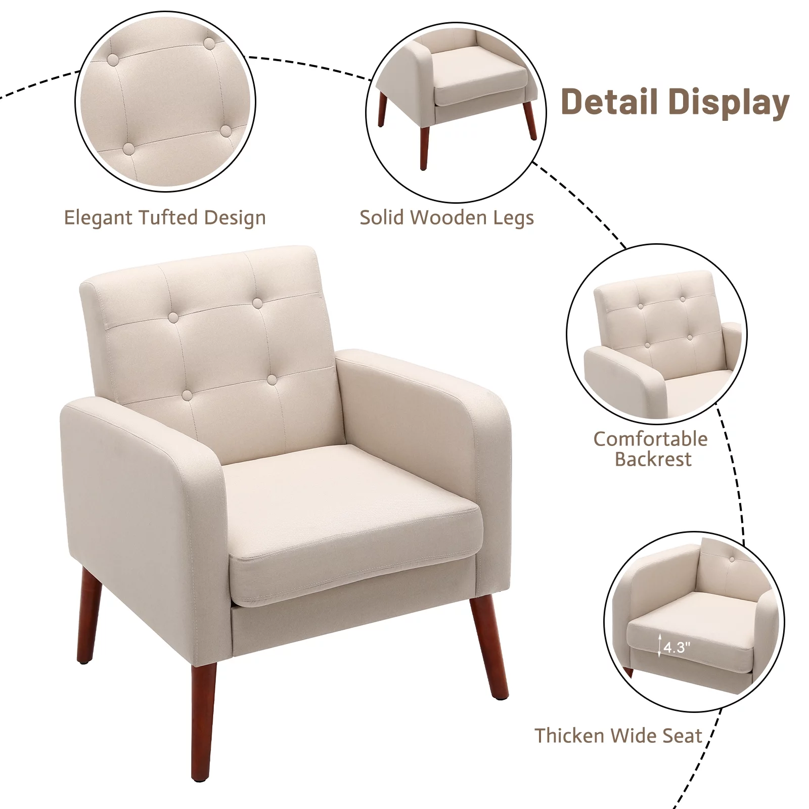 HUIMO Accent Chair, Upholstered Button Tufted Armchair, Mid-Century Modern Reading Comfy Arm Chair(Beige)