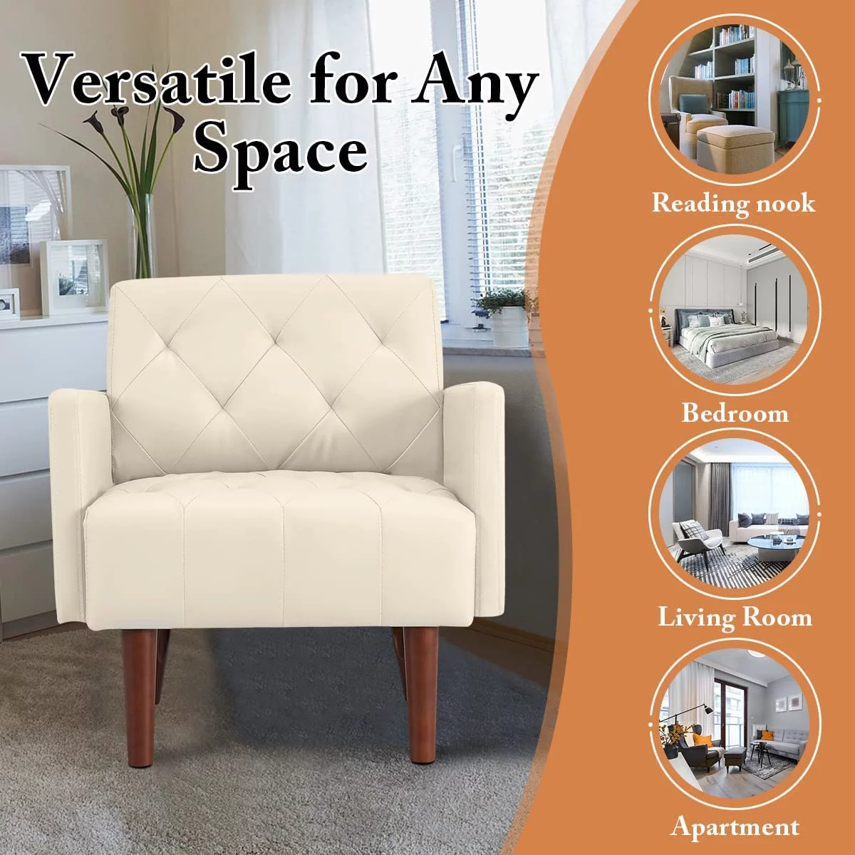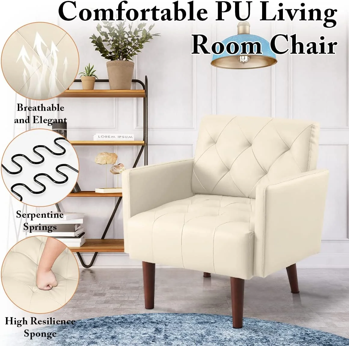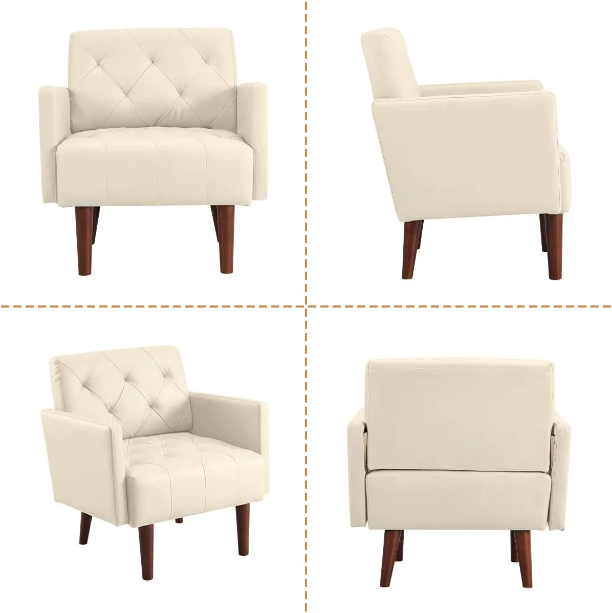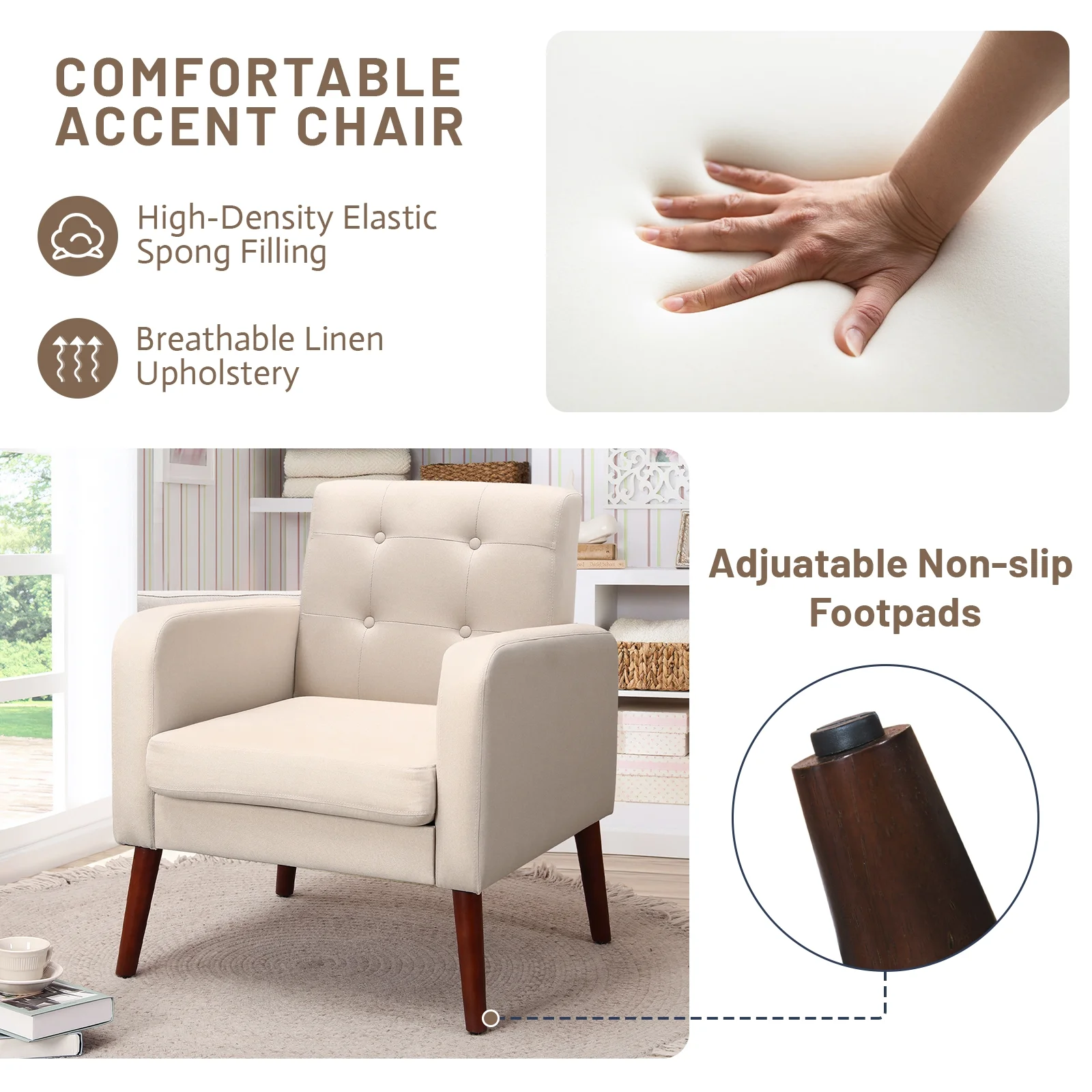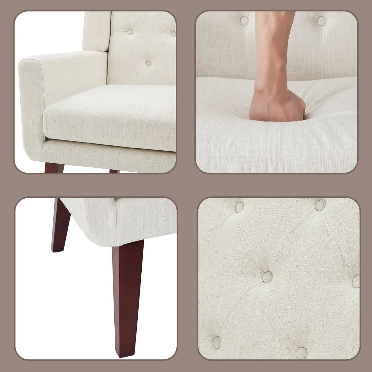 HUIMO Accent Chair, Upholstered Button Tufted Armchair, Mid-Century Modern Reading Comfy Arm Chair(Beige)