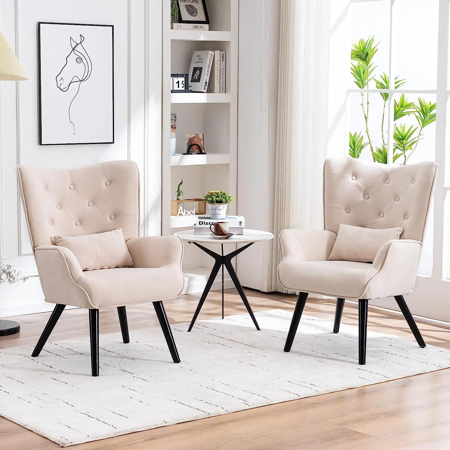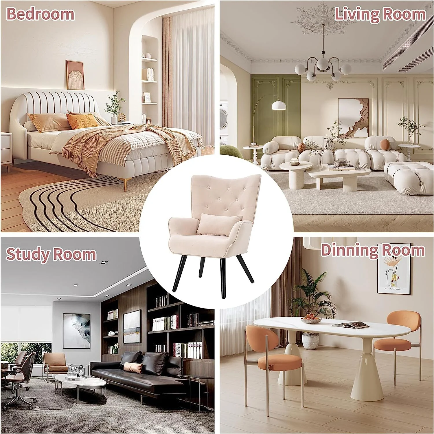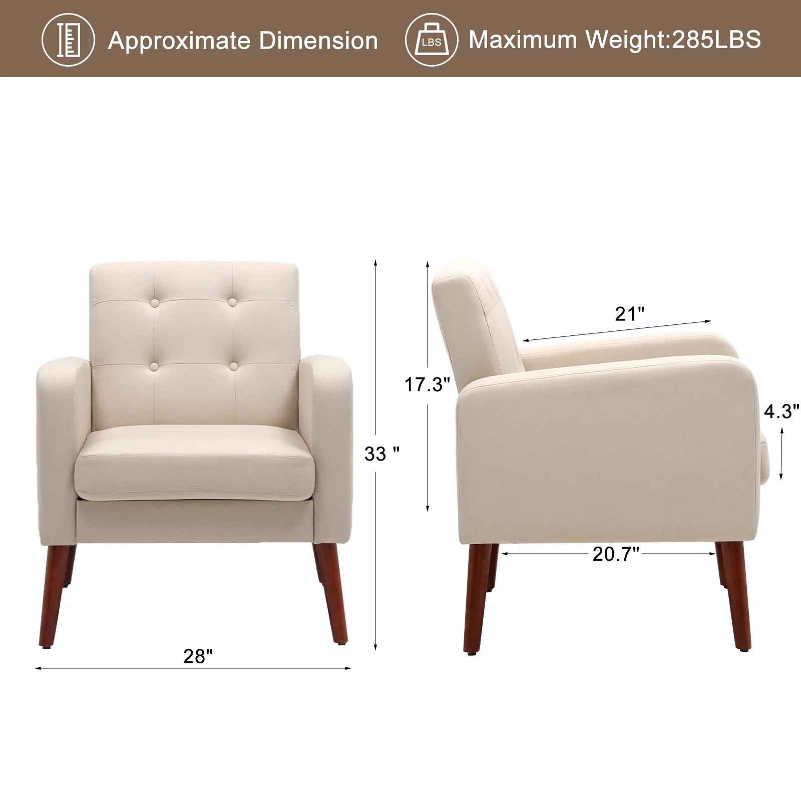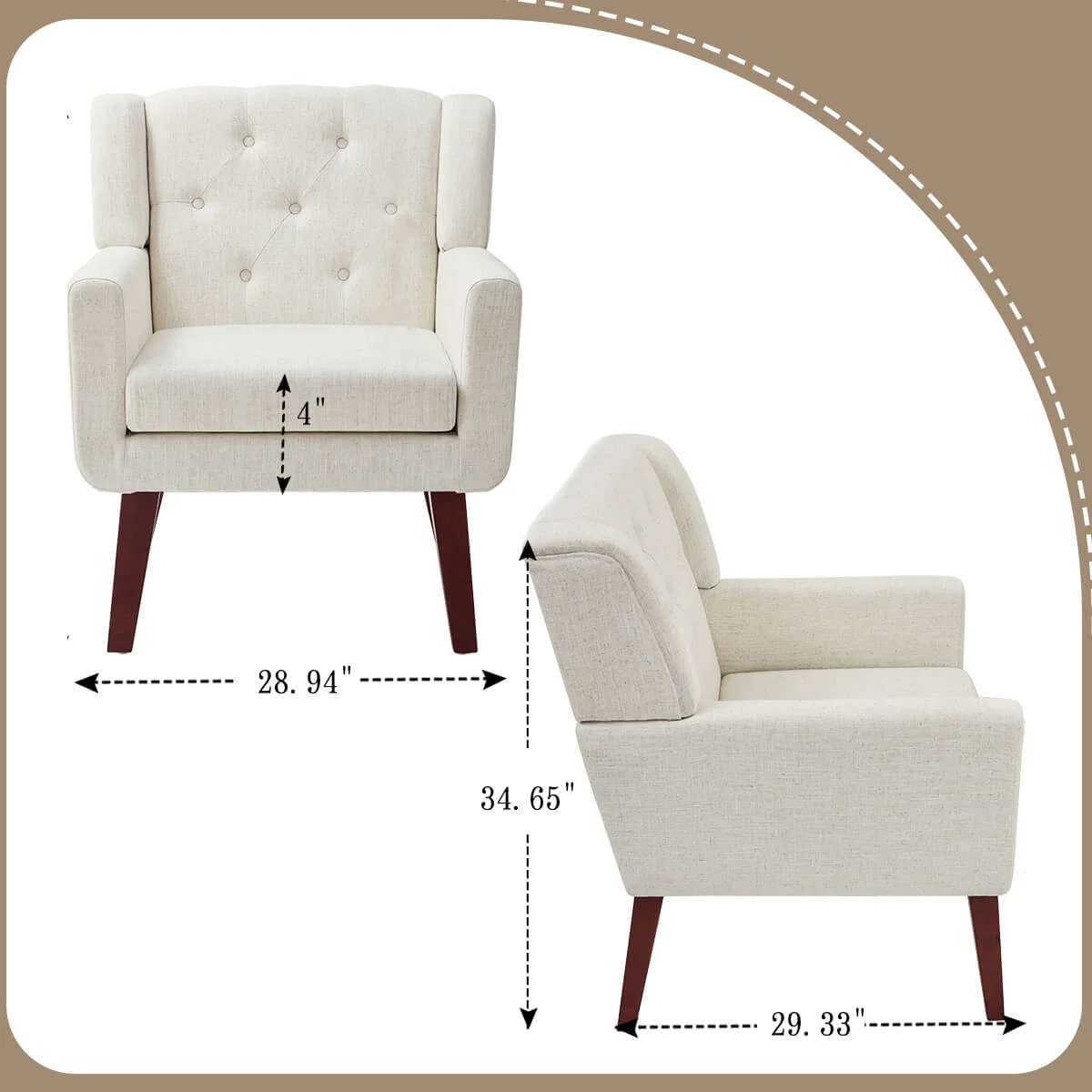 HUIMO Accent Chair, Upholstered Button Tufted Armchair, Mid-Century Modern Reading Comfy Arm Chair(Beige)