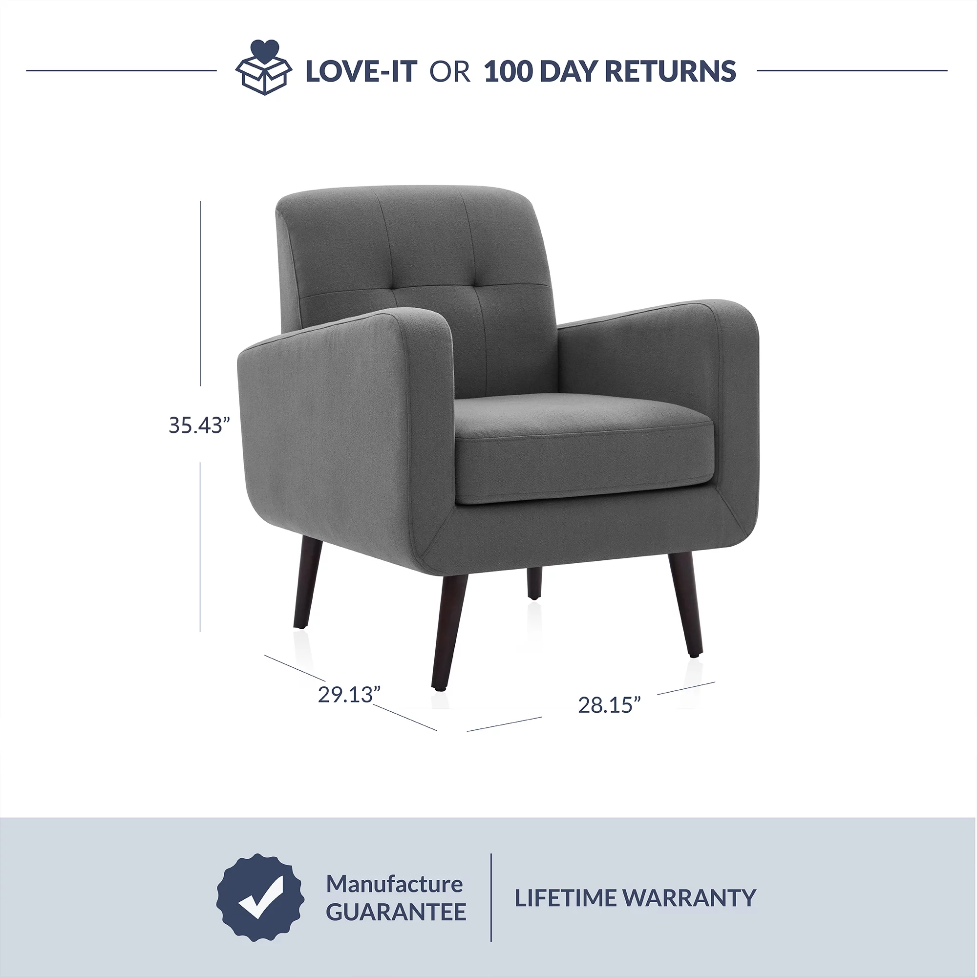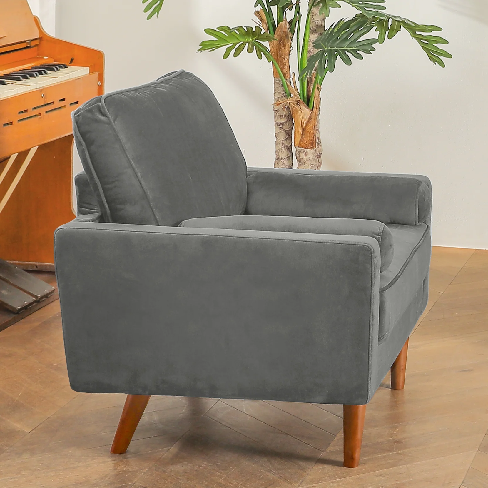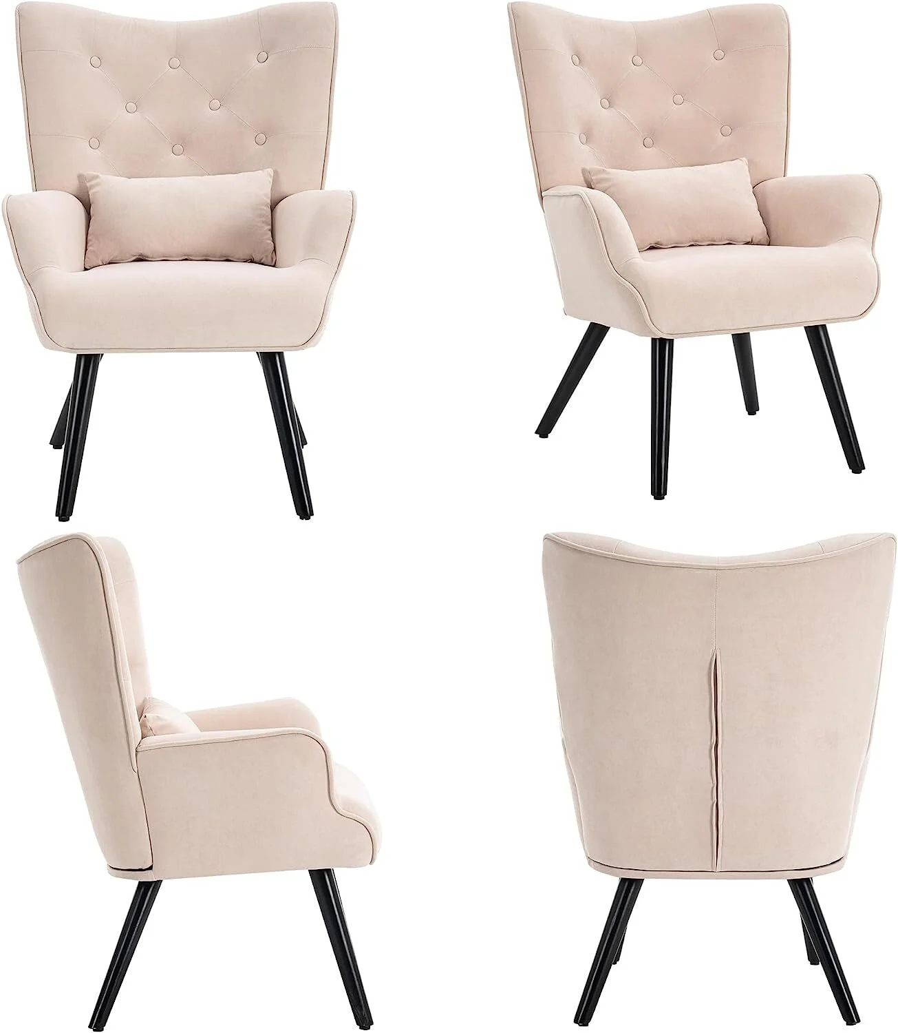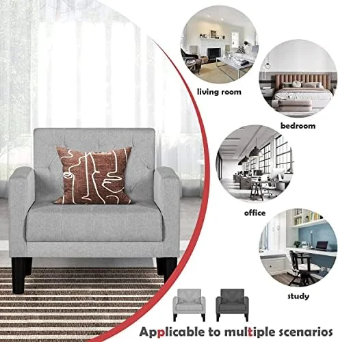 Zimtown Mid-Century Accent Arm Chair Modern Legs Tufted Lounge Chair for Living Room and Bedroom Black