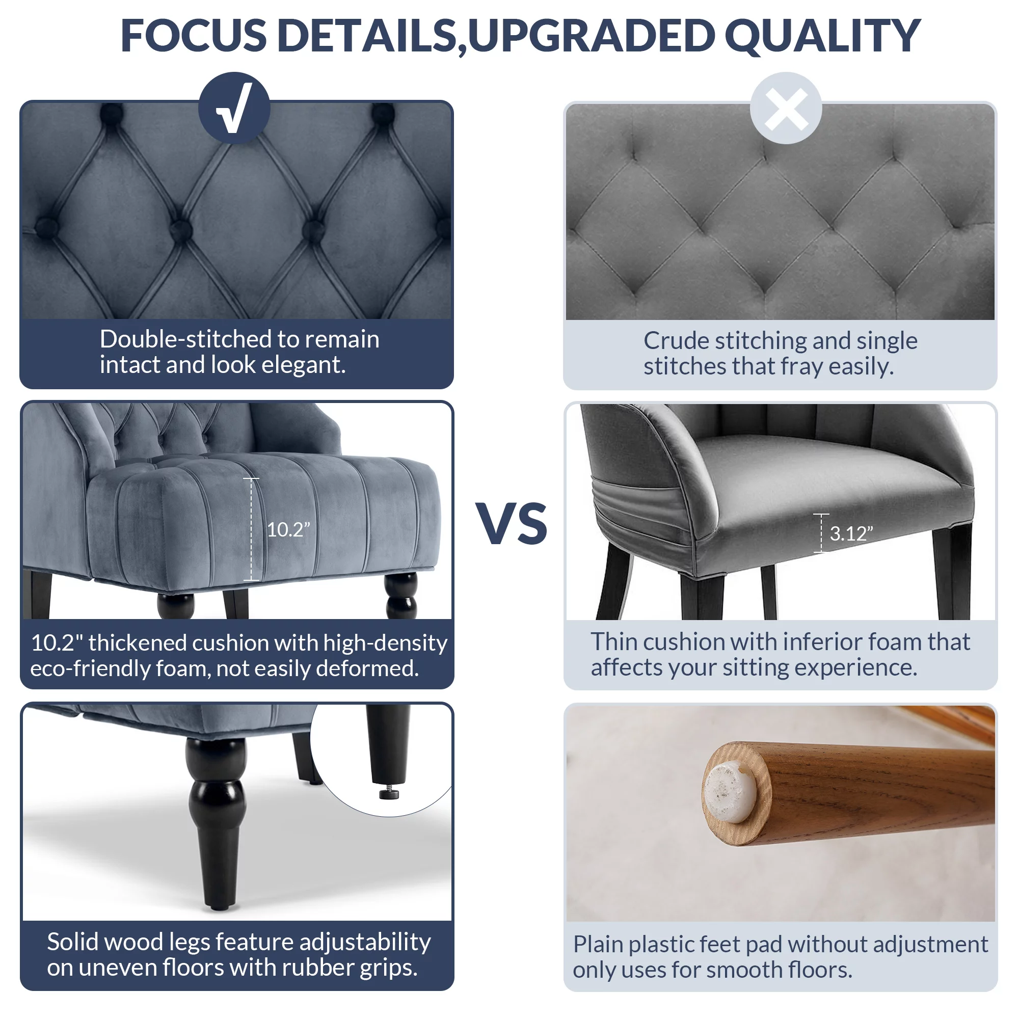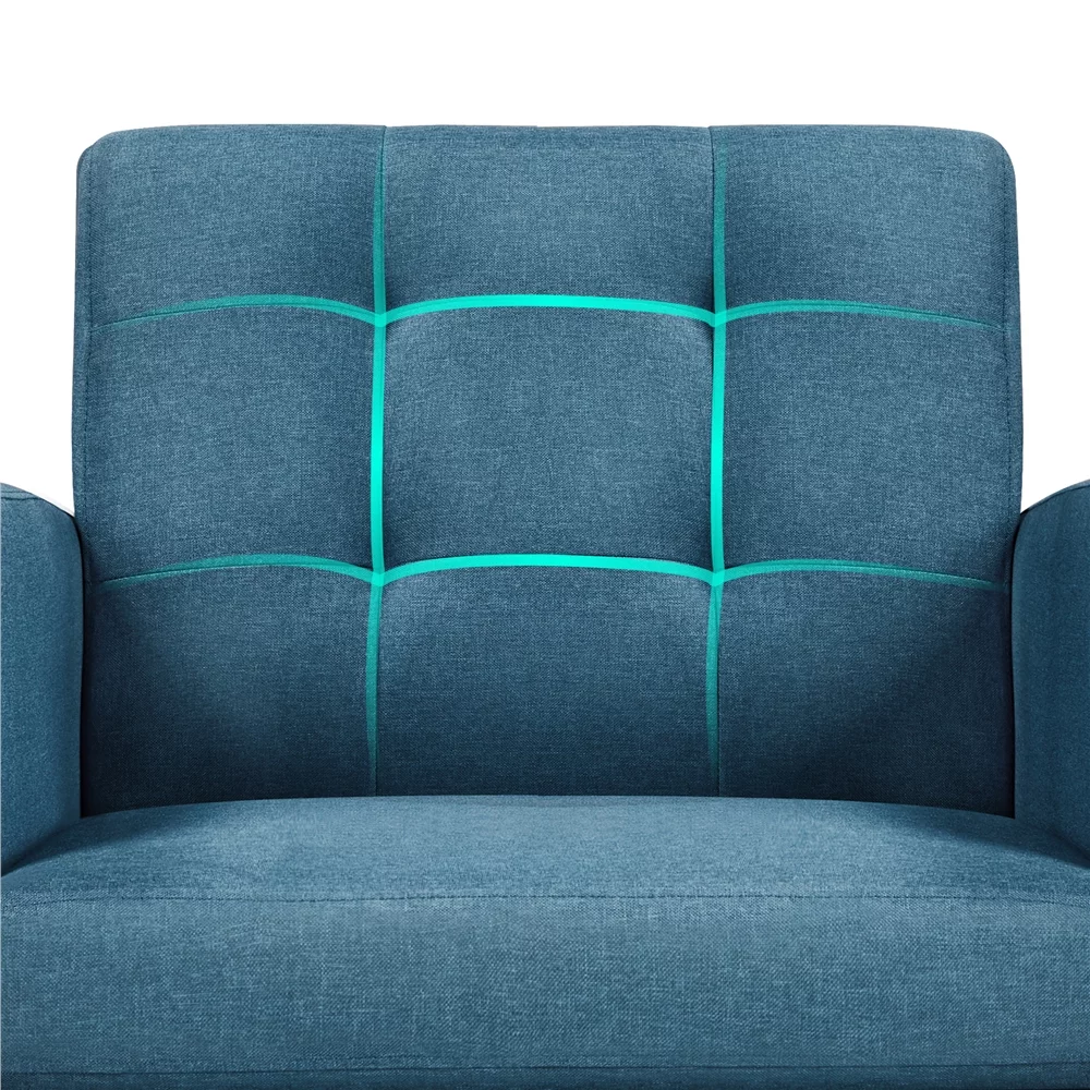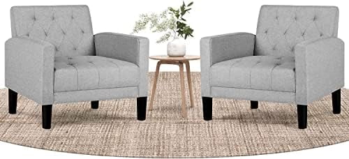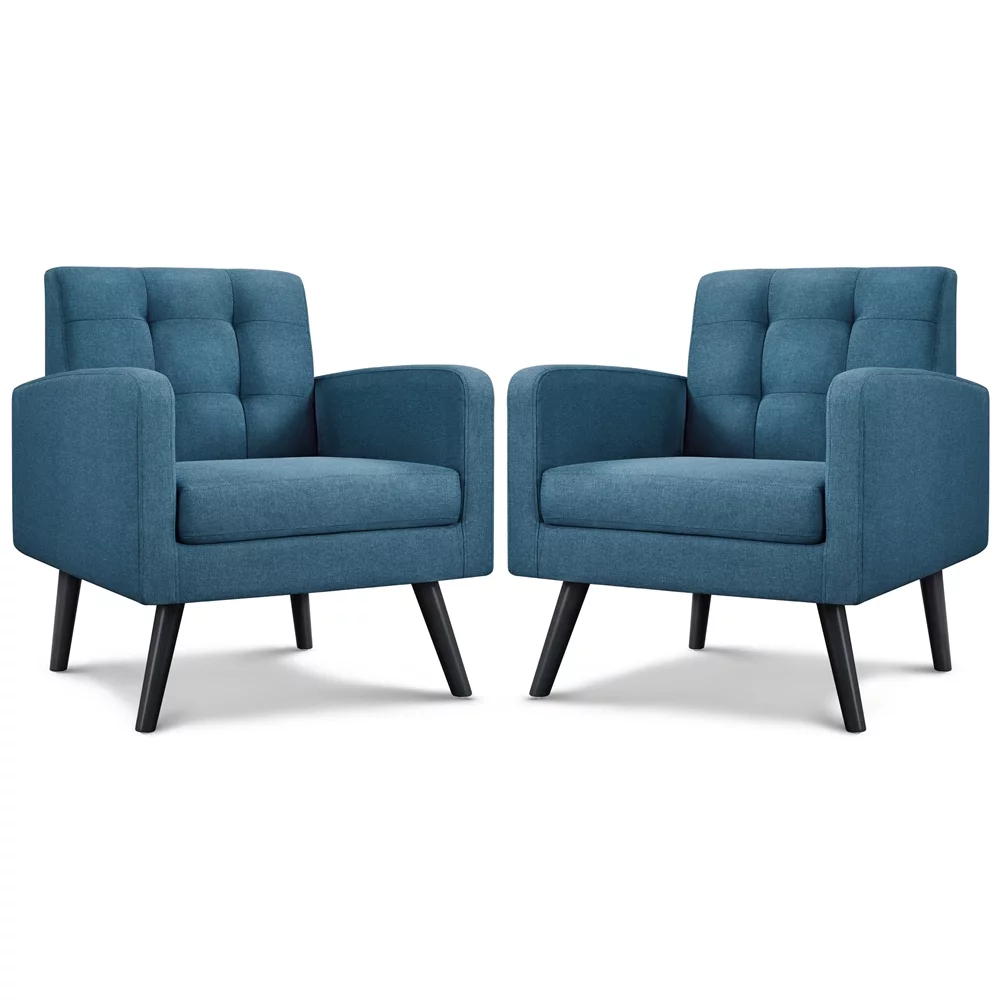 Yaheetech 2pcs Mid Century Fabric Arm Chair Tufted Accent Chair with Wooden Leg, Navy Blue