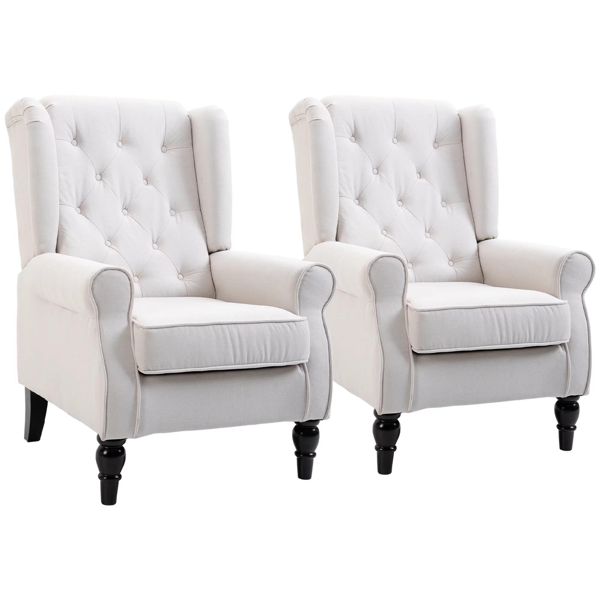 HOMCOM Button-Tufted Accent Chair with Wingback, Armrests, Set of 2, White