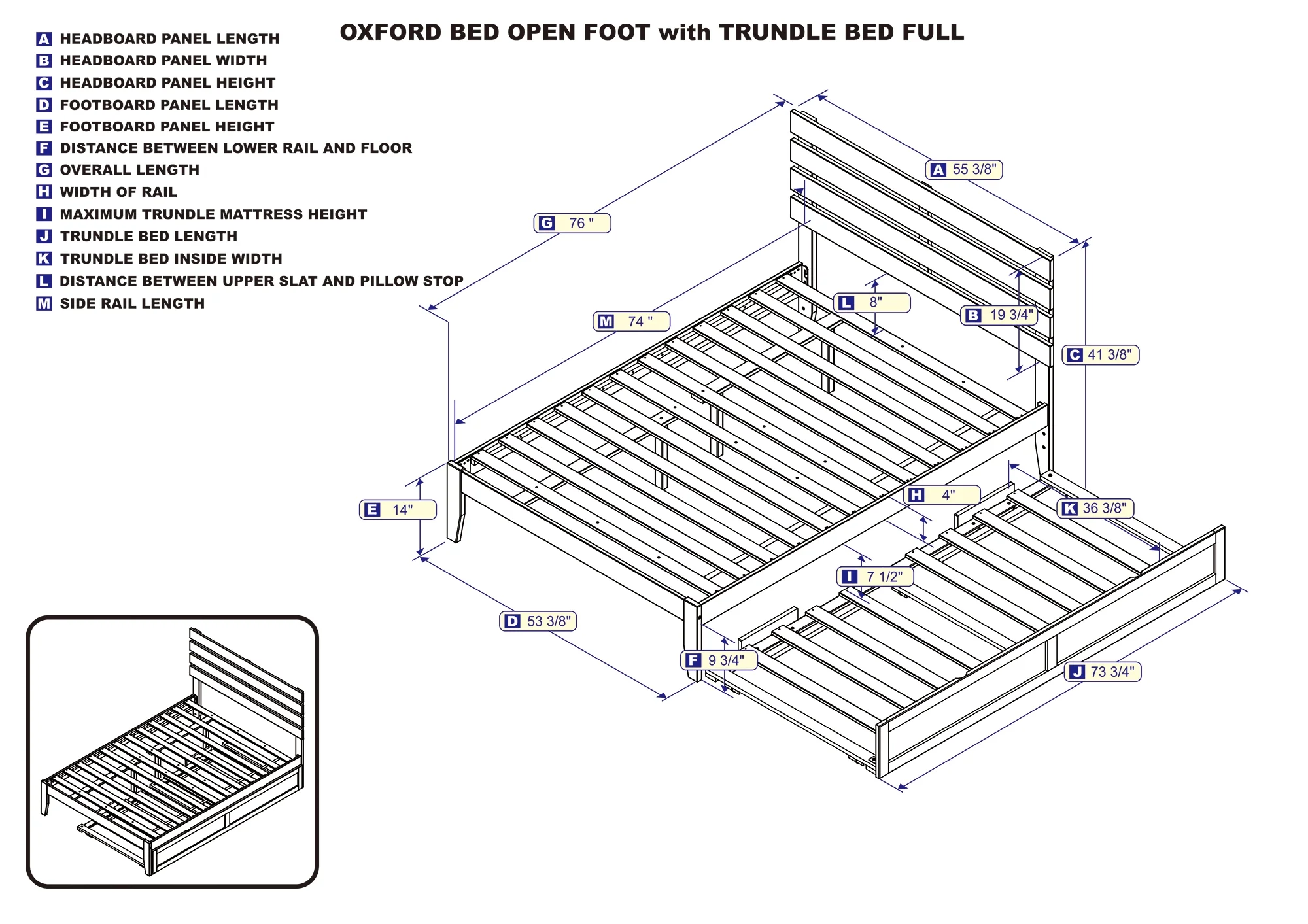 AFI Oxford 14" Full Wood Platform Bed Frame with Twin Trundle, Espresso