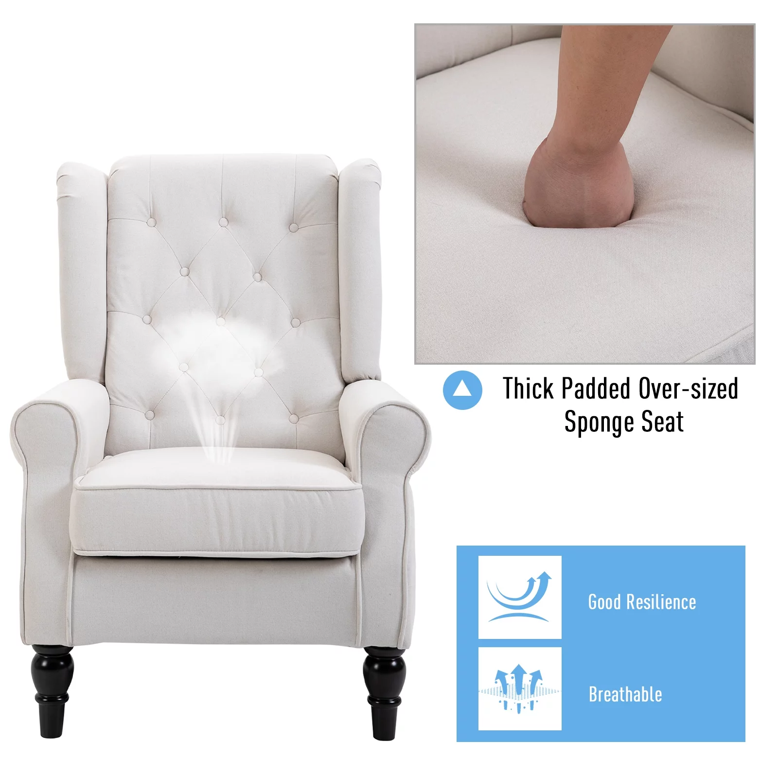 HOMCOM Button-Tufted Accent Chair with High Wingback, Rounded Cushioned Armrests and Thick Padded Seat, Cream White