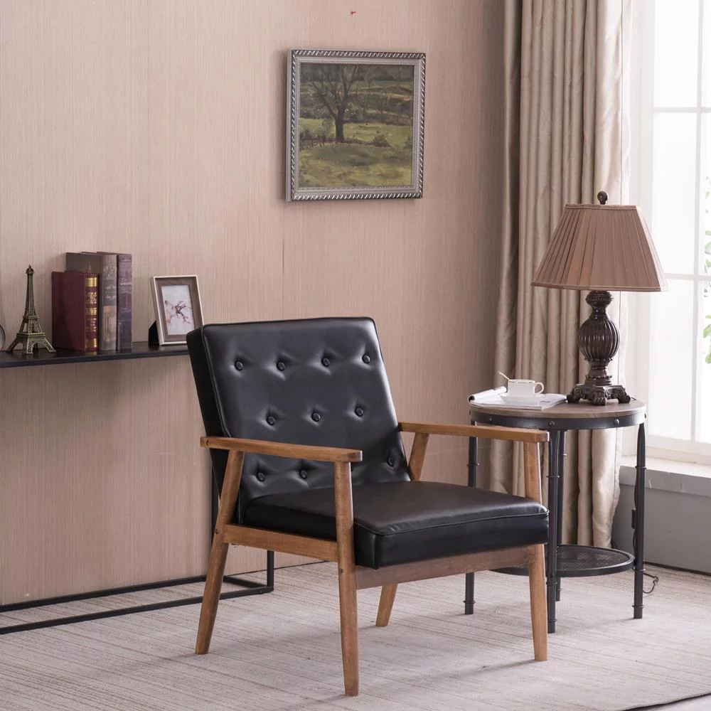 Ktaxon Mid-Century Accent Arm Chair Modern Legs Tufted Lounge Chair for Living Room and Bedroom Black