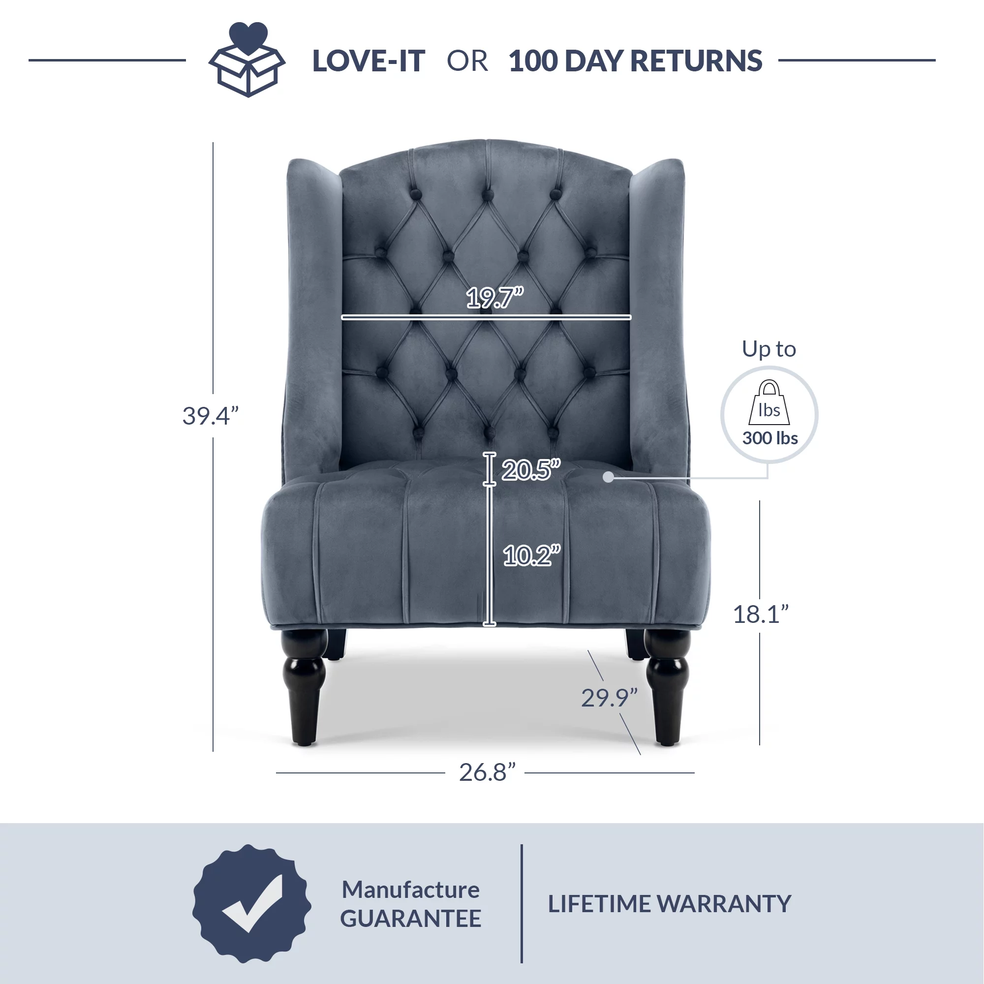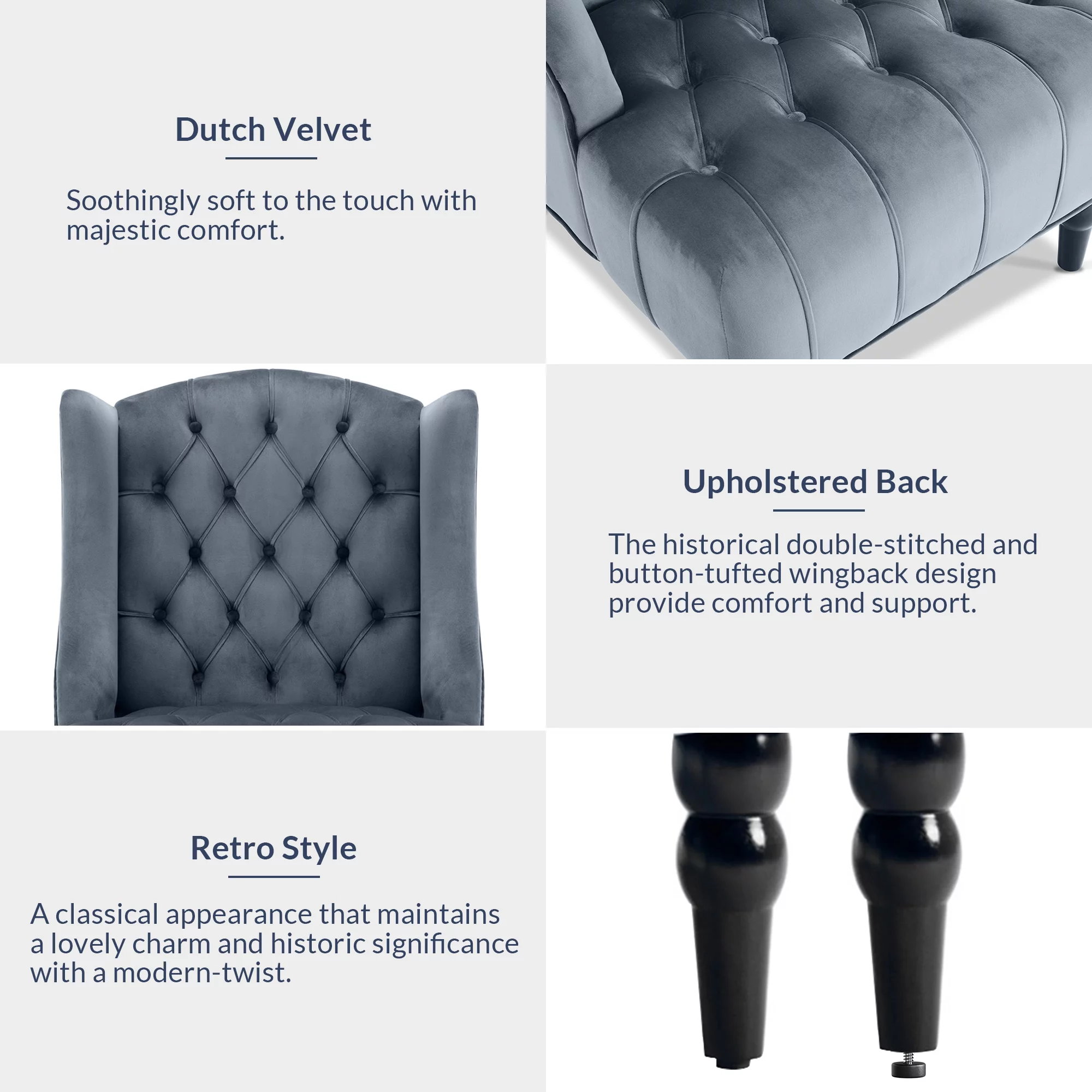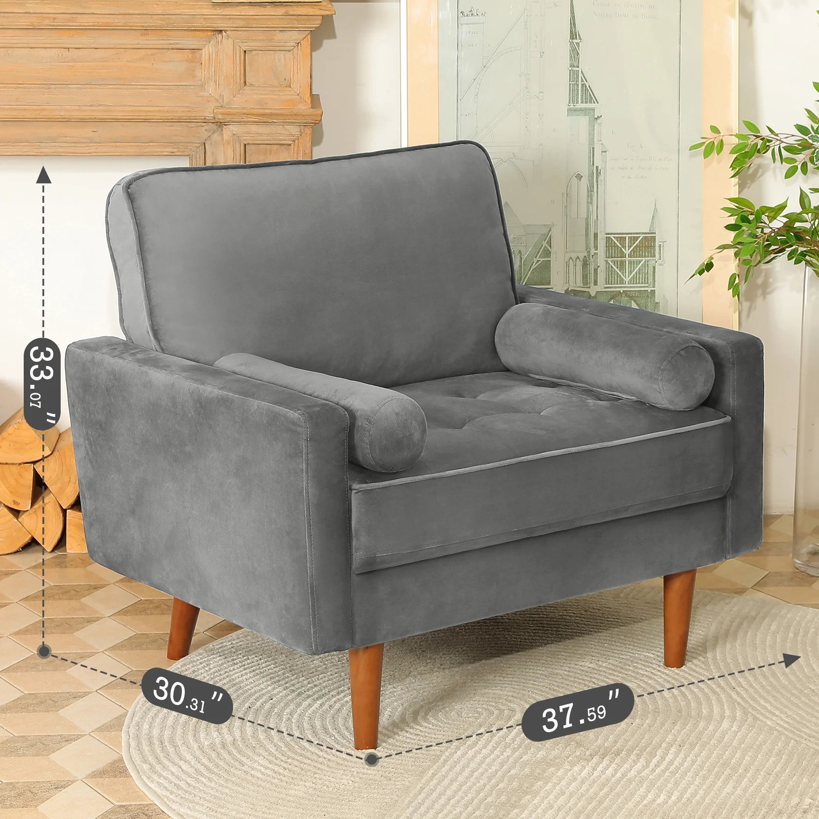Belleze Modern Wingback Tufted NailHead Accent Chair Tall Back Velvet Wing Chair, Gray