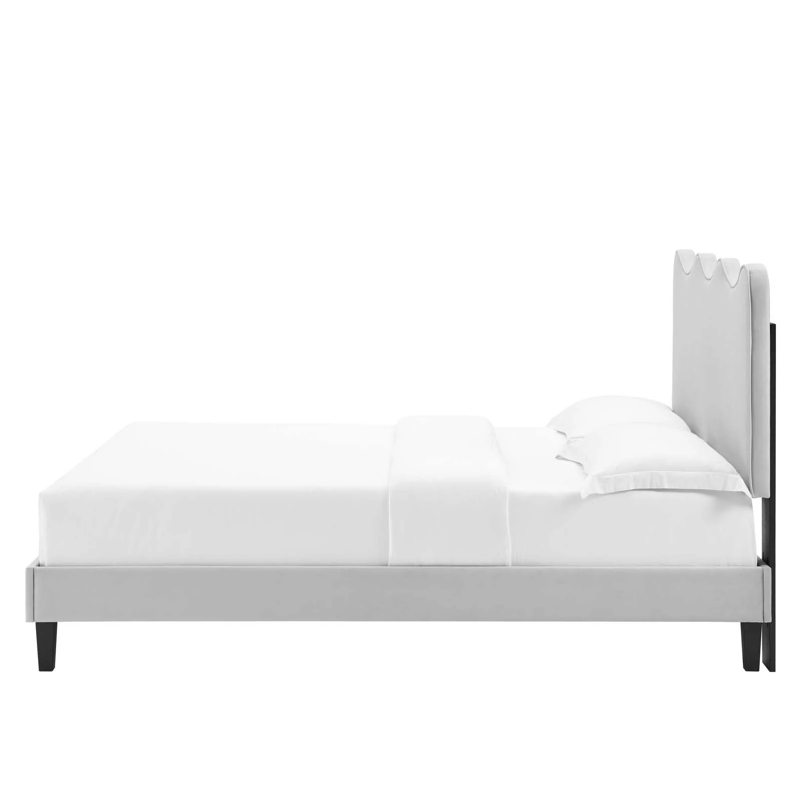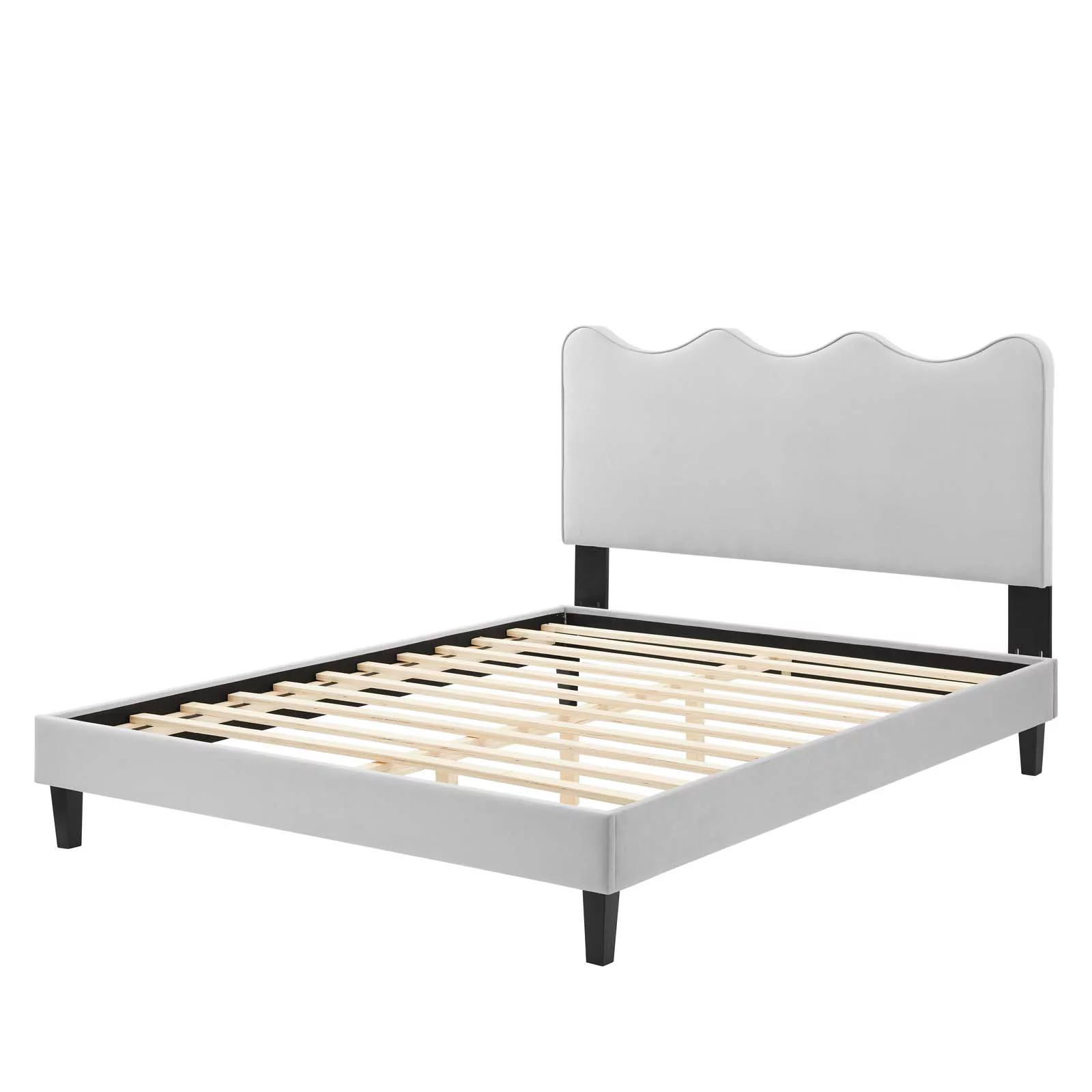 Platform Bed Frame, Twin Size, Grey Gray, Velvet, Modern Contemporary, Bedroom Master Guest Suite Room