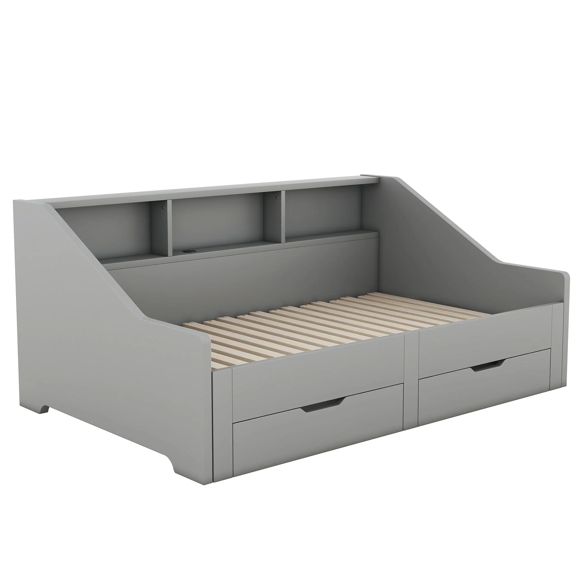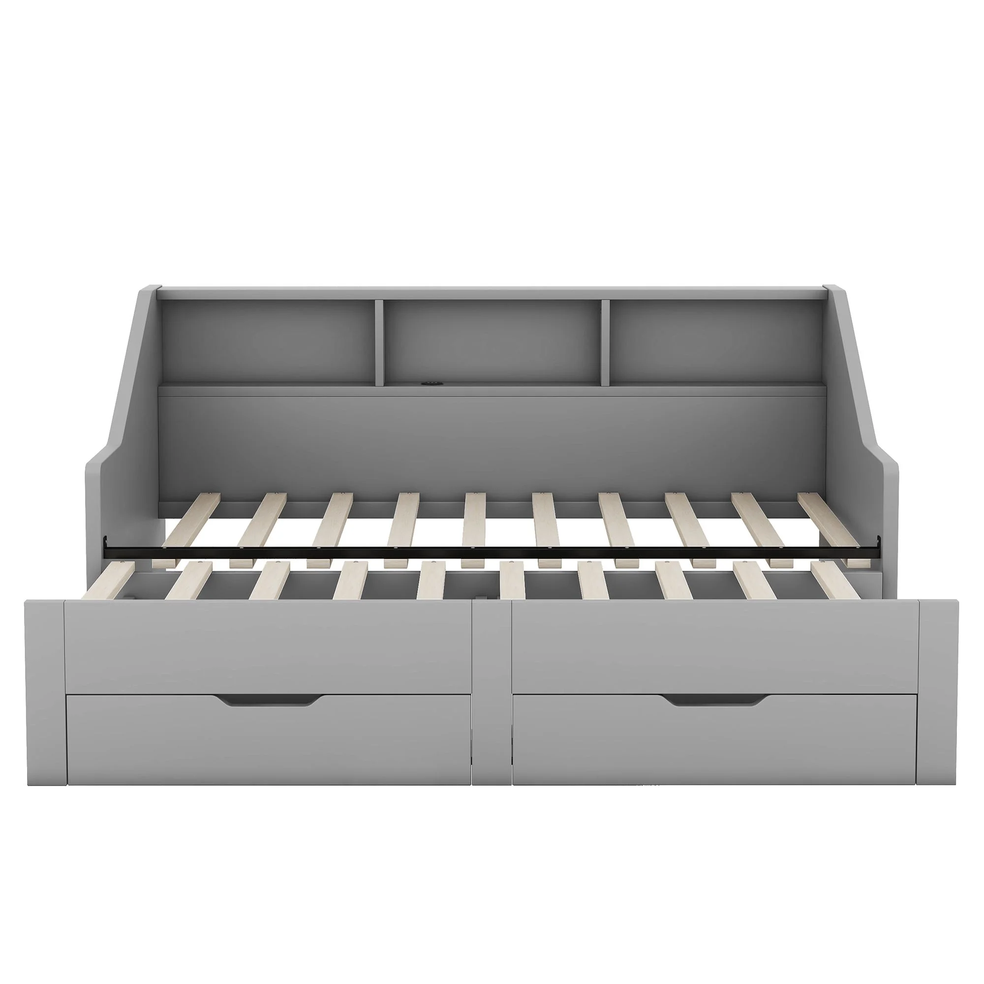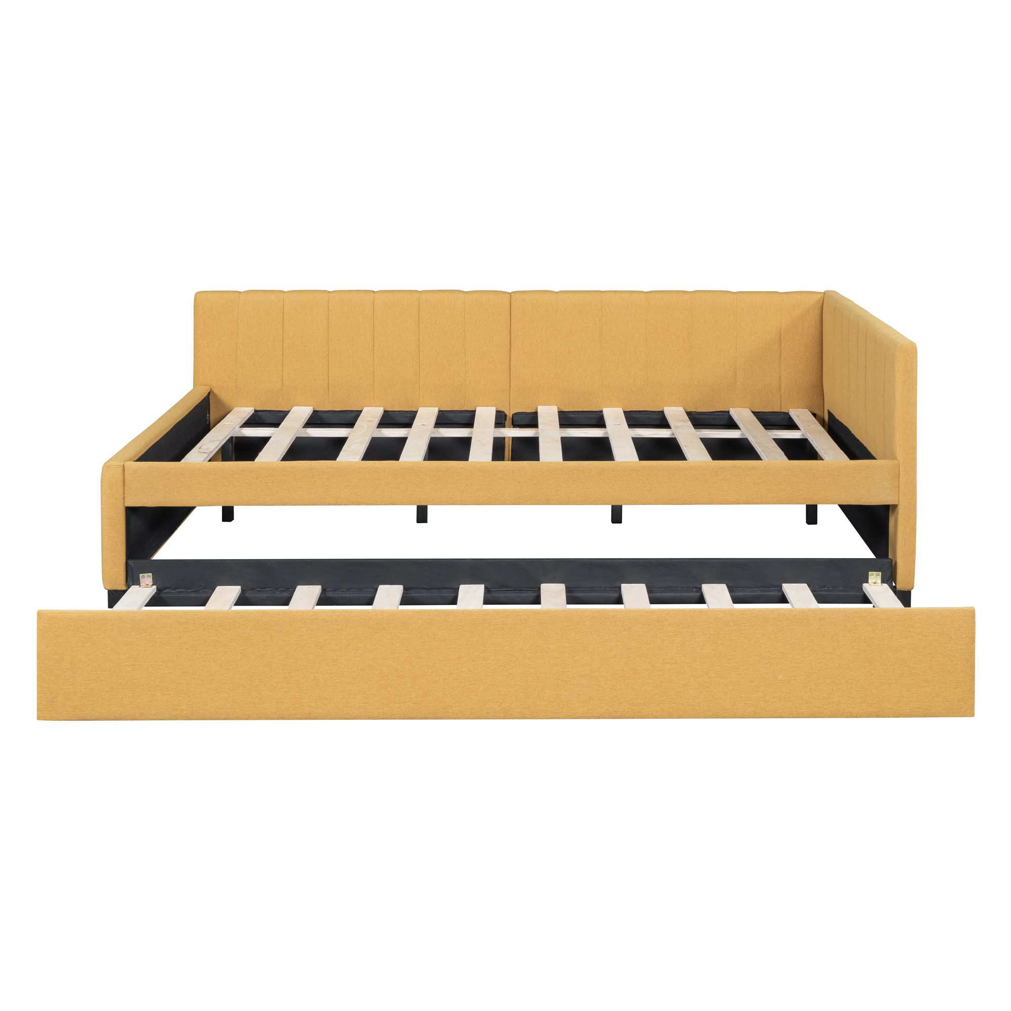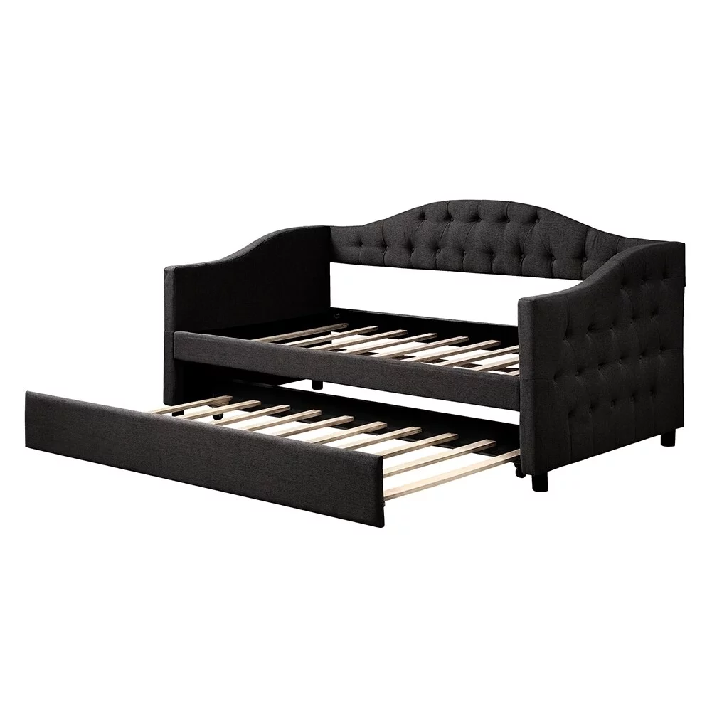 Twin Size Upholstered Daybed with Trundle, Wood Frame Sofa Bed for for Living Room and Bedroom, Padded Back, Gray