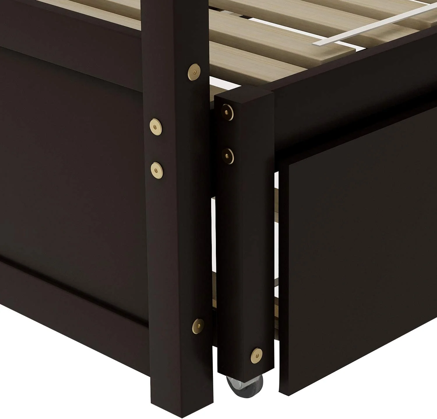 Dcenta Stairway Twin-Over-Twin Bunk Bed with Twin size Trundle for Bedroom, Dorm, Adults, Espresso