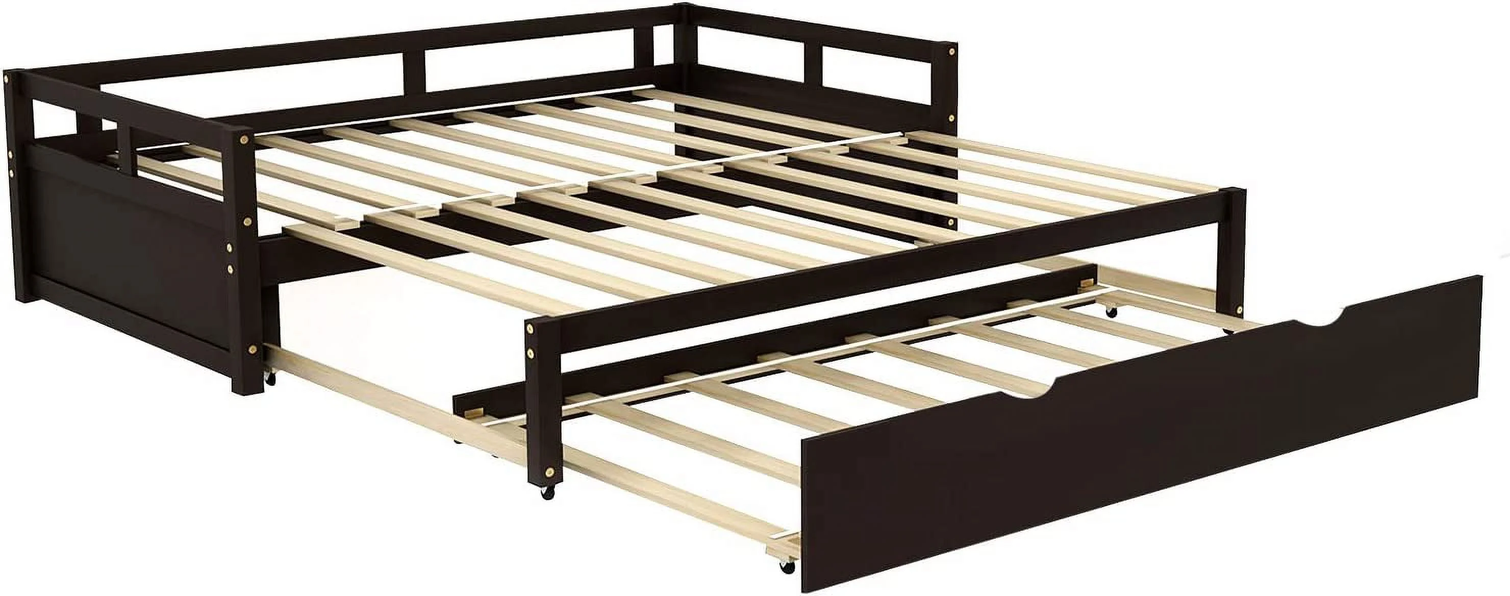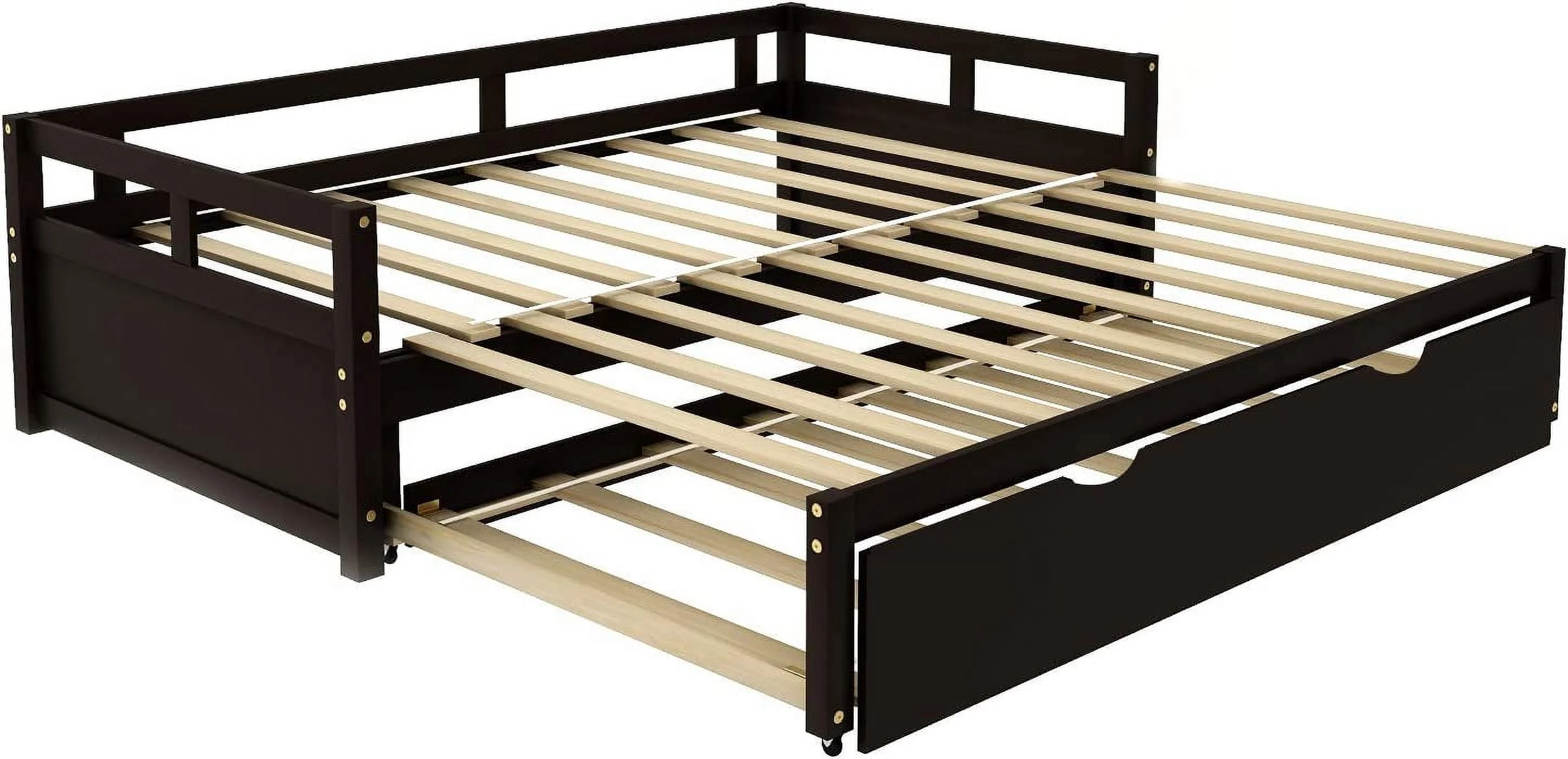 Daybed Size, Daybed With Trundle, Extending Wooden Daybed, Sofa Bed For Bedroom/Living Room, Espresso