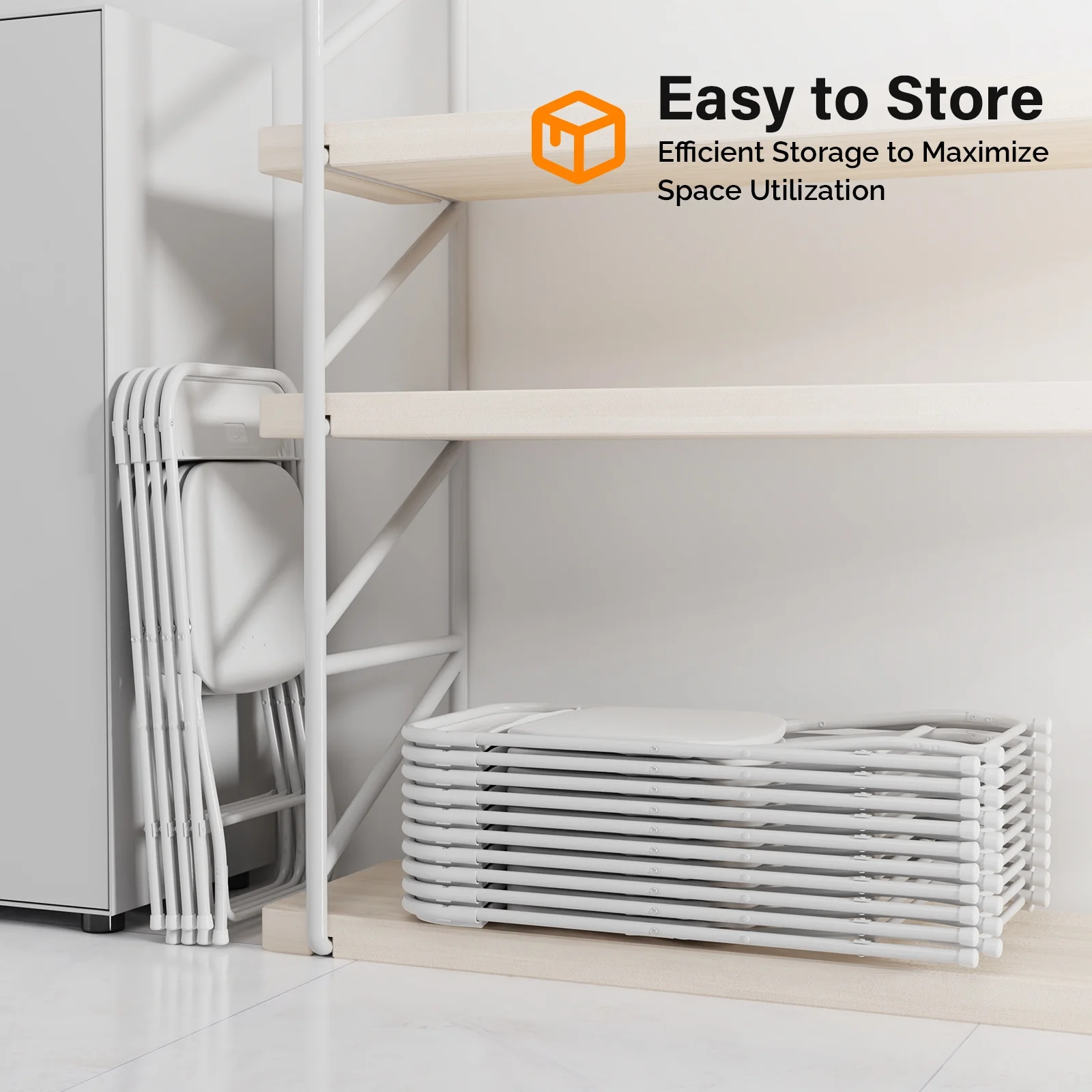 VINGLI 10 Pack White Plastic Folding Chair, Indoor Outdoor Stackable Seat
