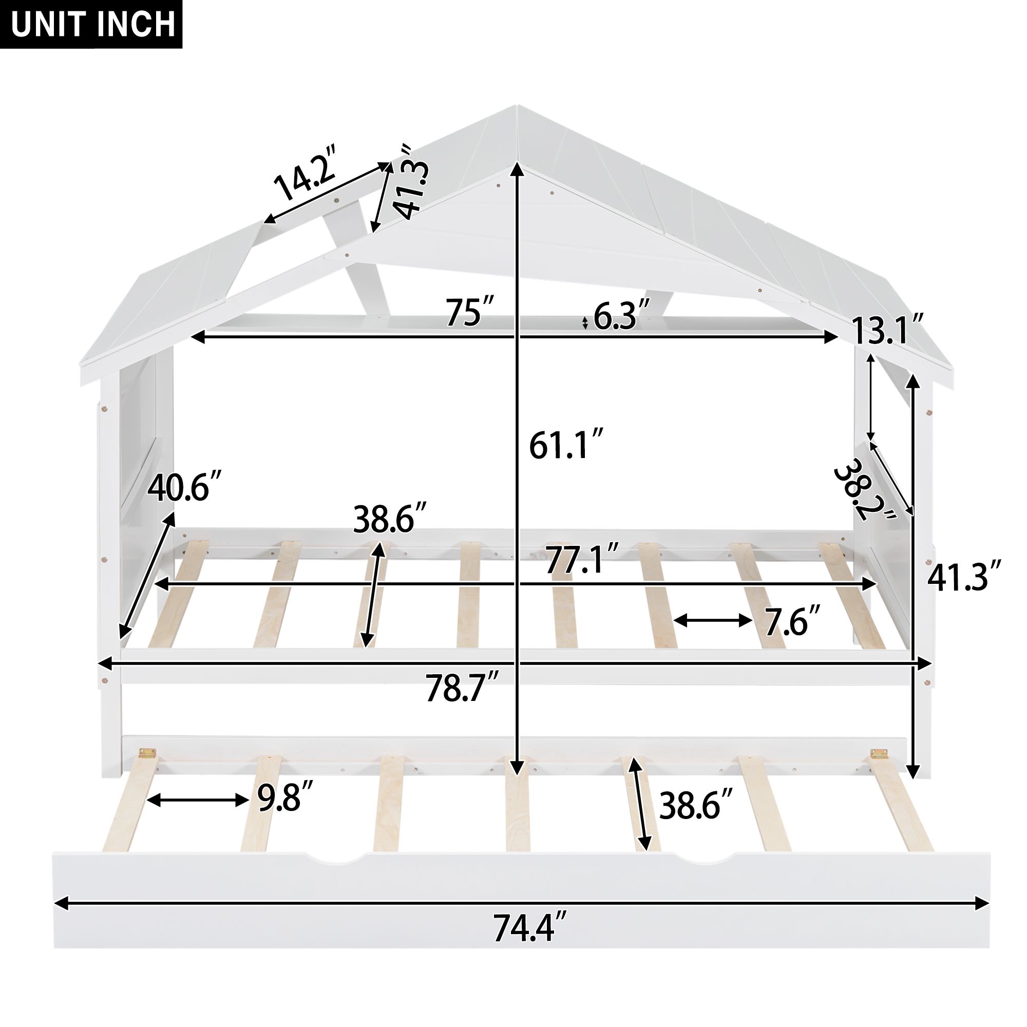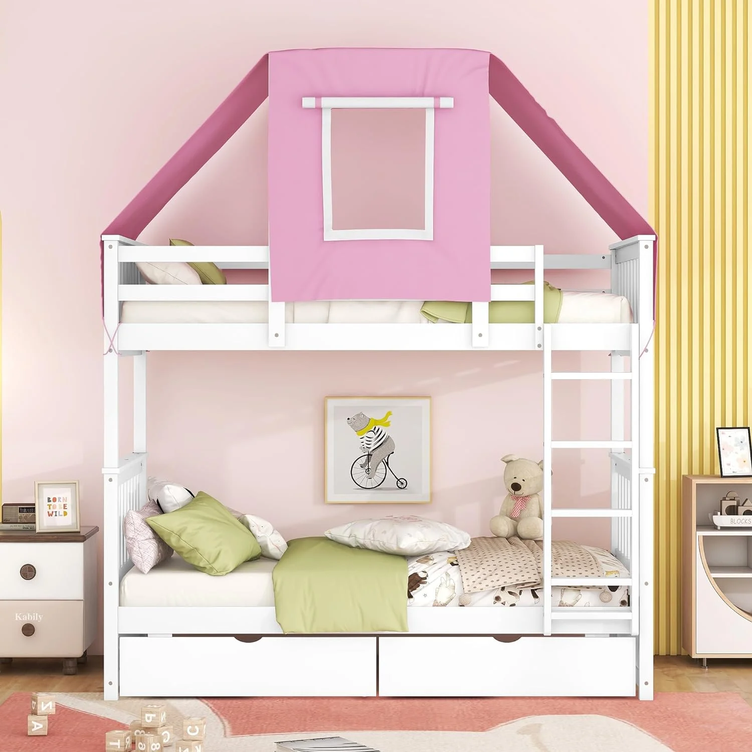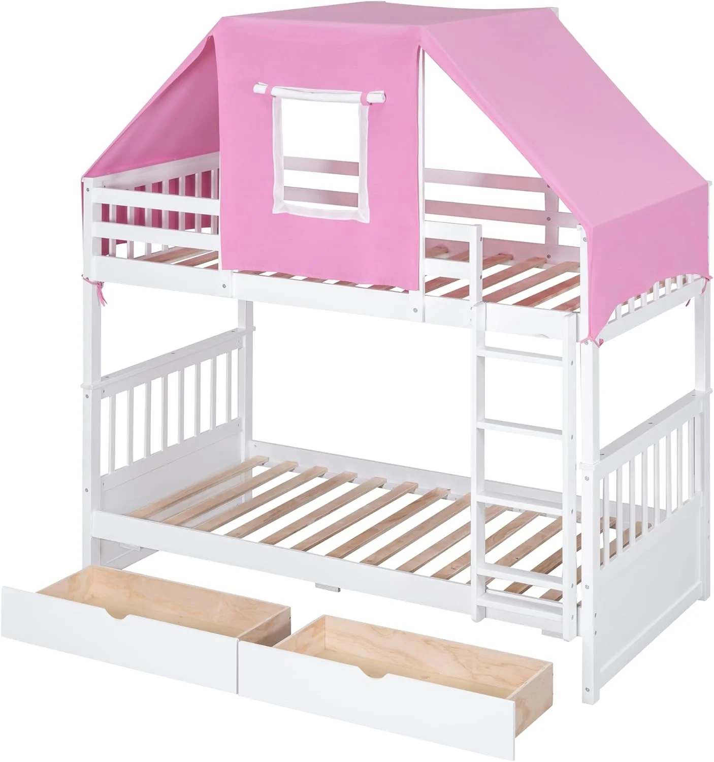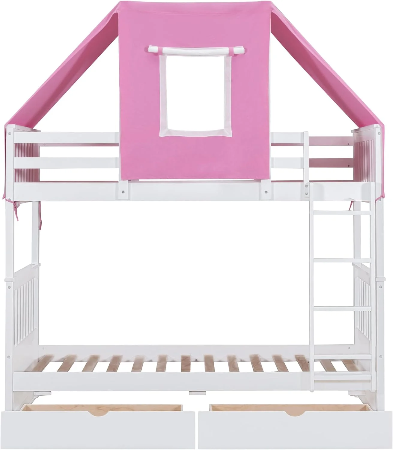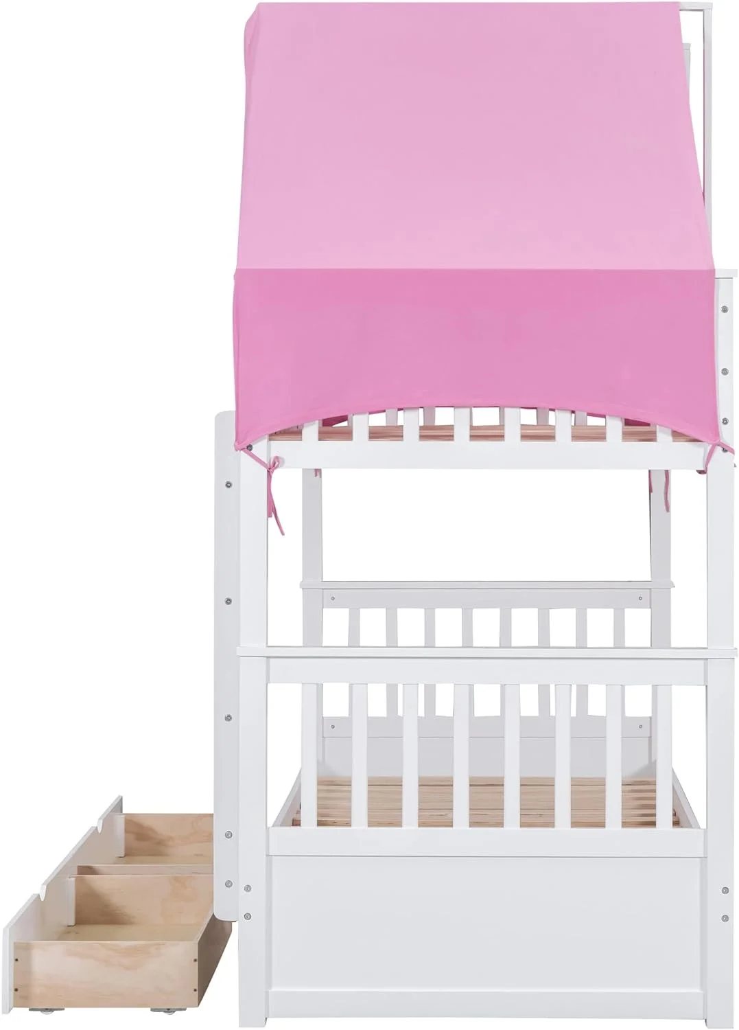 House Buk Bed Wih Sorage, Over Buk Bed Wood Frame Wih e Ad Drawers, Ca Be Separaed, oise , Easy Assembly, Whie+ e