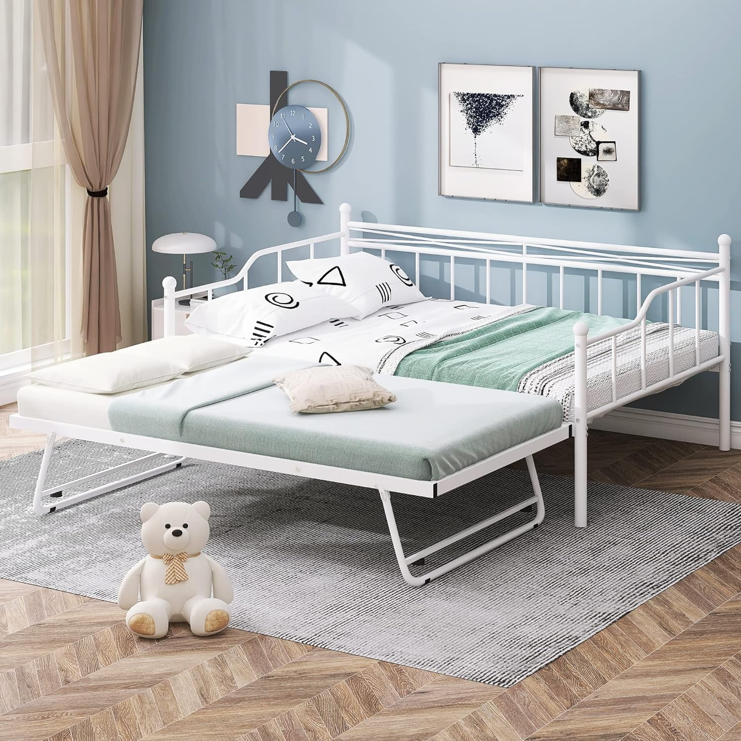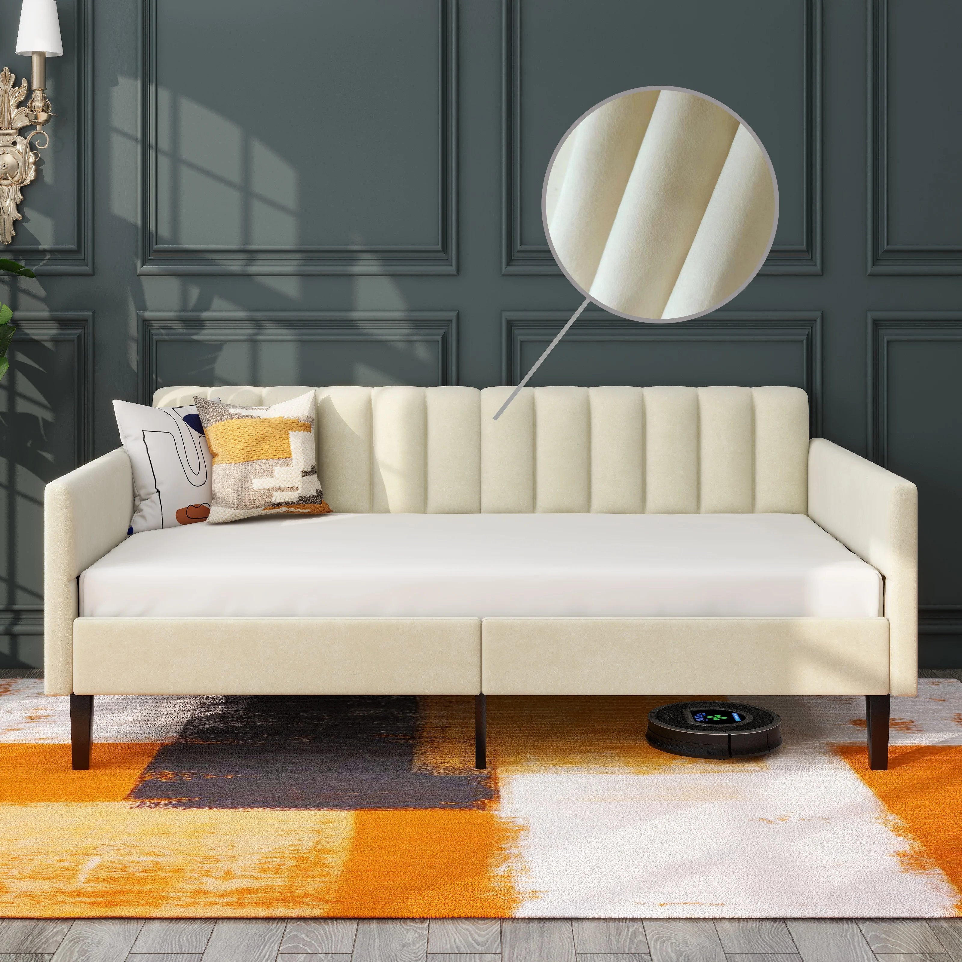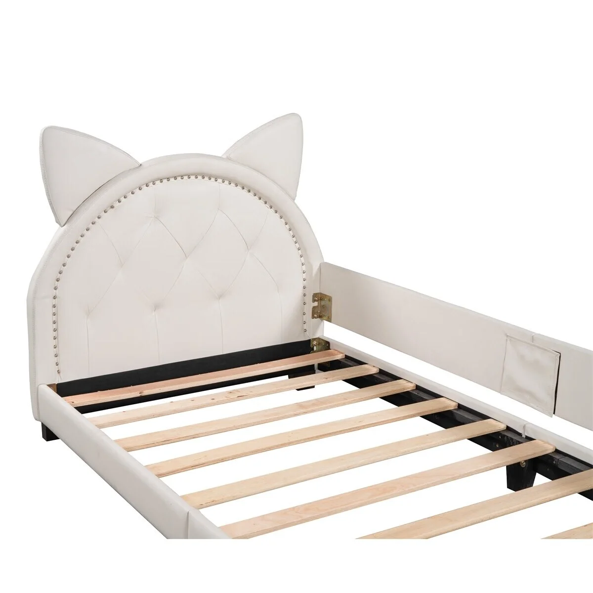MERAX Upholstered Twin Daybed with Cartoon Ears Shaped Headboard White