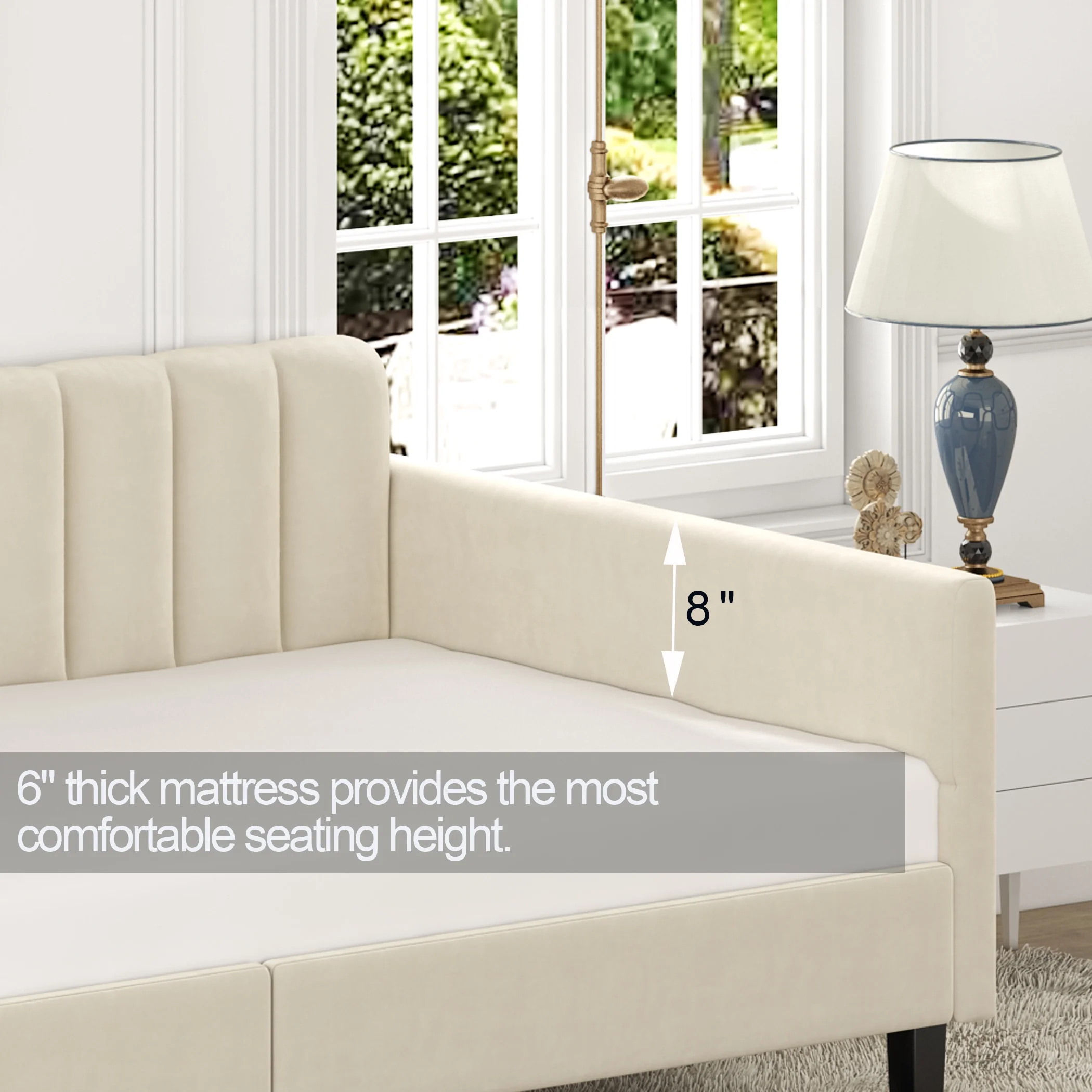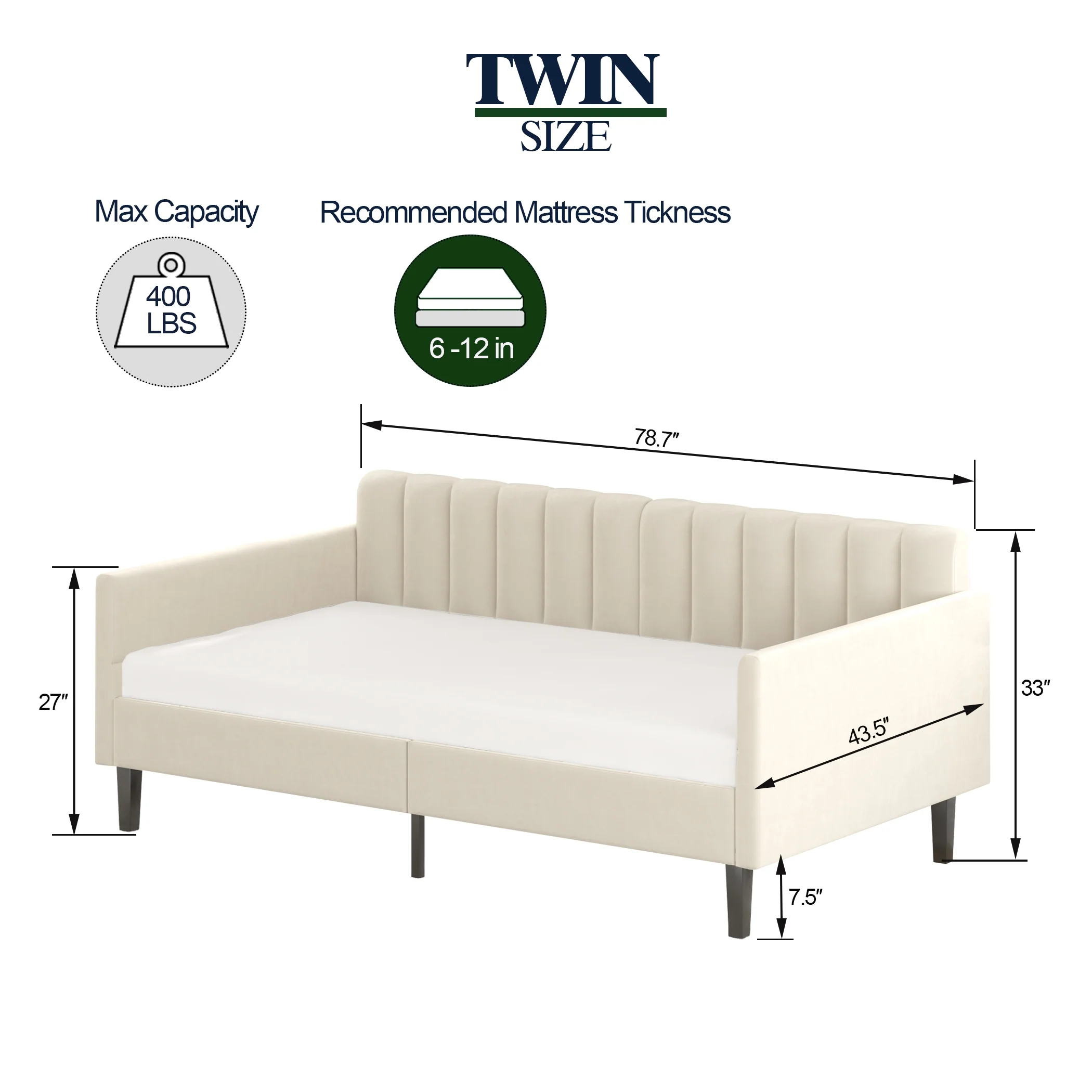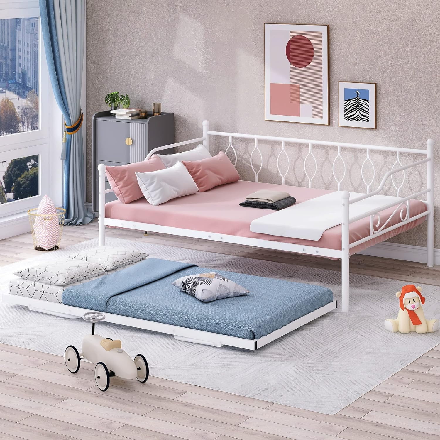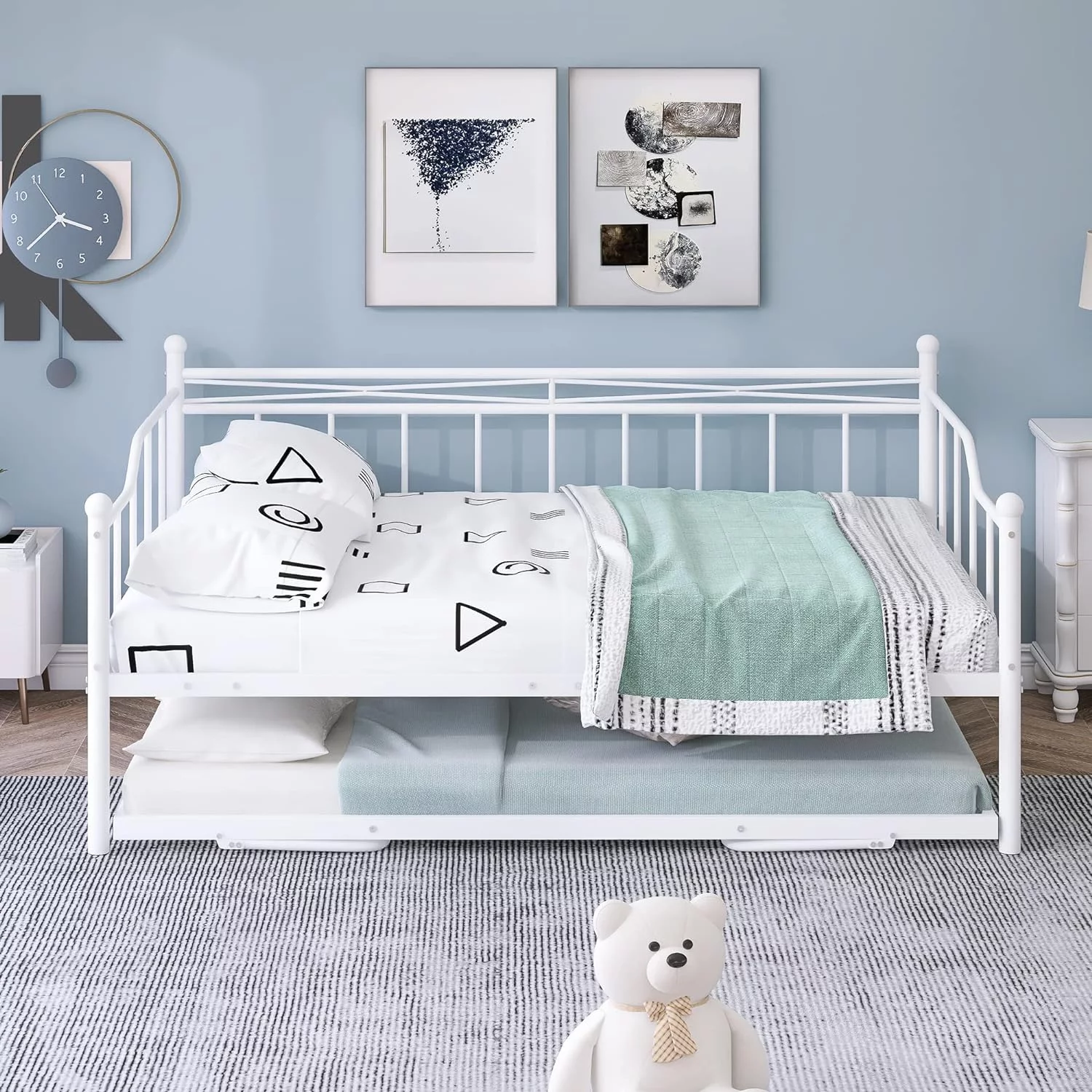 MERAX Upholstered Twin Daybed with Cartoon Ears Shaped Headboard White