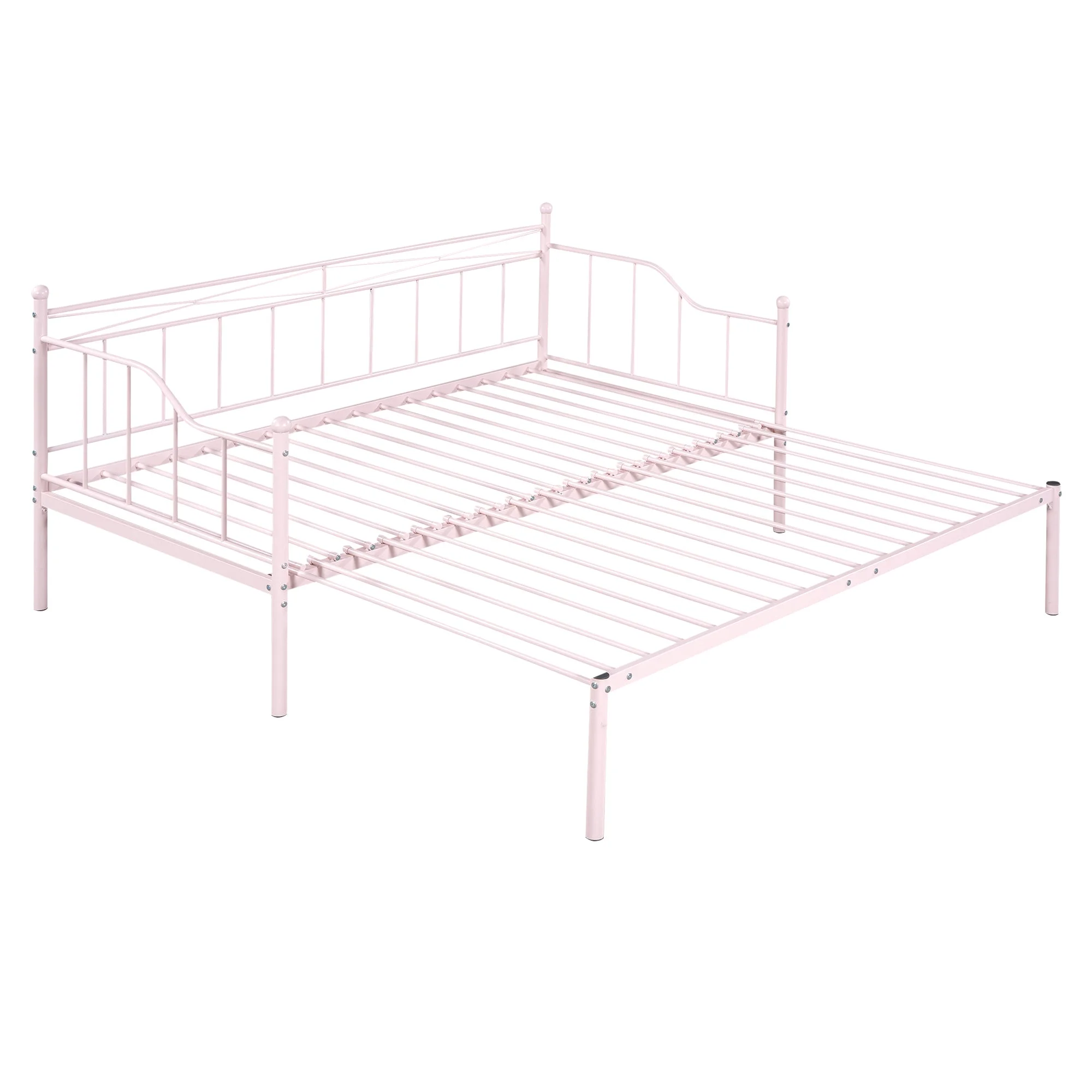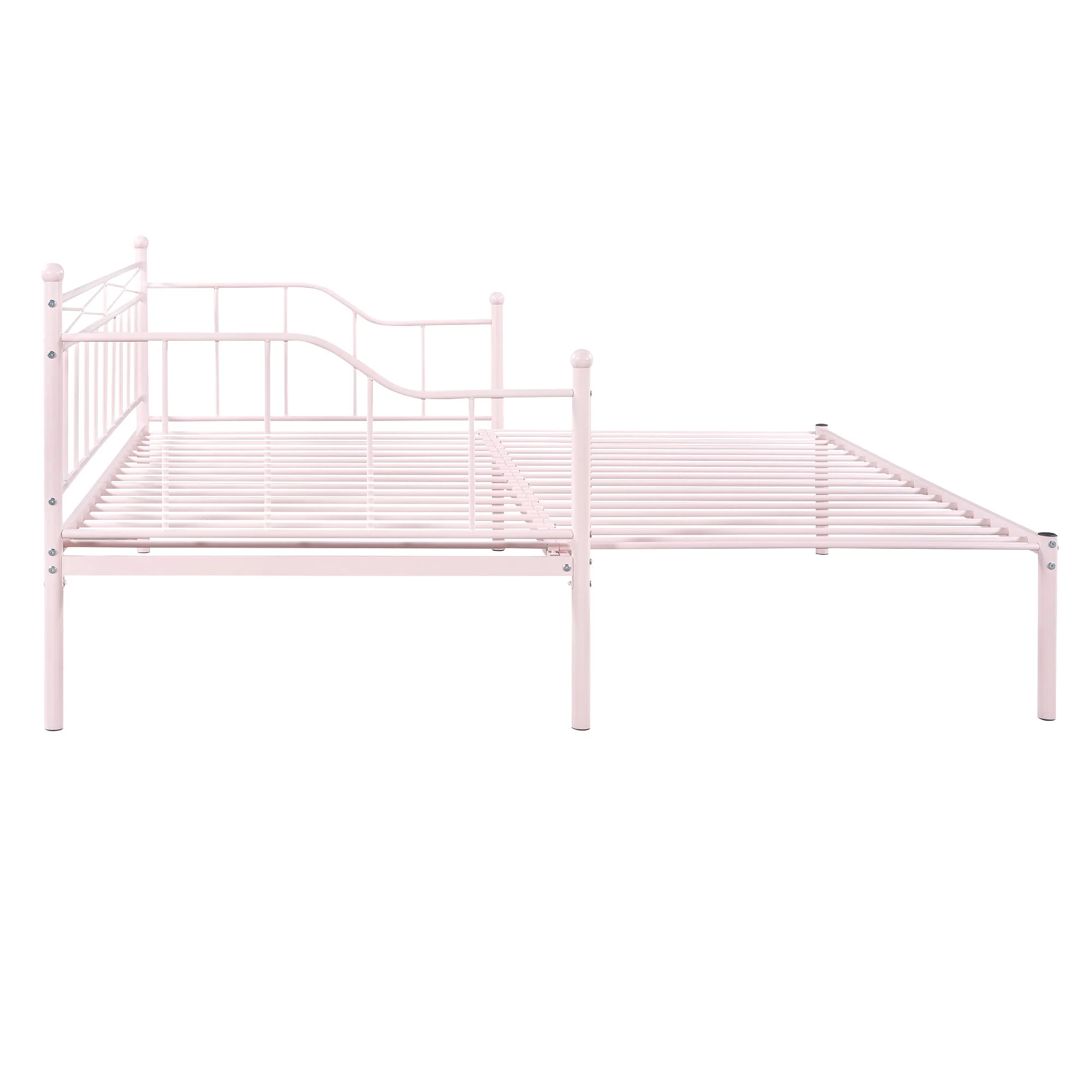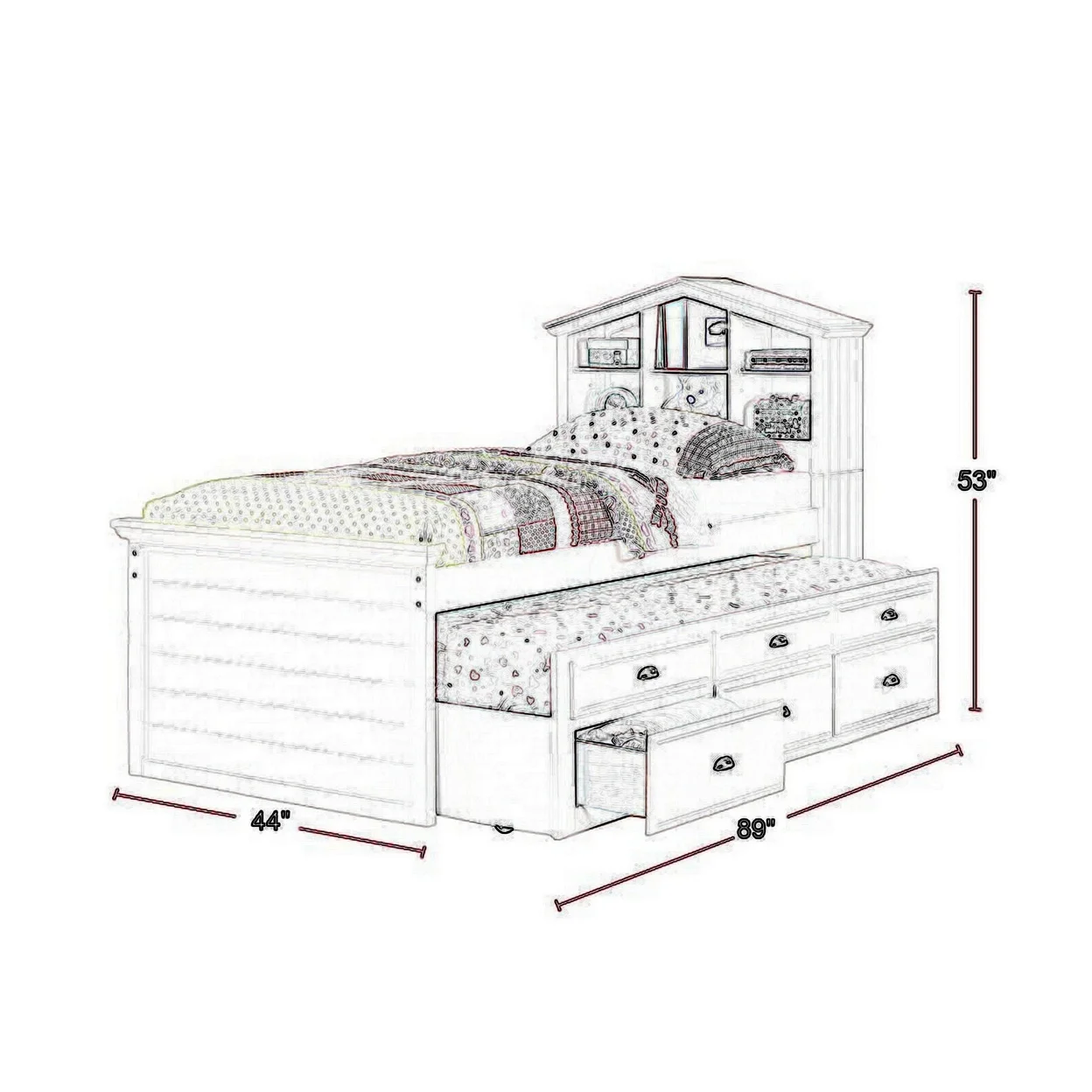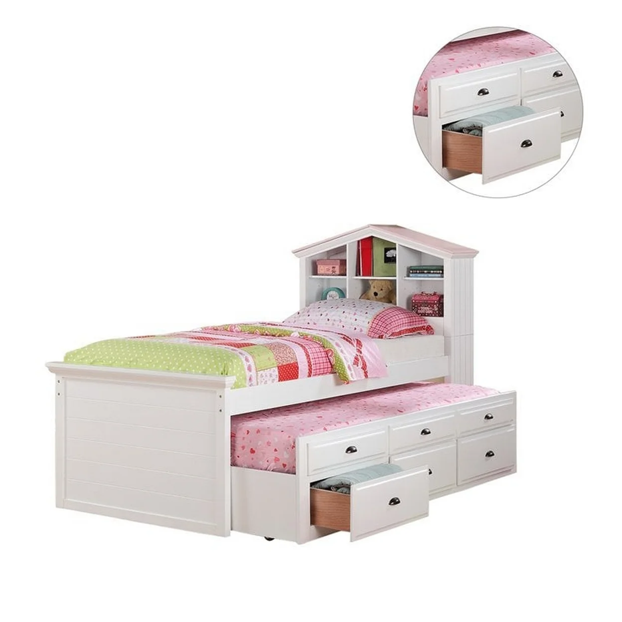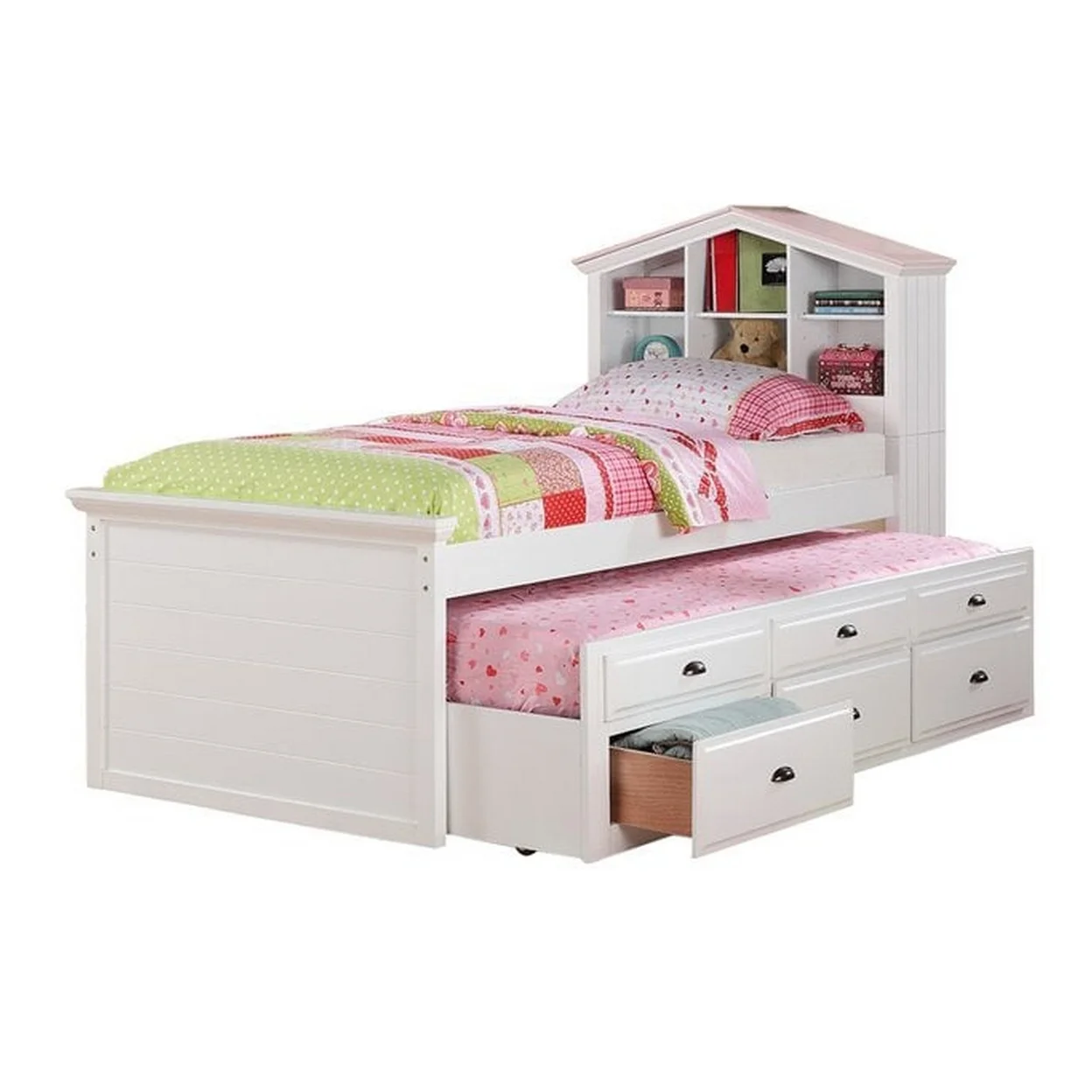 Twin Size Trundle Bed 6 Drawers Dollhouse Style Bookcase Headboard Pink- Saltoro Sherpi
