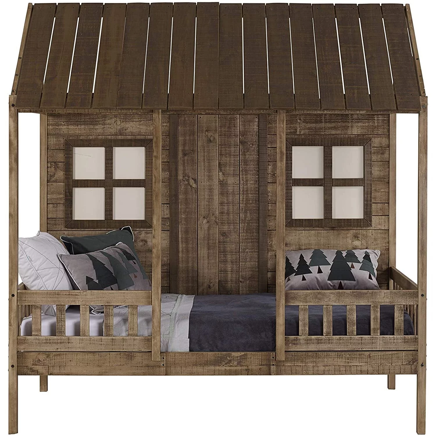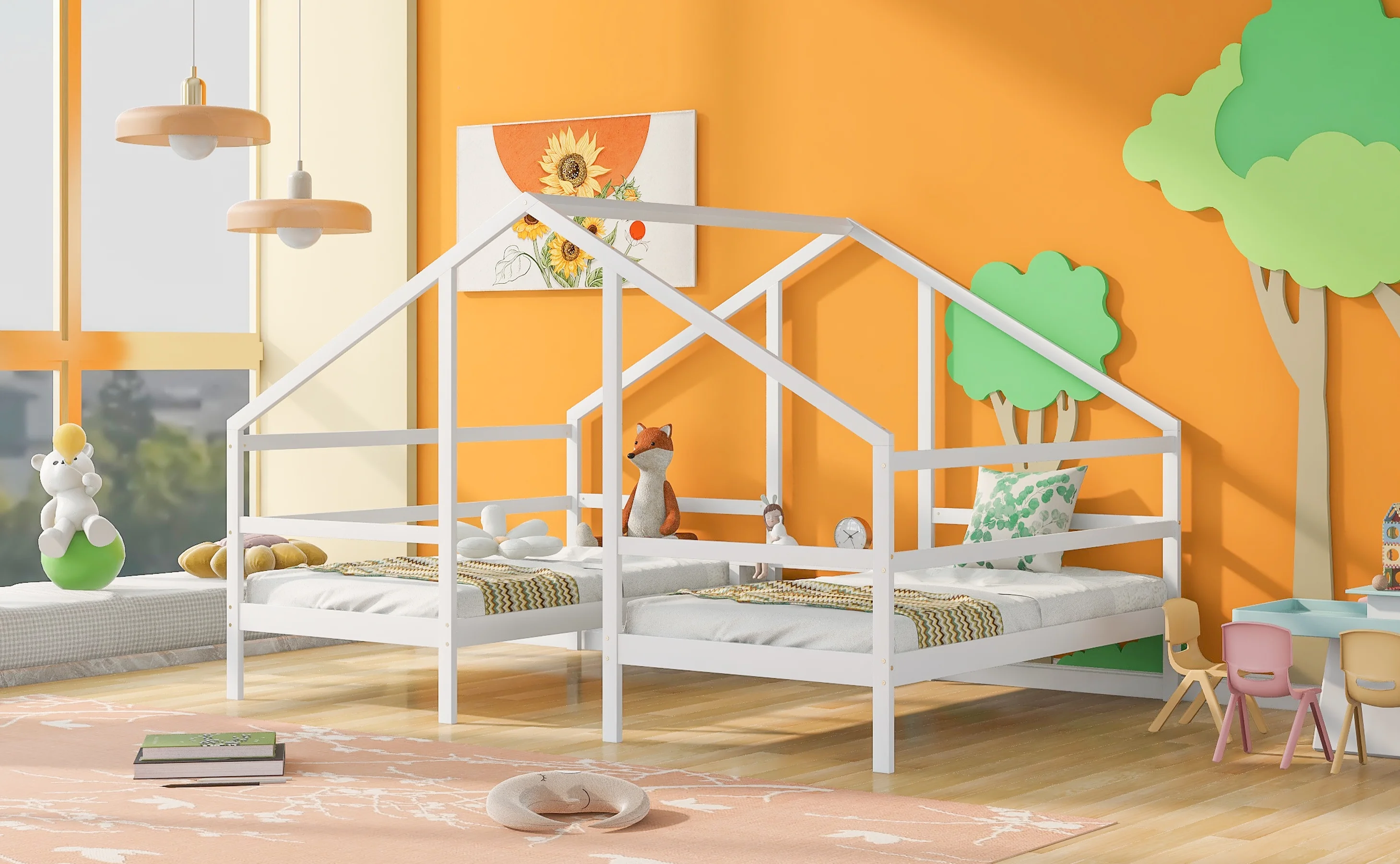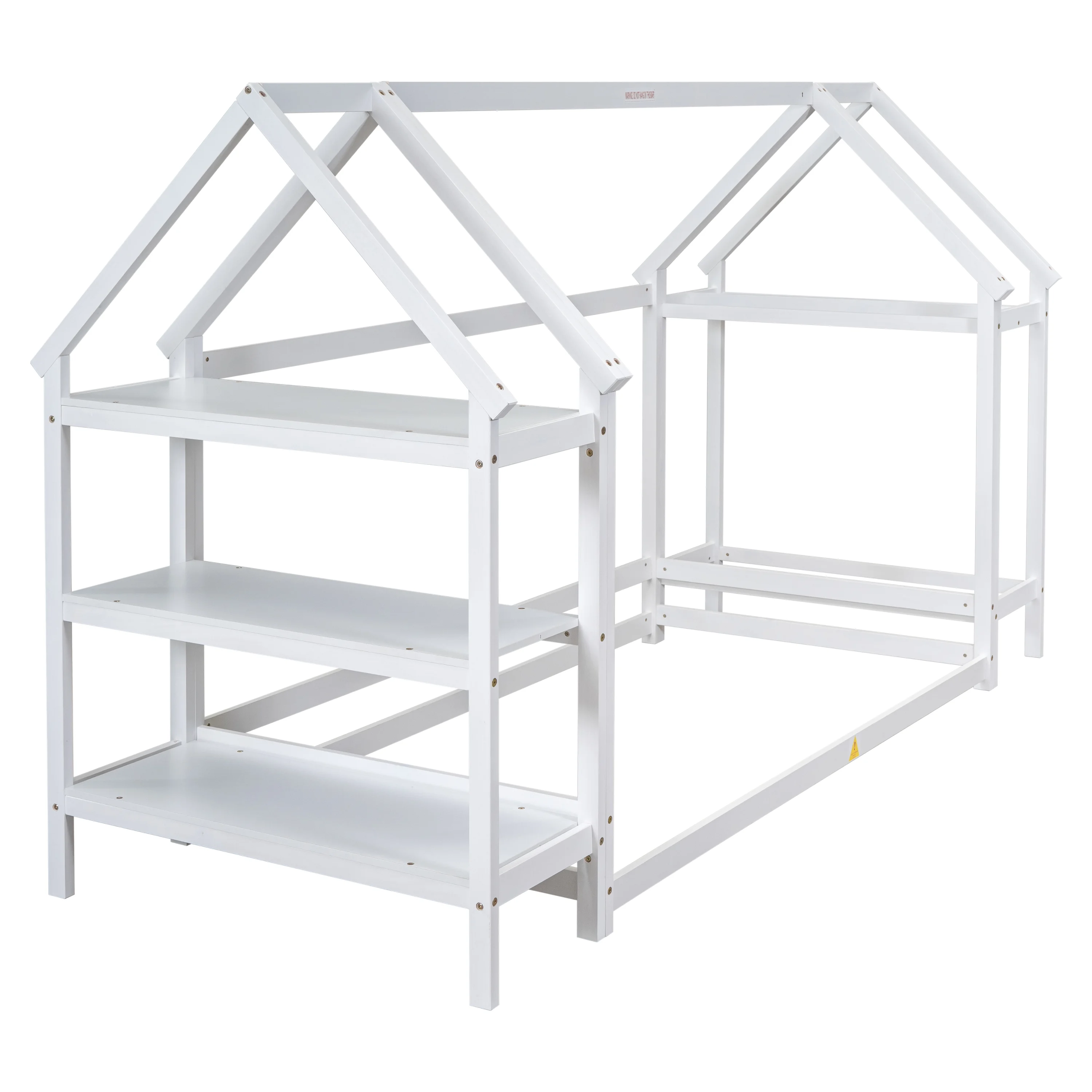 CoSoTower Double Twin Size Triangular House Beds with Built-In Table,White